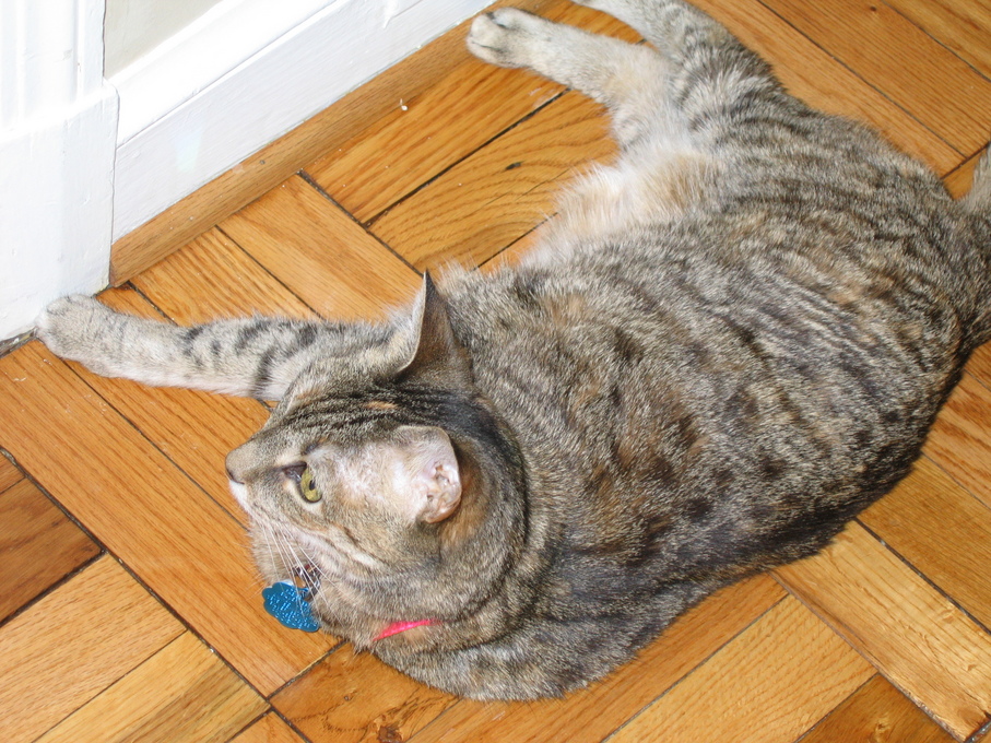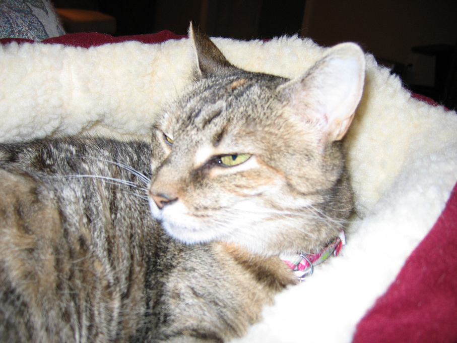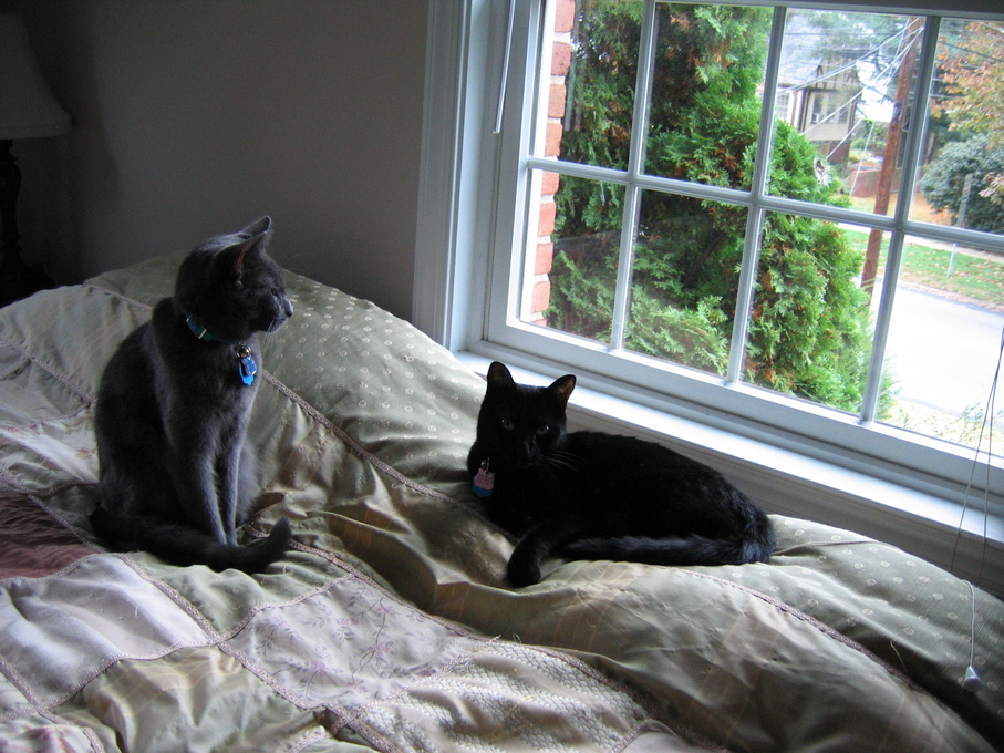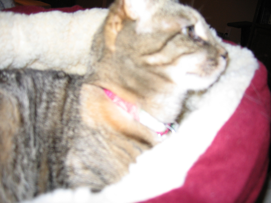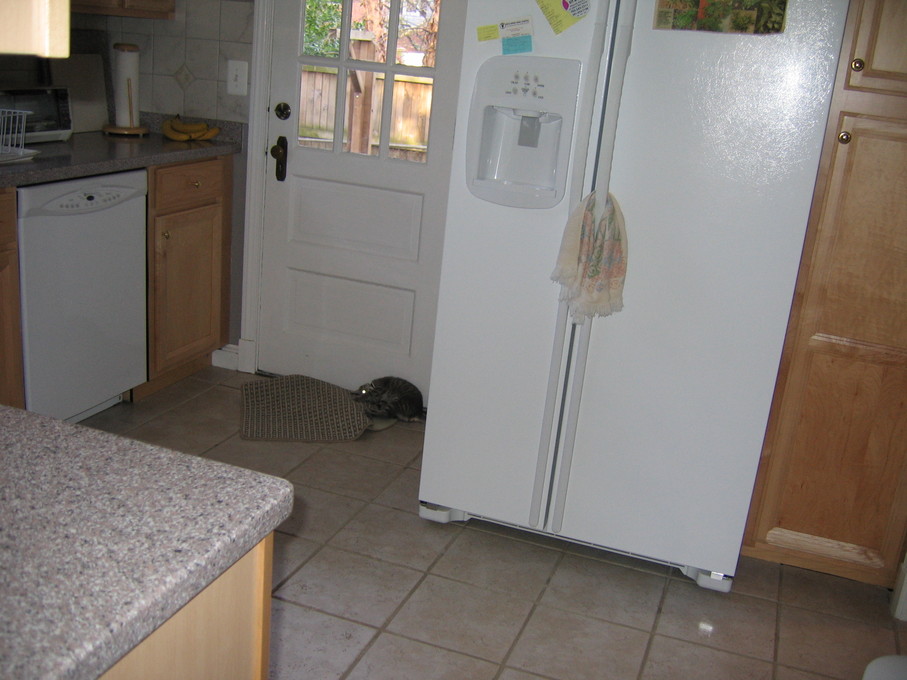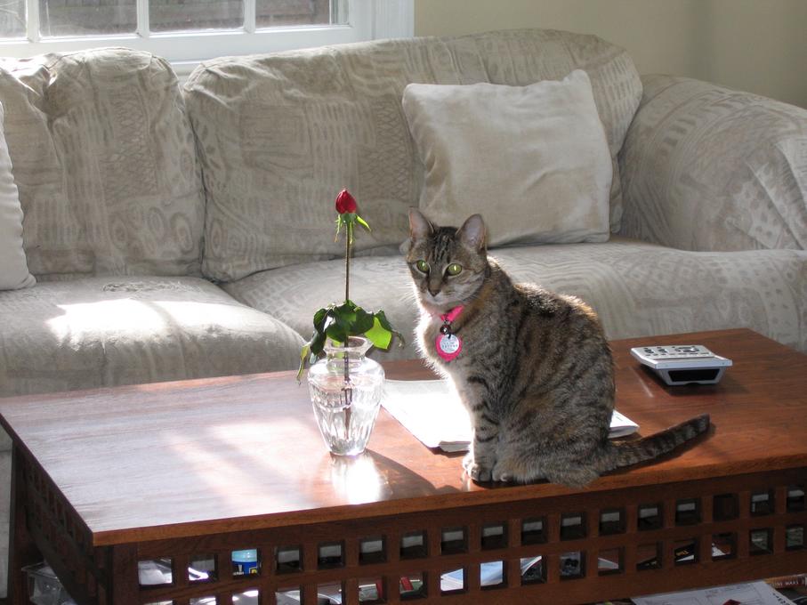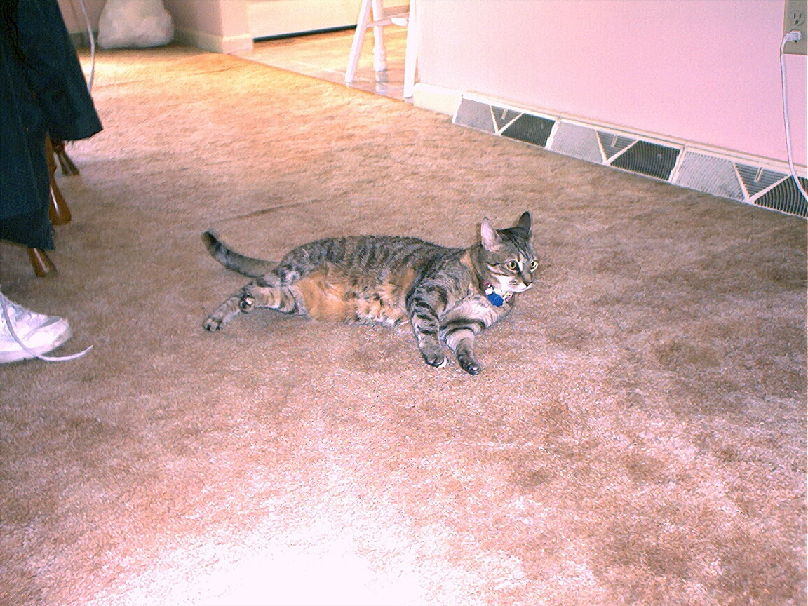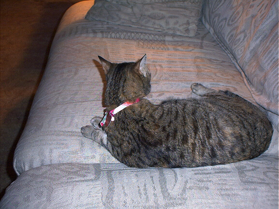 Electra oblivious to the neighbor's cat outside (should be rotated 90 degrees clockwise