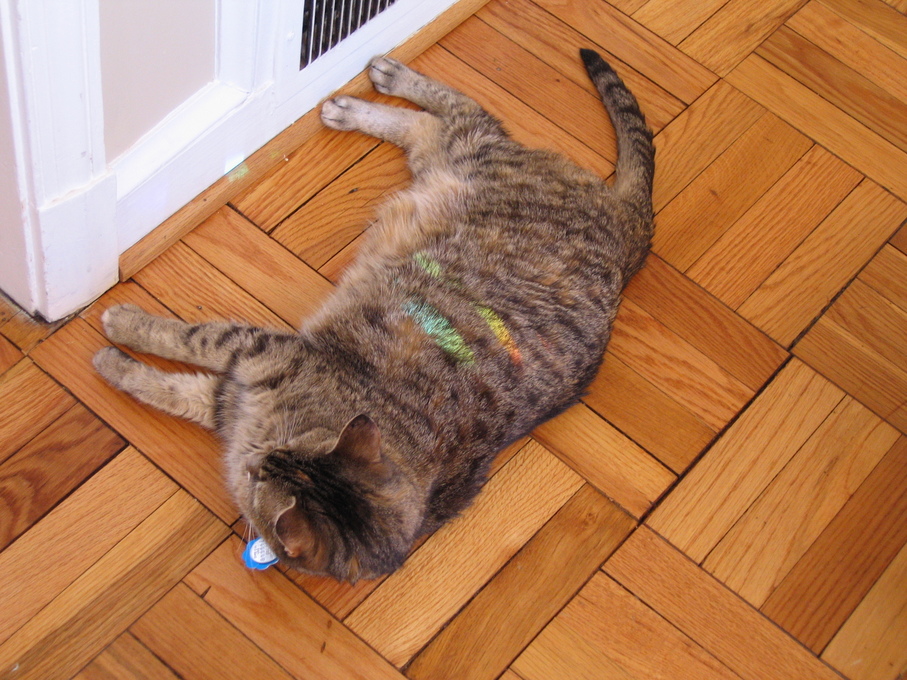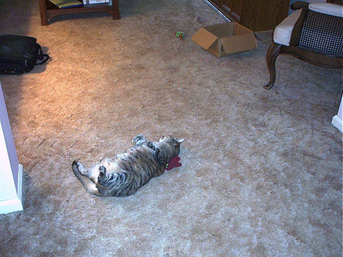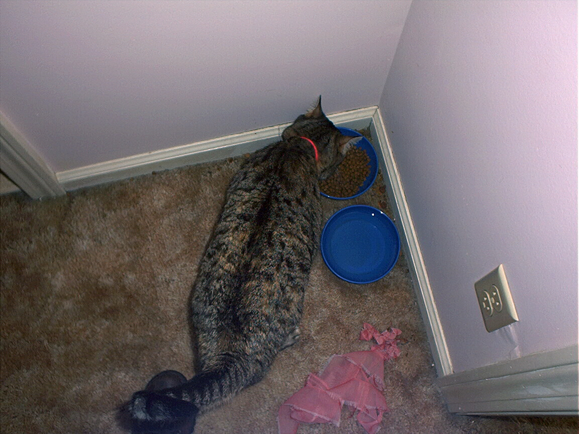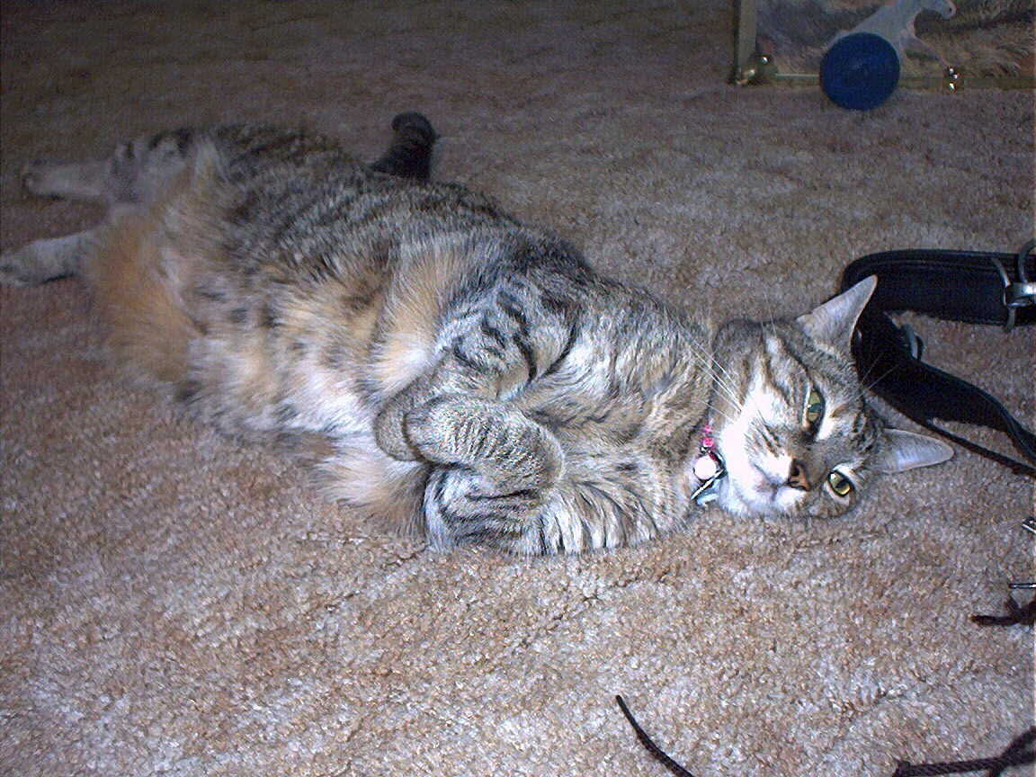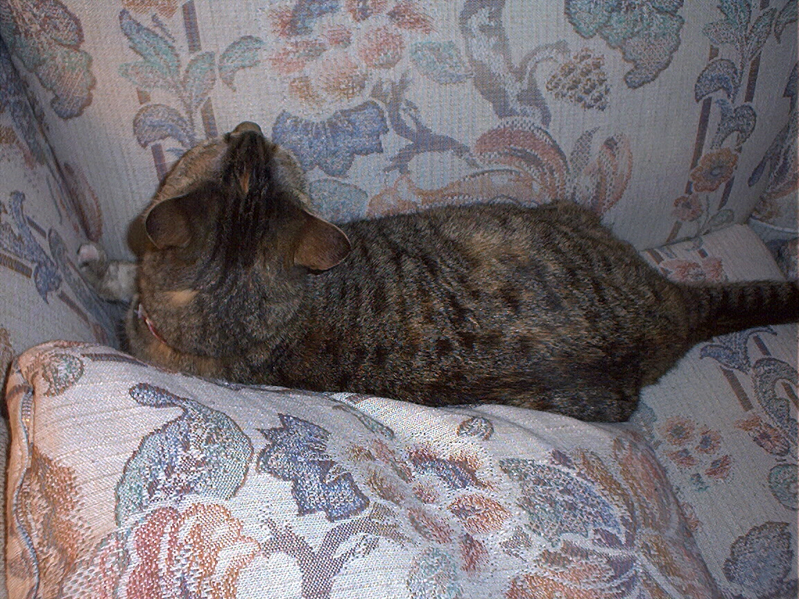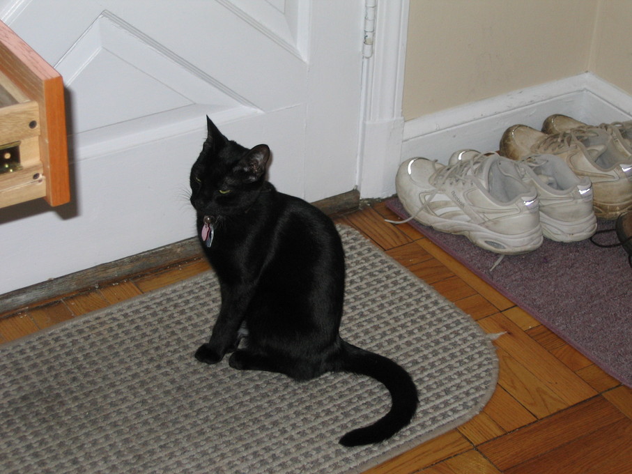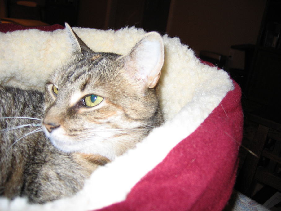 Electra oblivious to the neighbor's cat outside (should be rotated 90 degrees clockwise