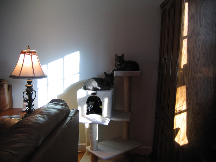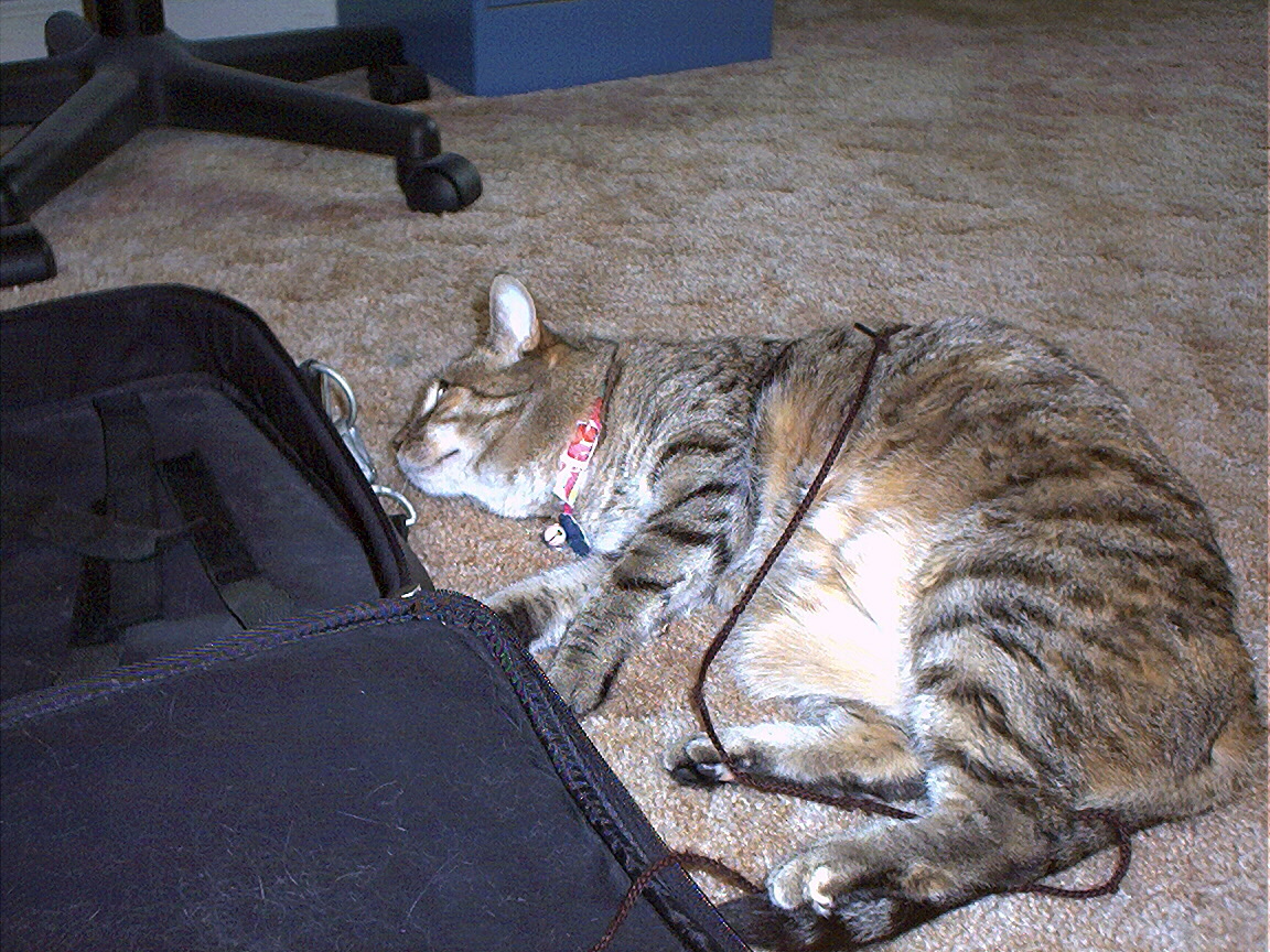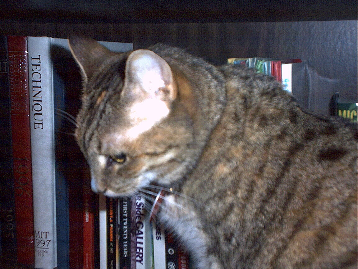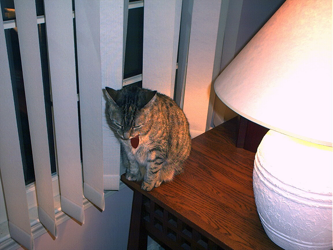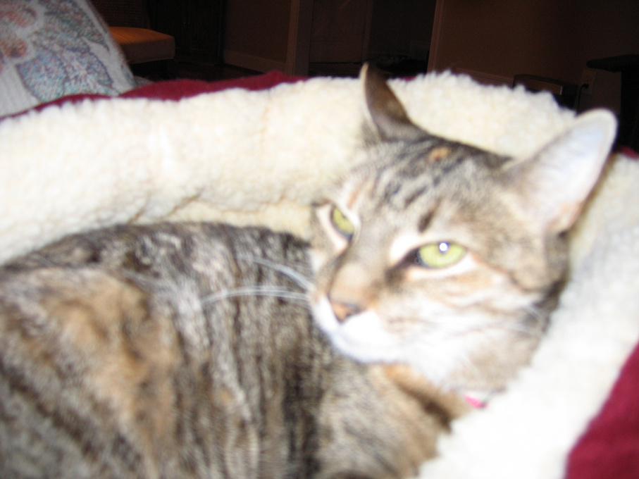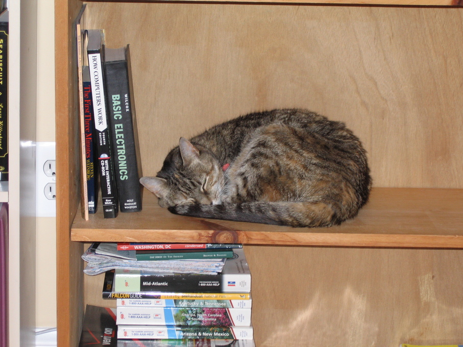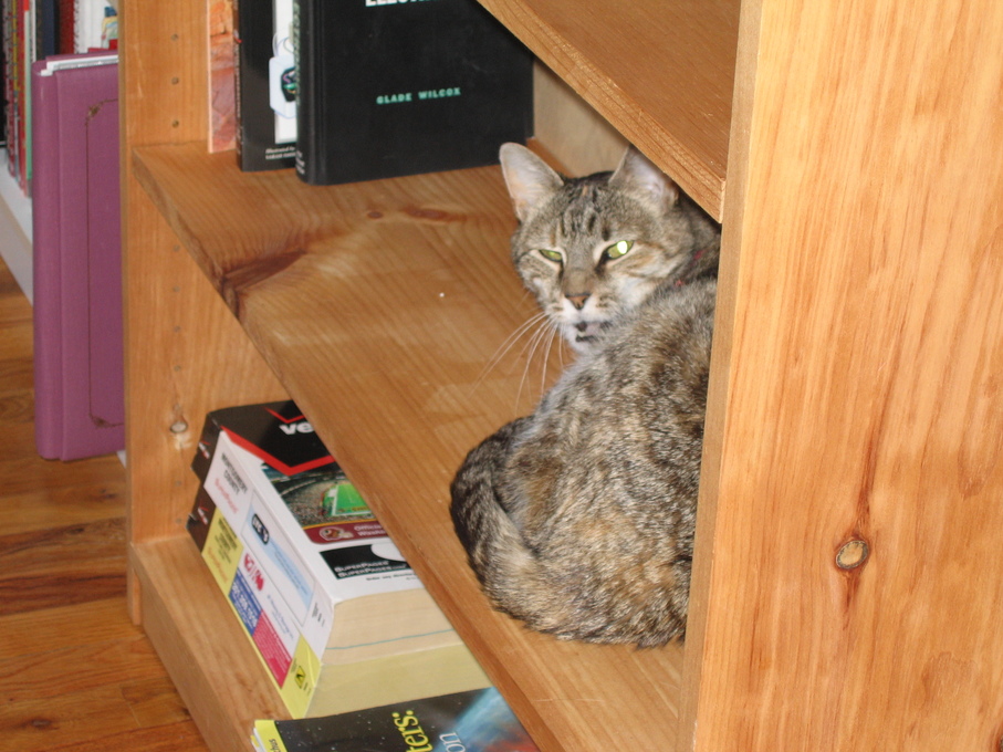 Electra oblivious to the neighbor's cat outside (should be rotated 90 degrees clockwise