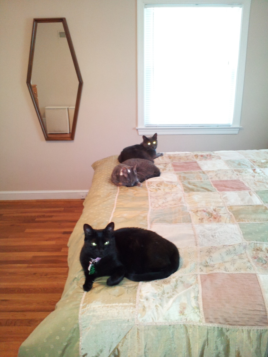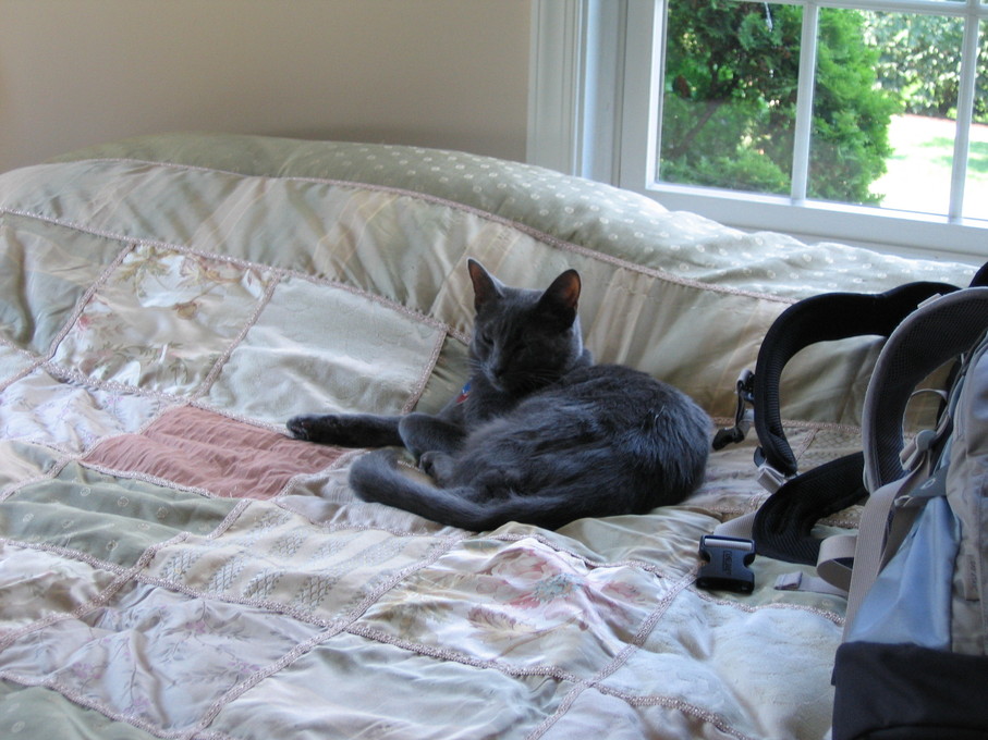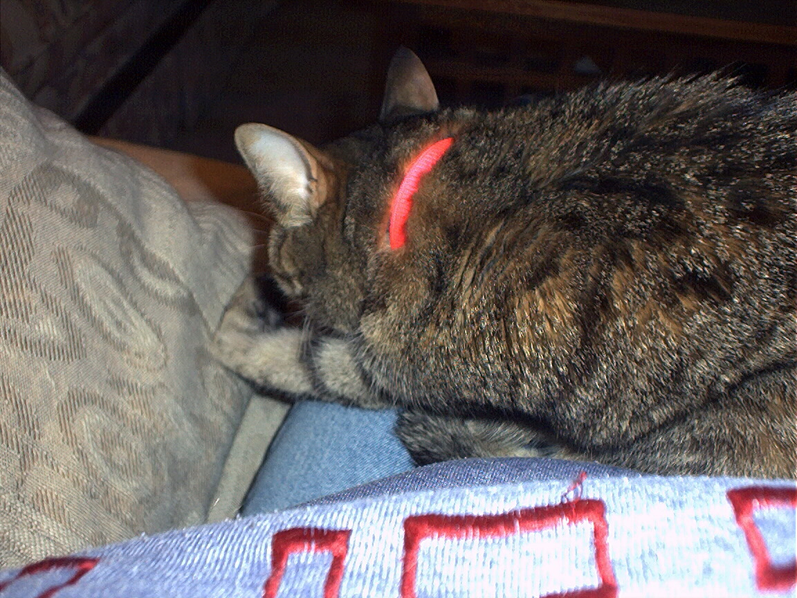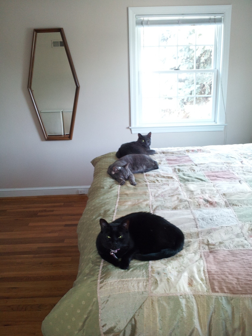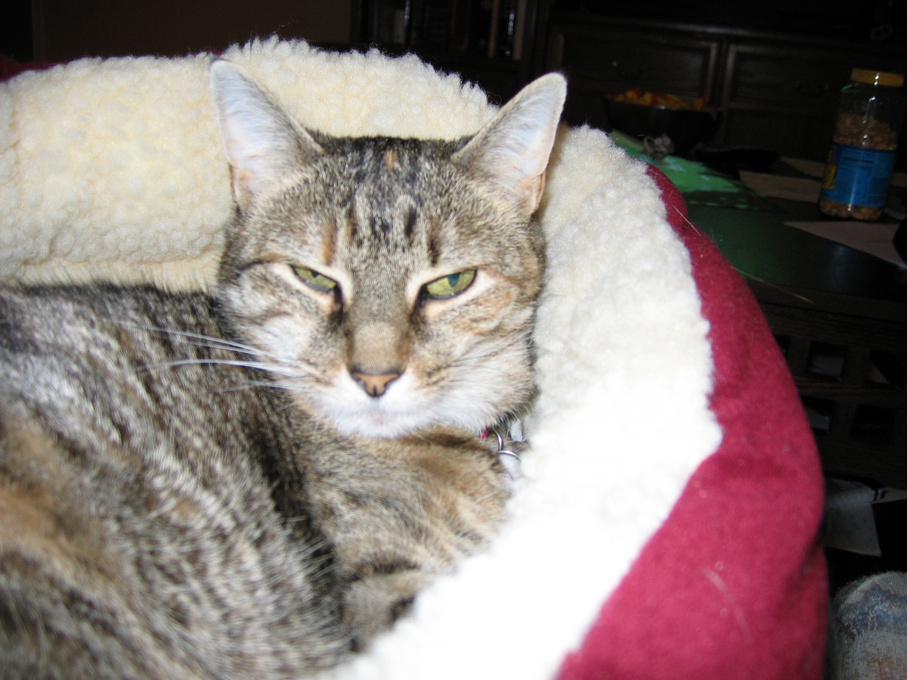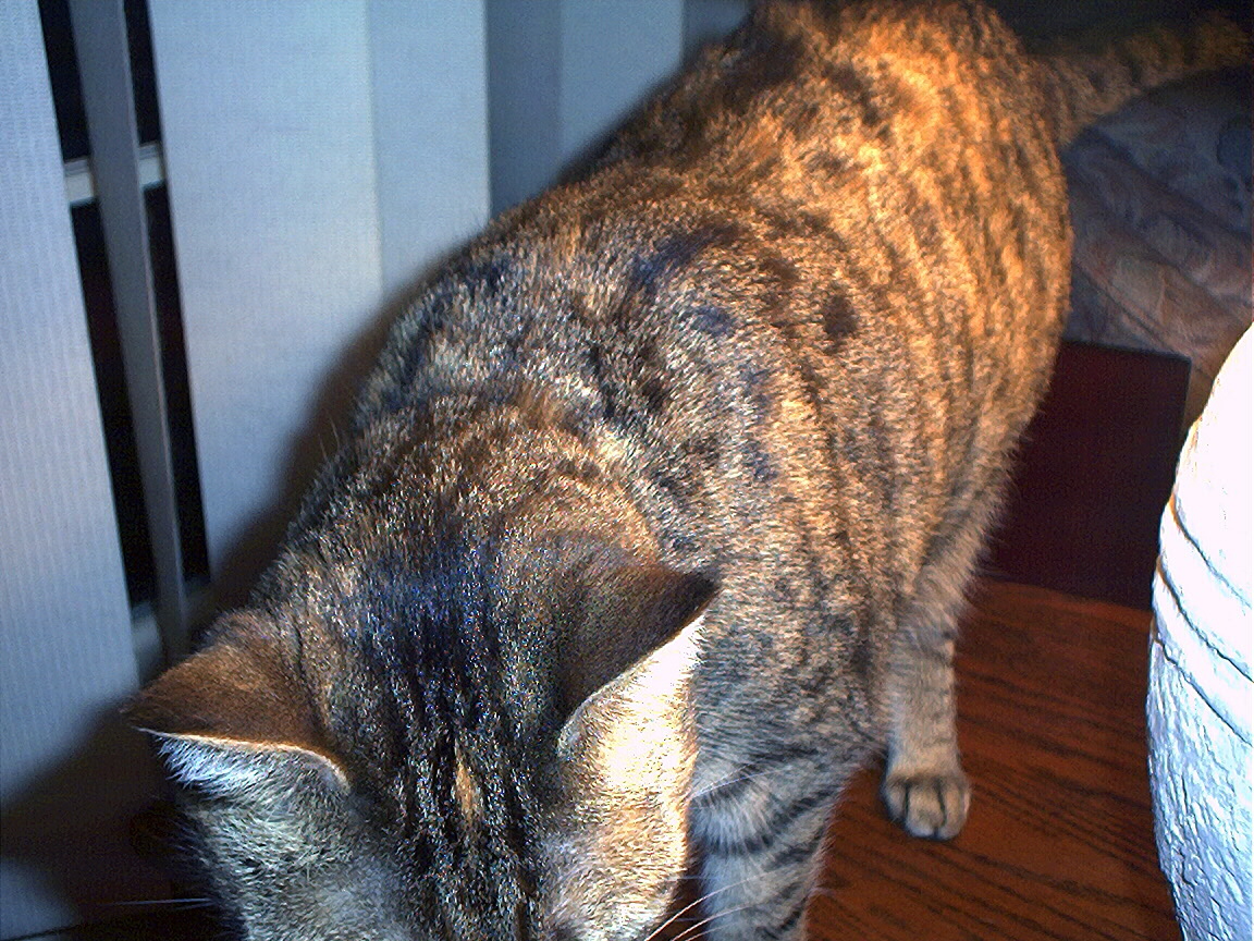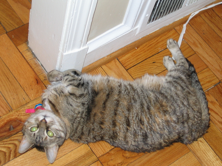 Electra oblivious to the neighbor's cat outside (should be rotated 90 degrees clockwise