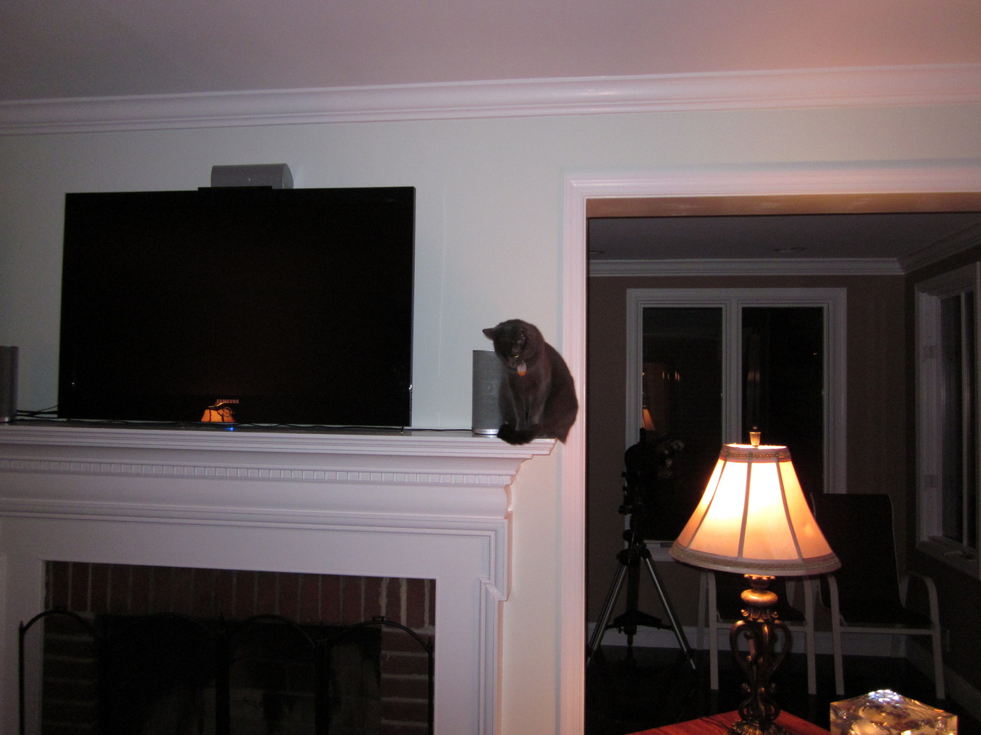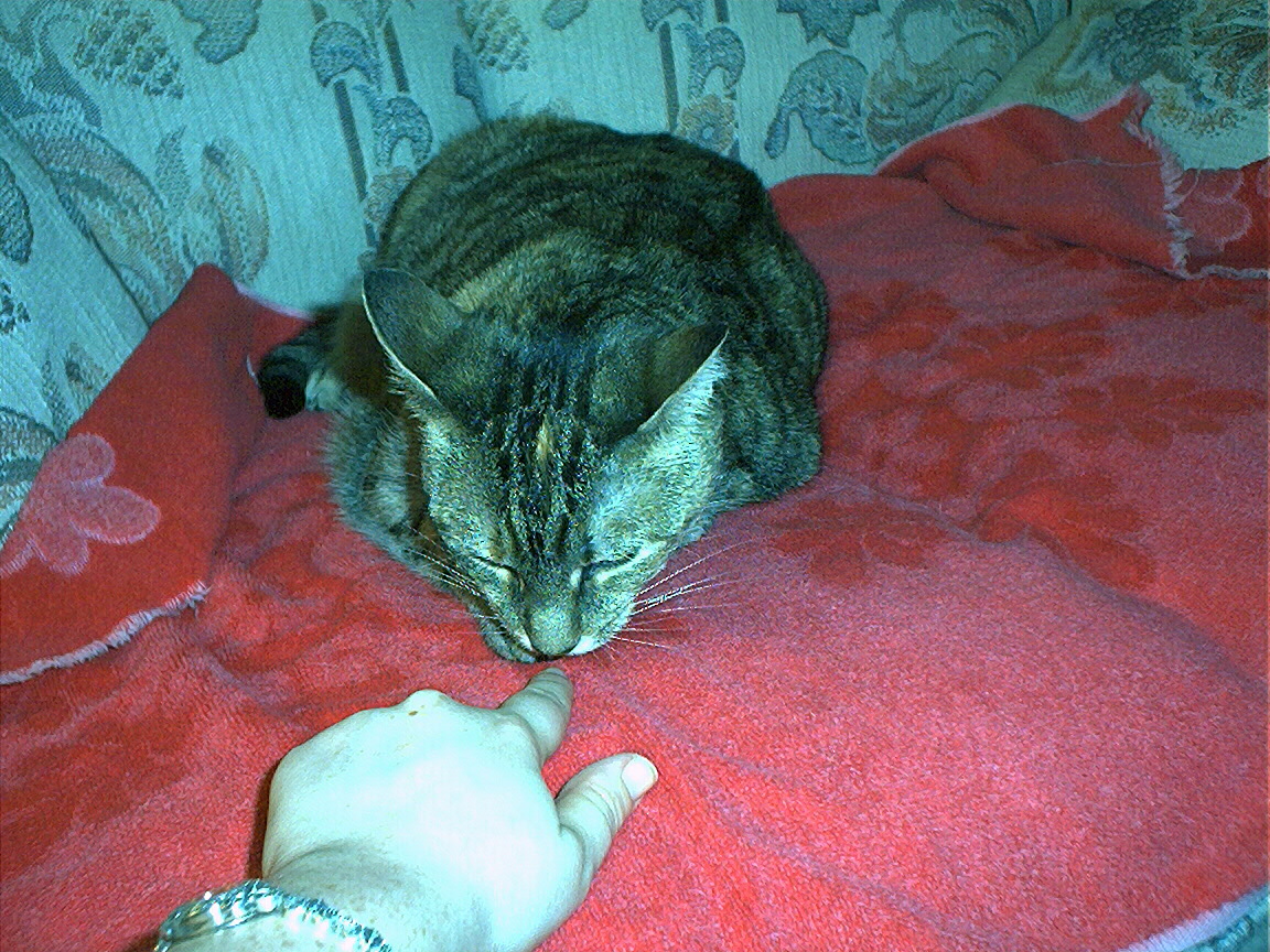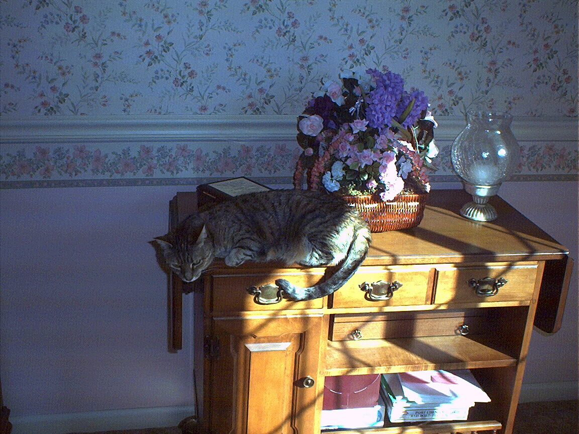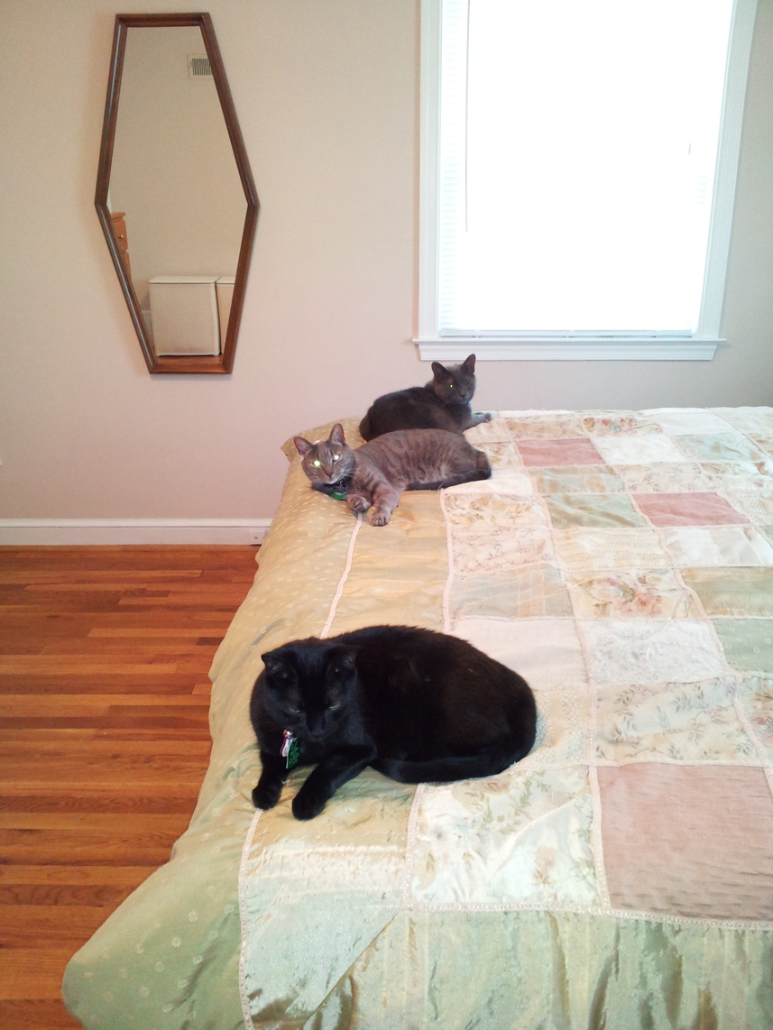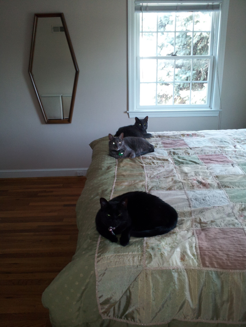 Electra oblivious to the neighbor's cat outside (should be rotated 90 degrees clockwise