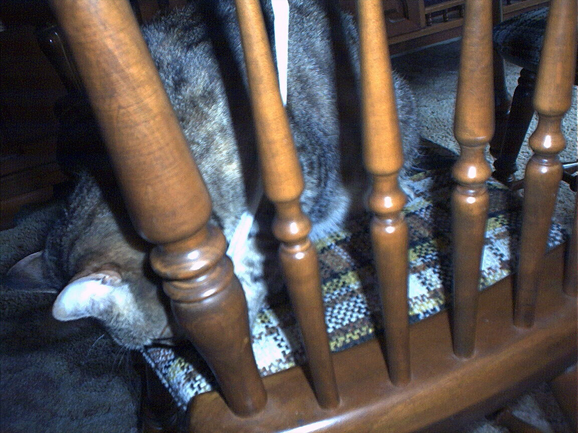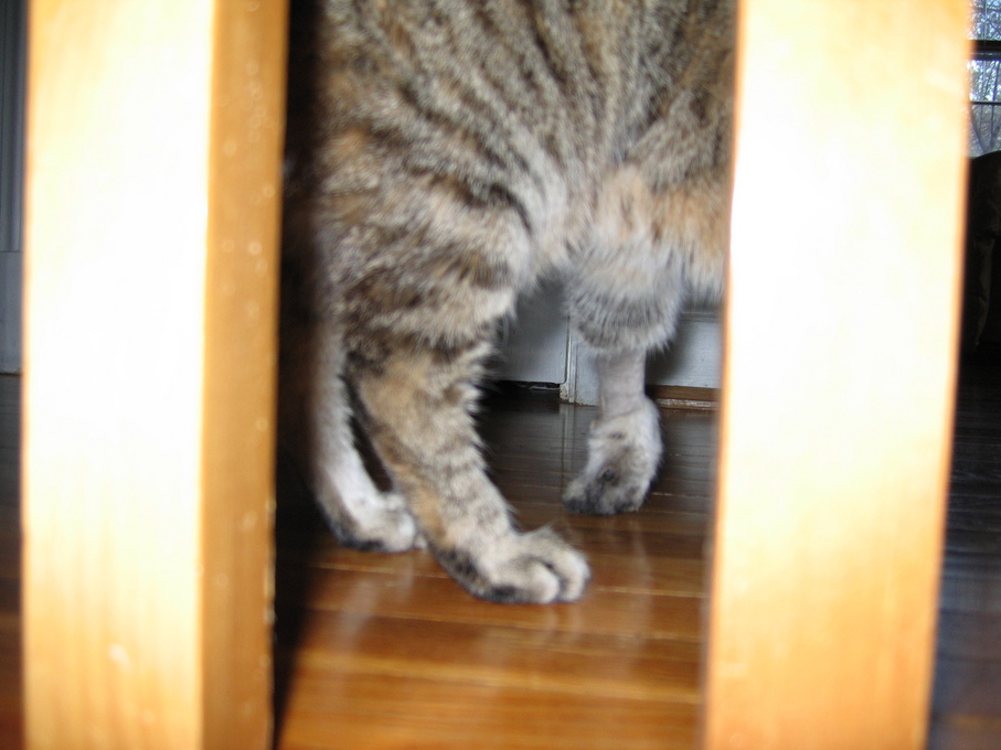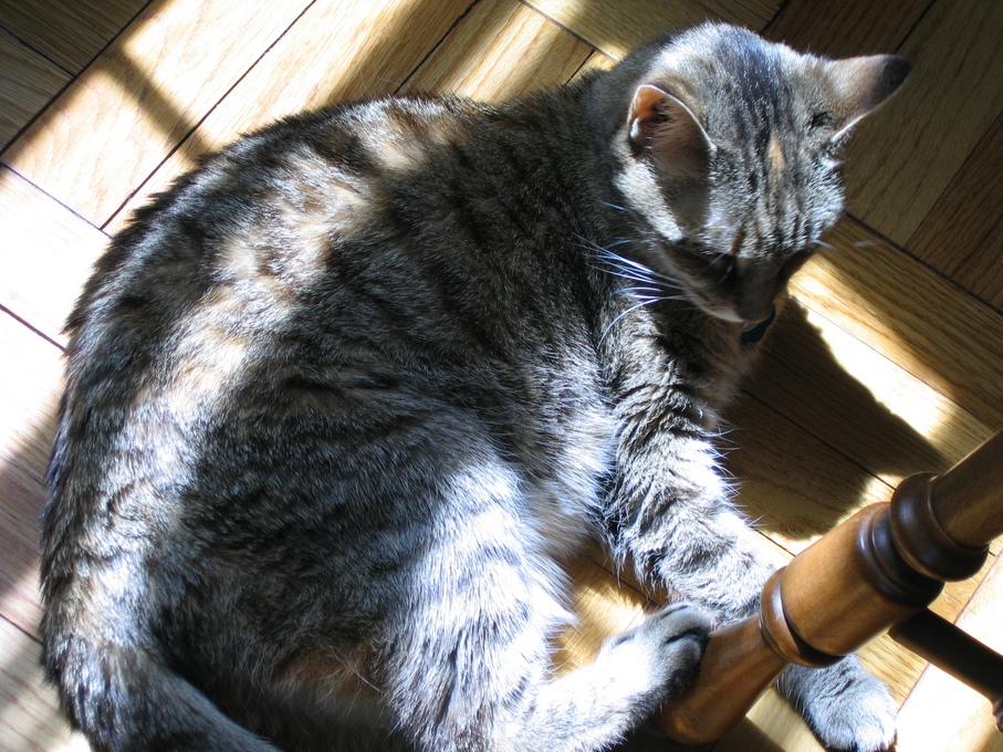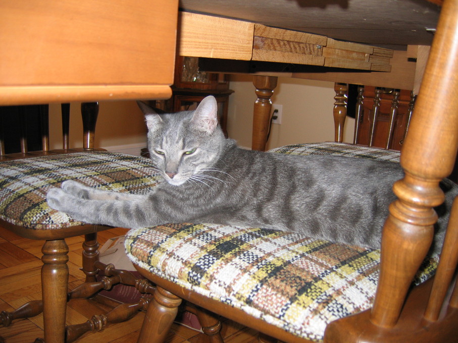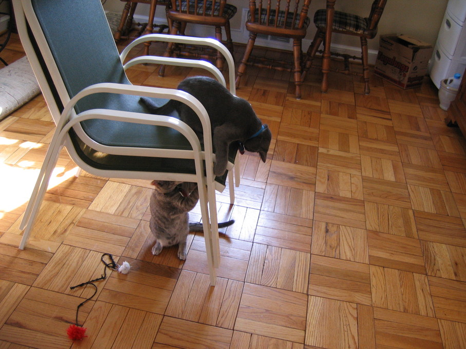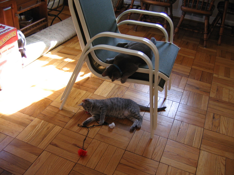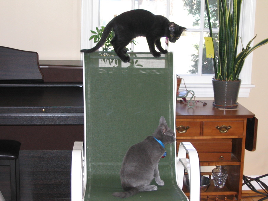 Outside plants on 4/6/06:Electra being frisky on a chair.