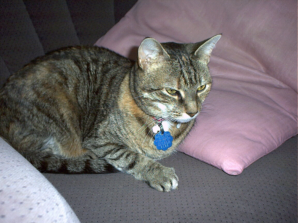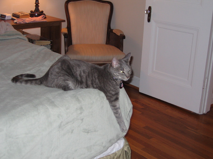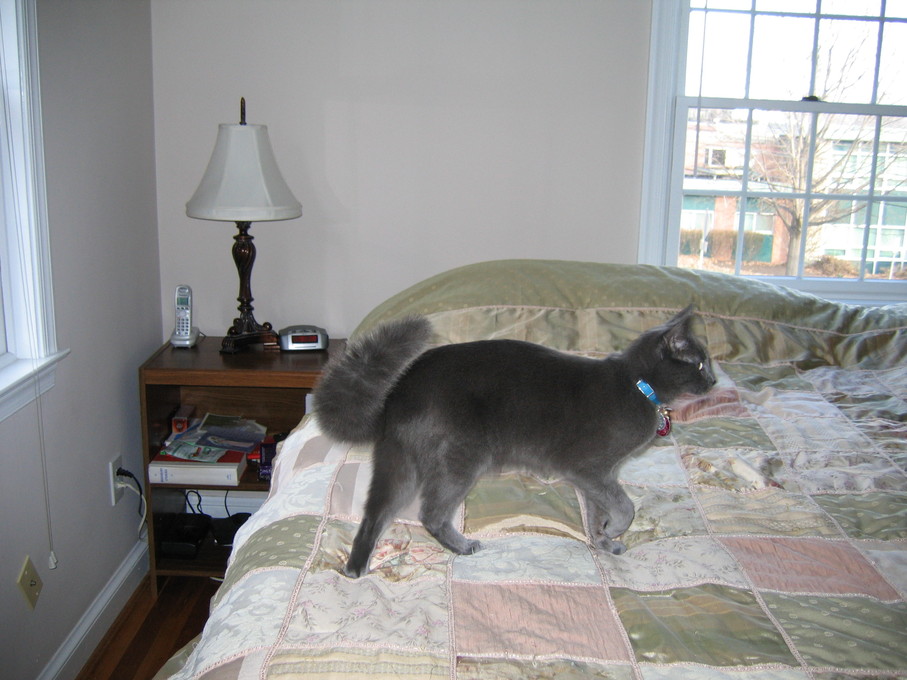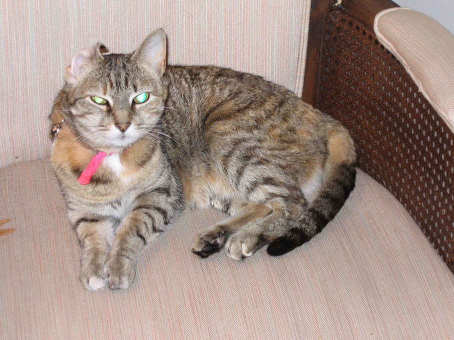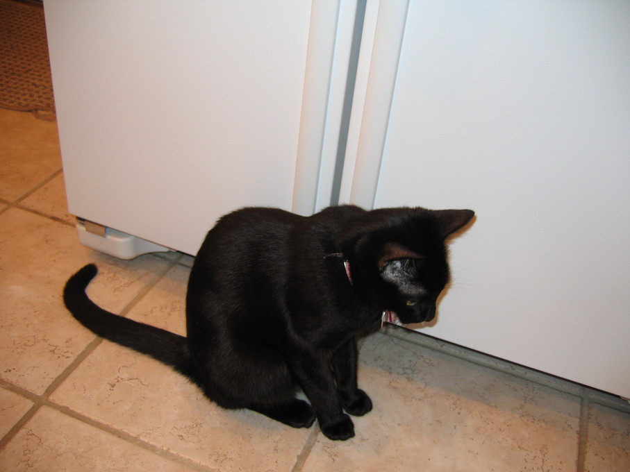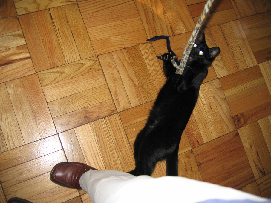 Outside plants on 4/6/06:Electra being frisky on a chair.