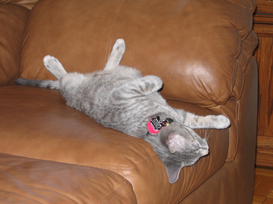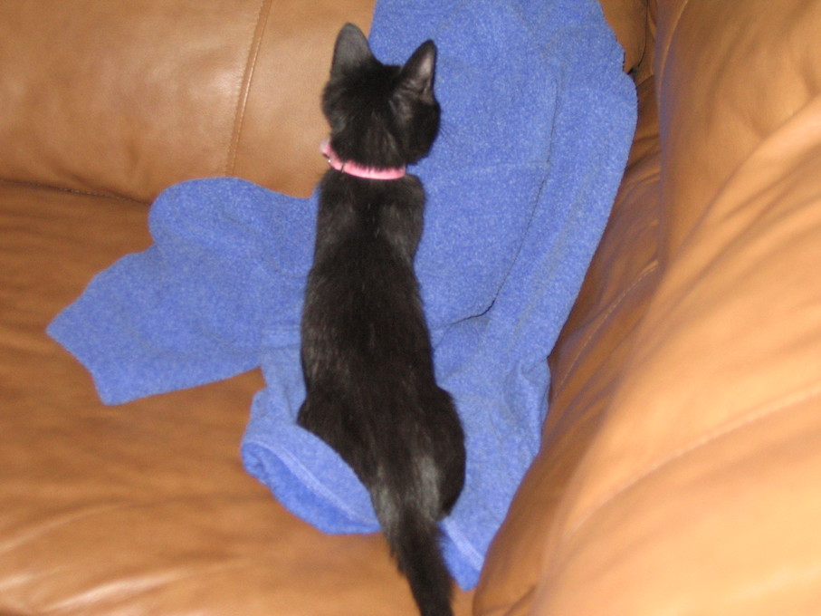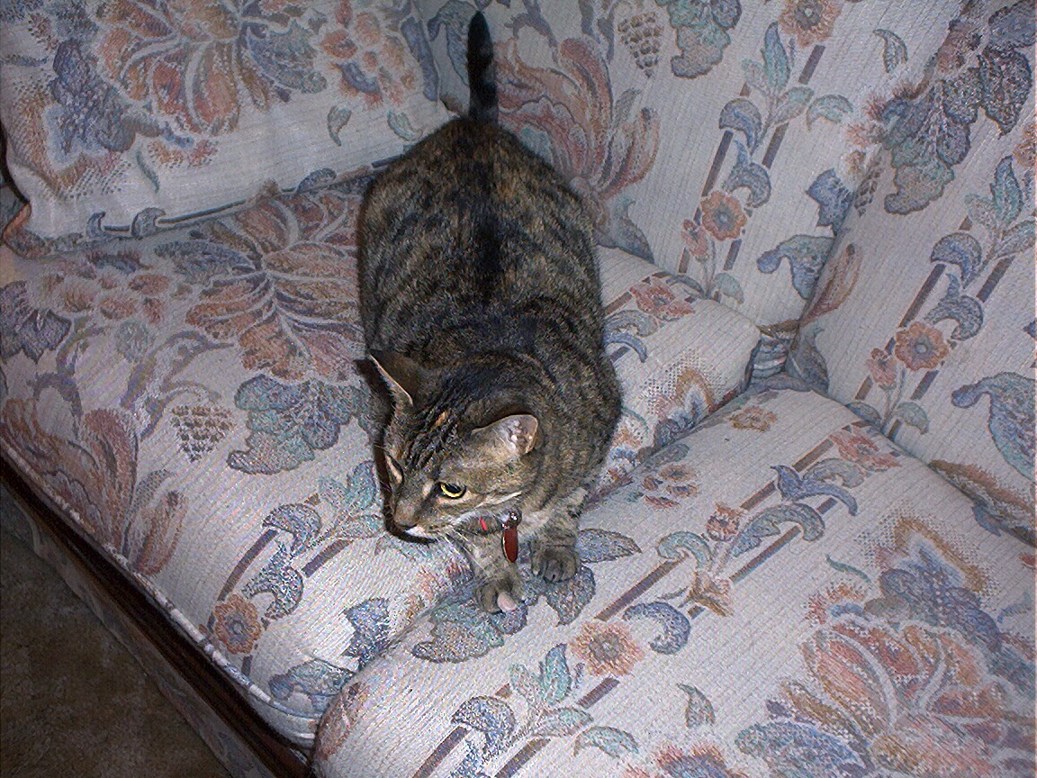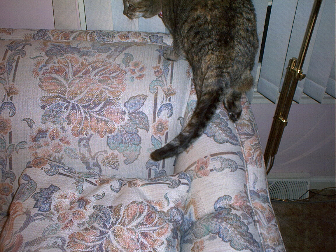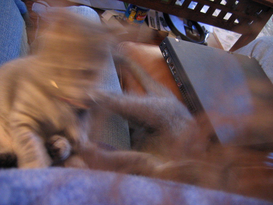 Electra being frisky on the chair arm.