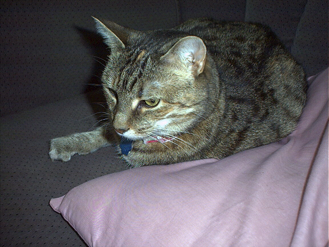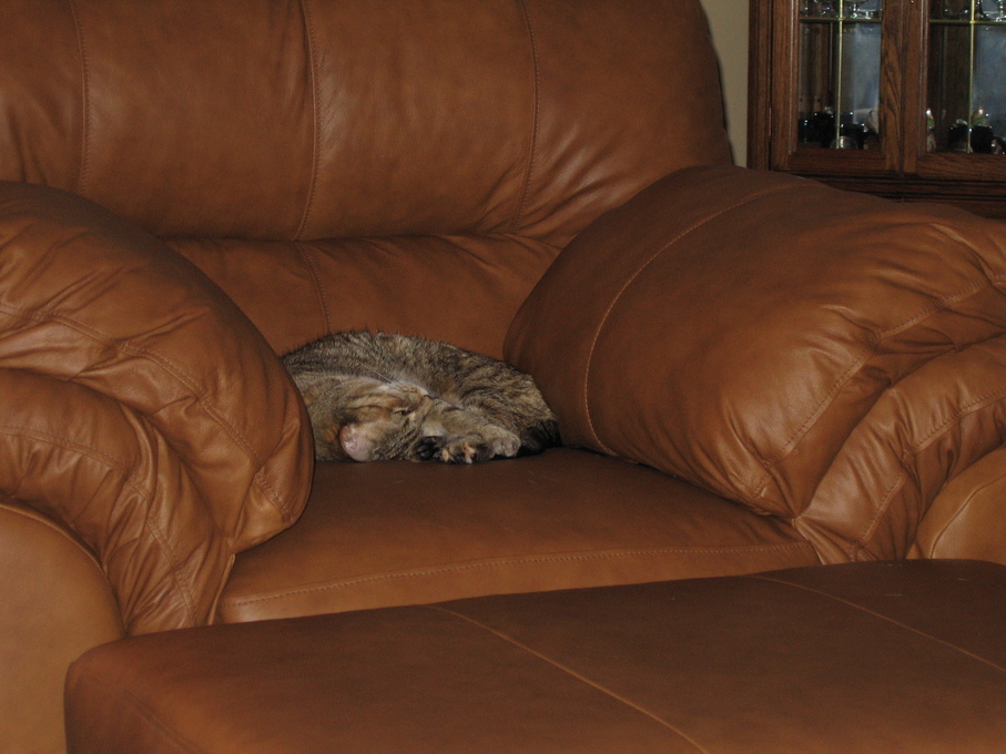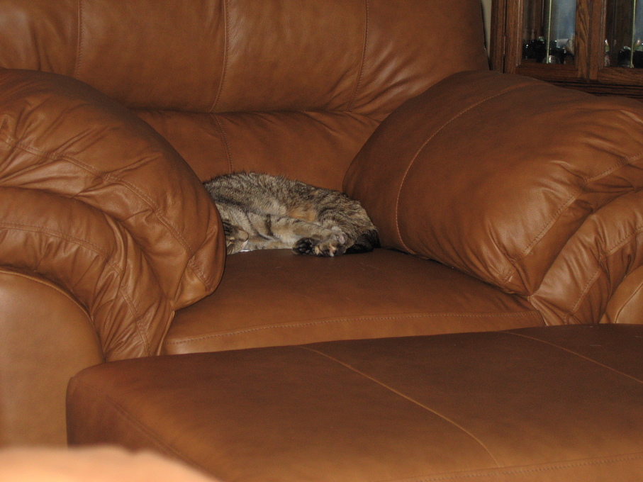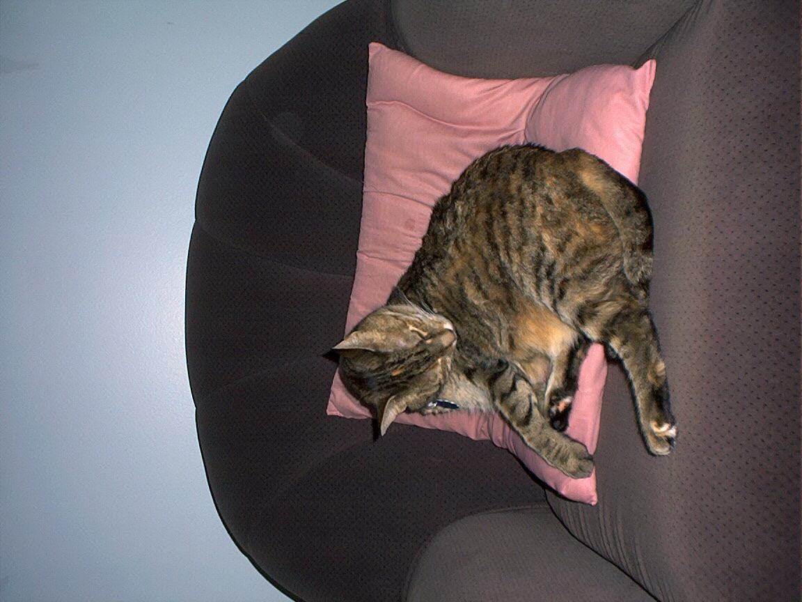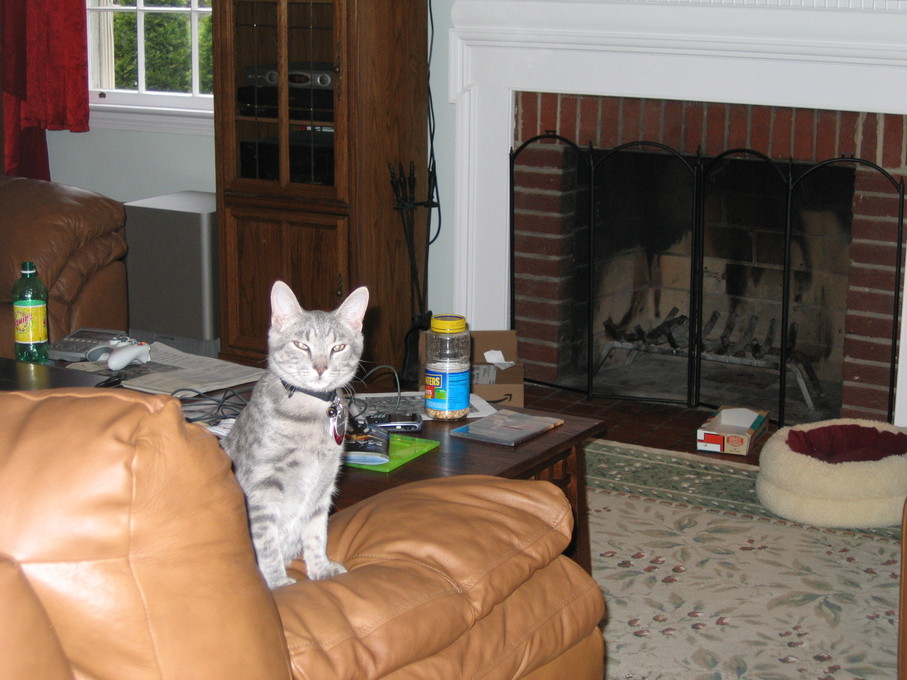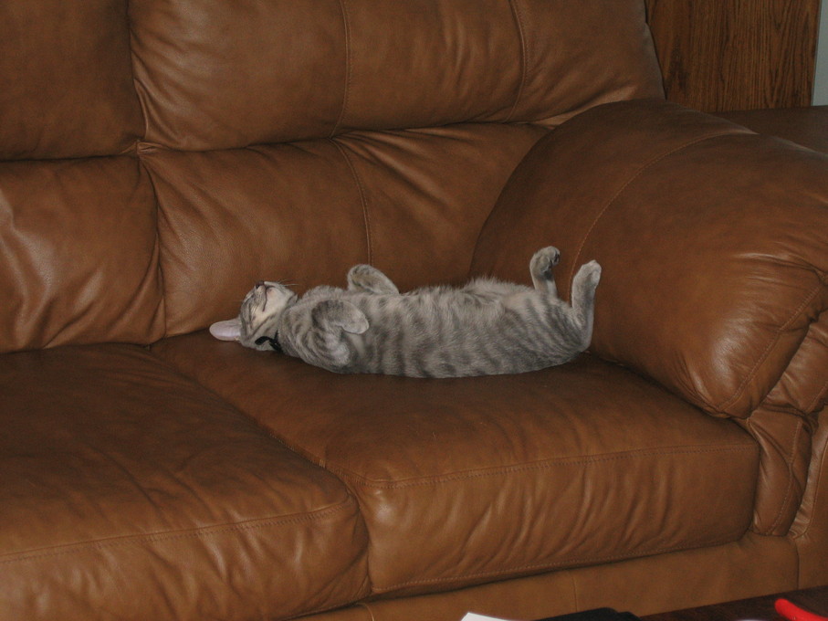 Electra being frisky on the chair arm.