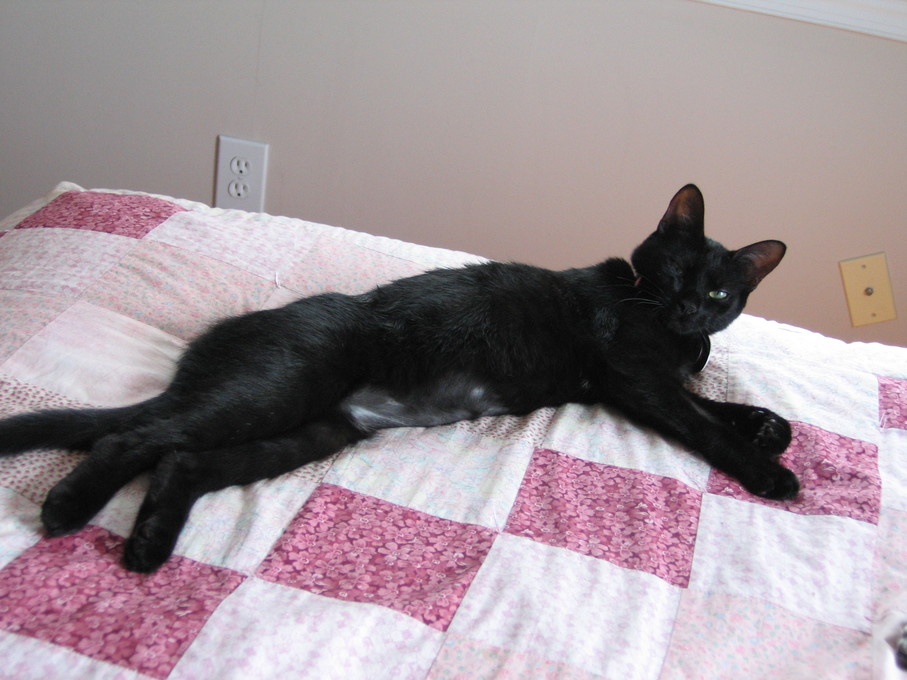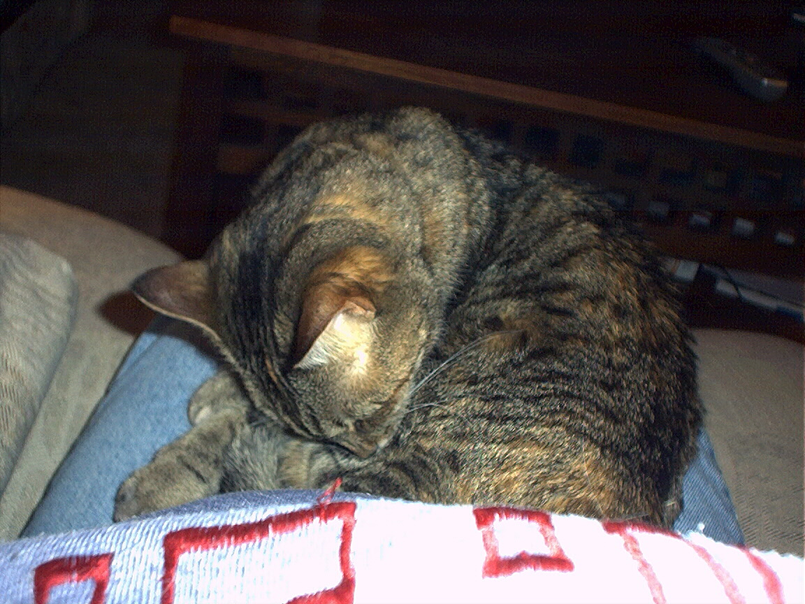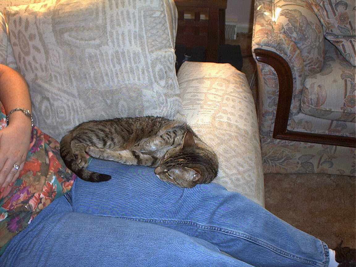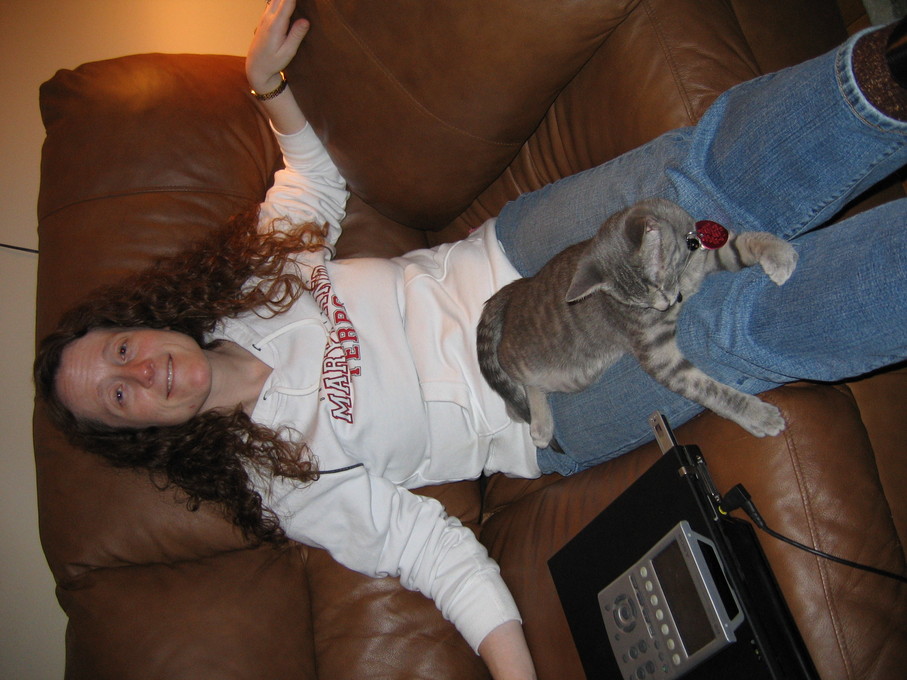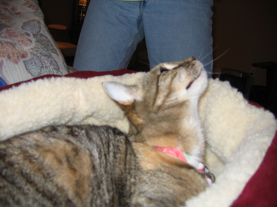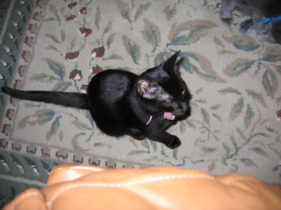 Electra cleaning herself on my lap