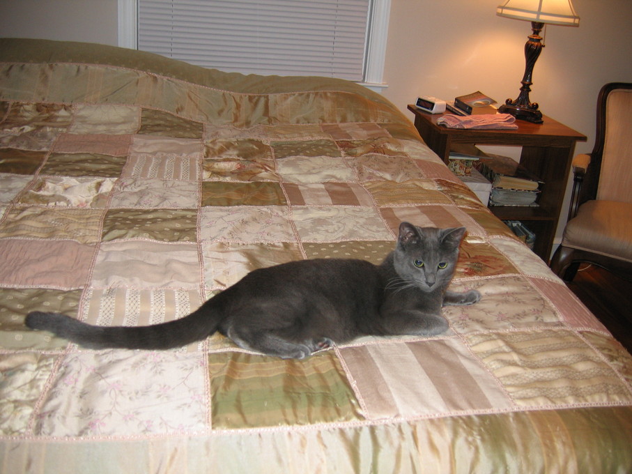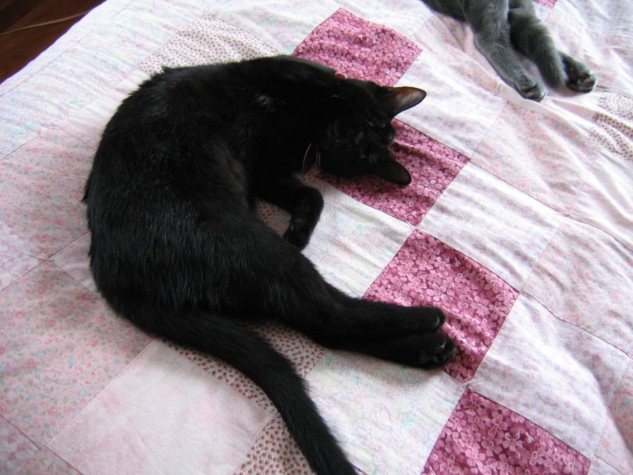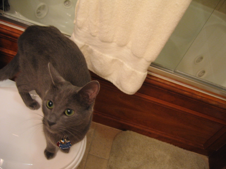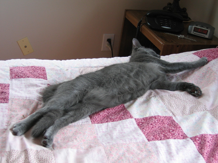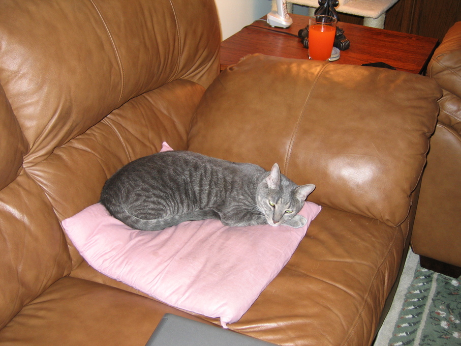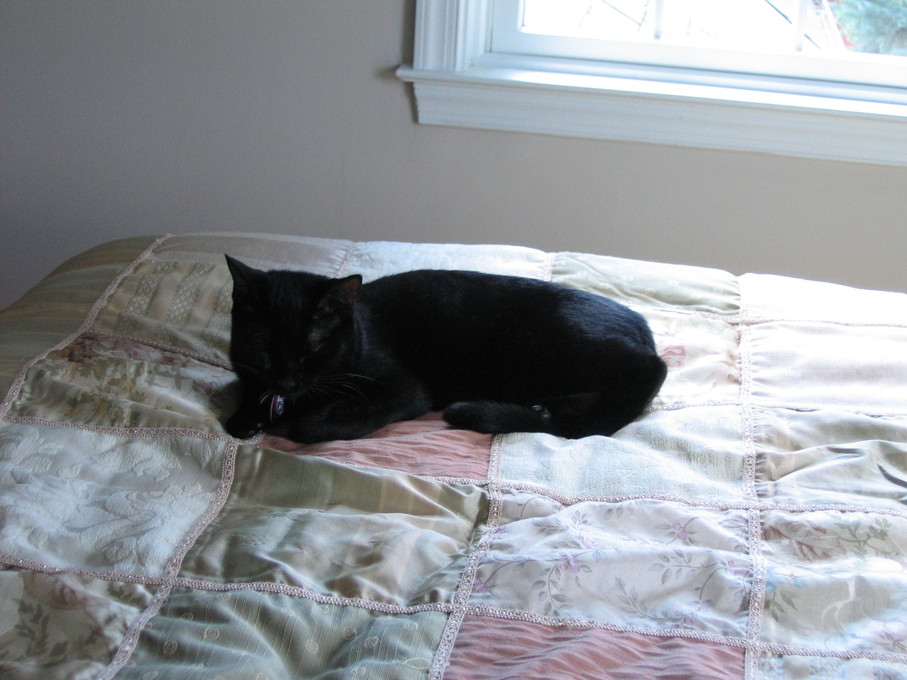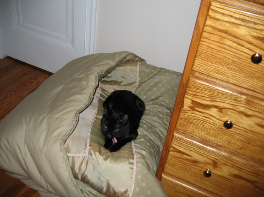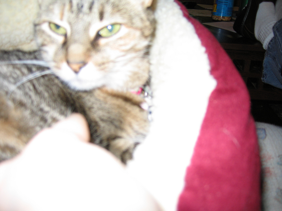 Electra cleaning herself on my lap