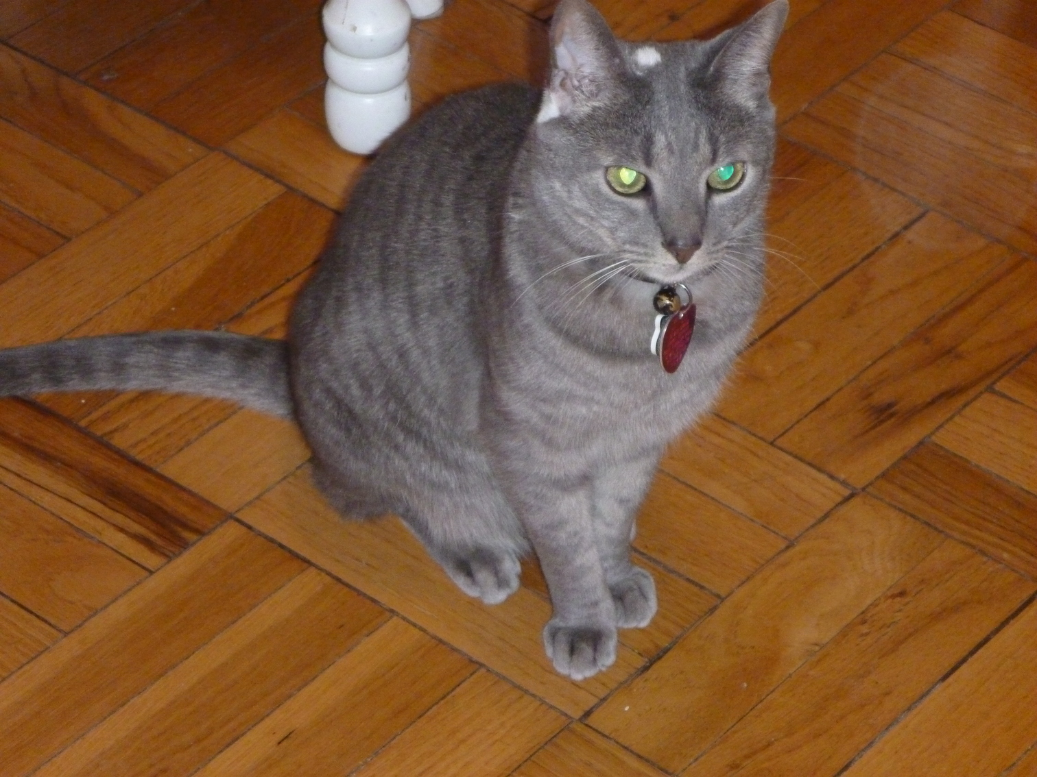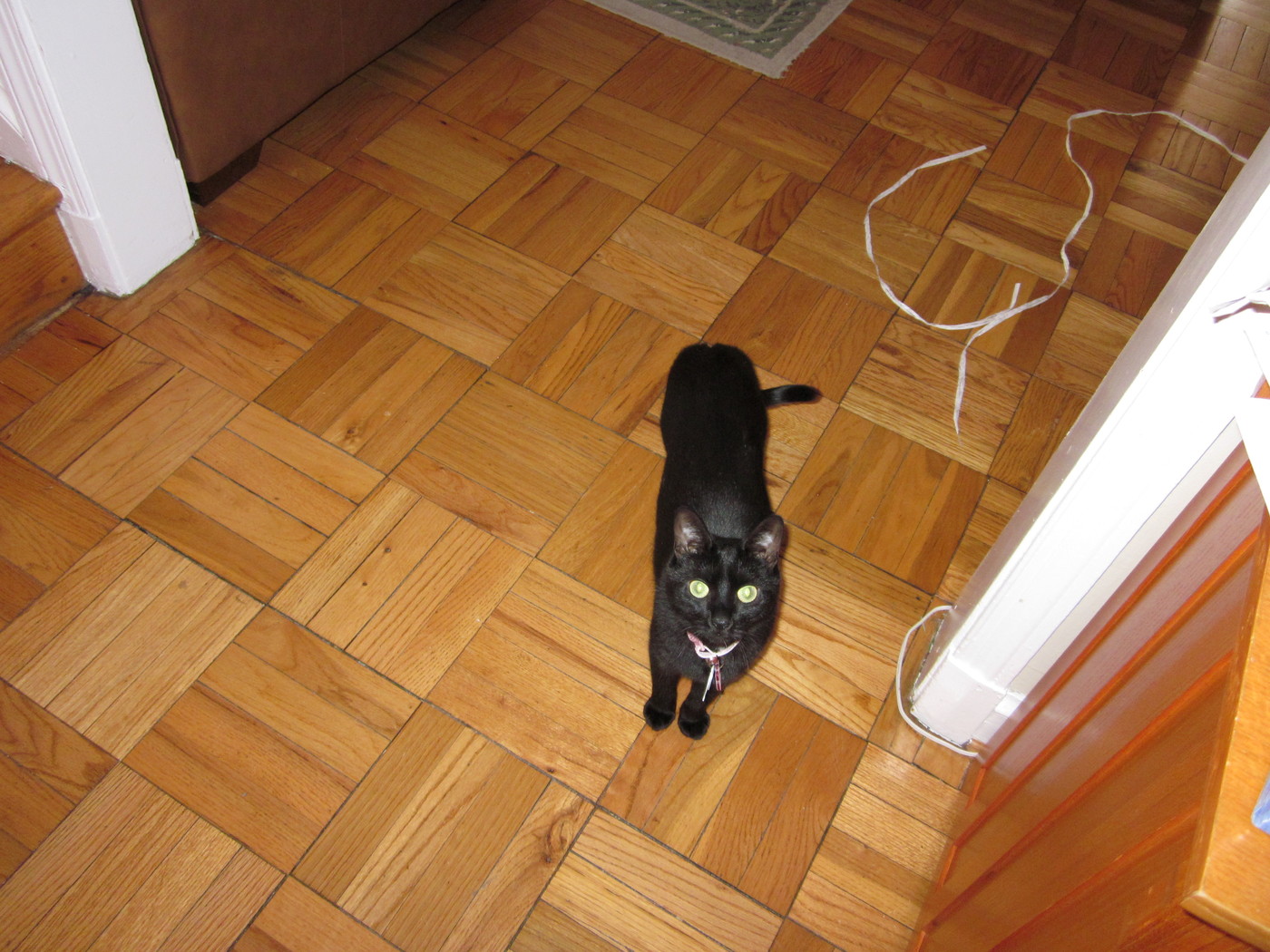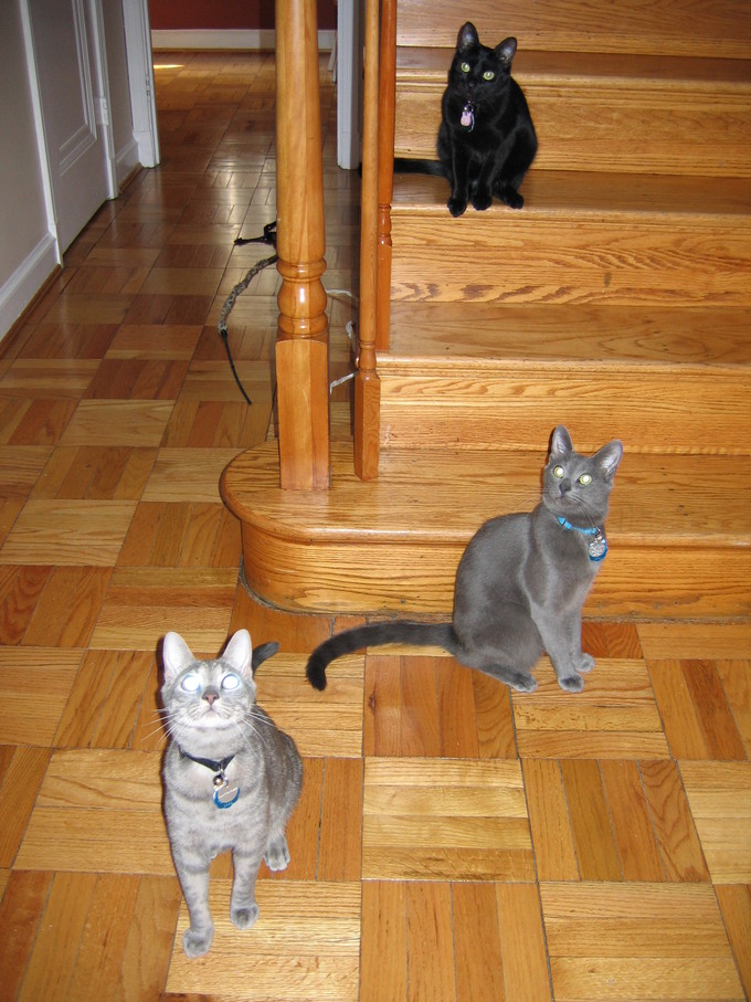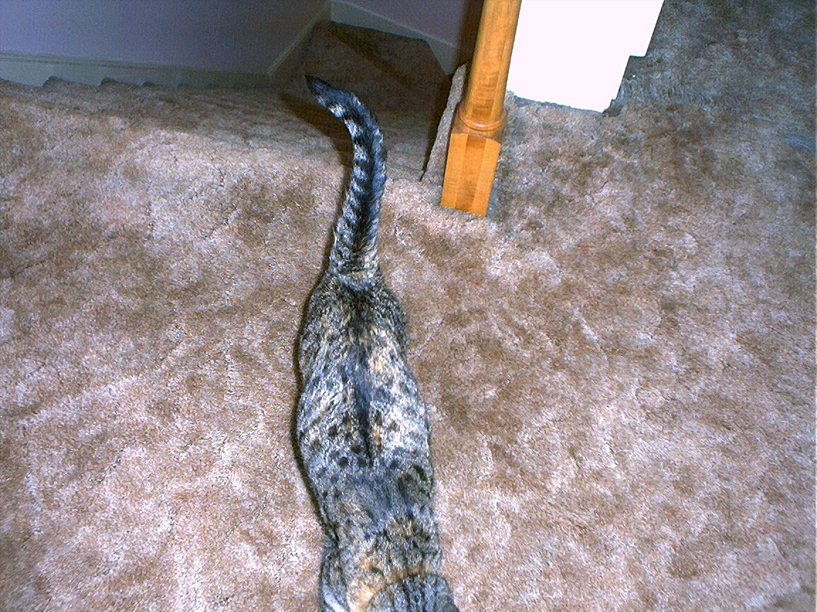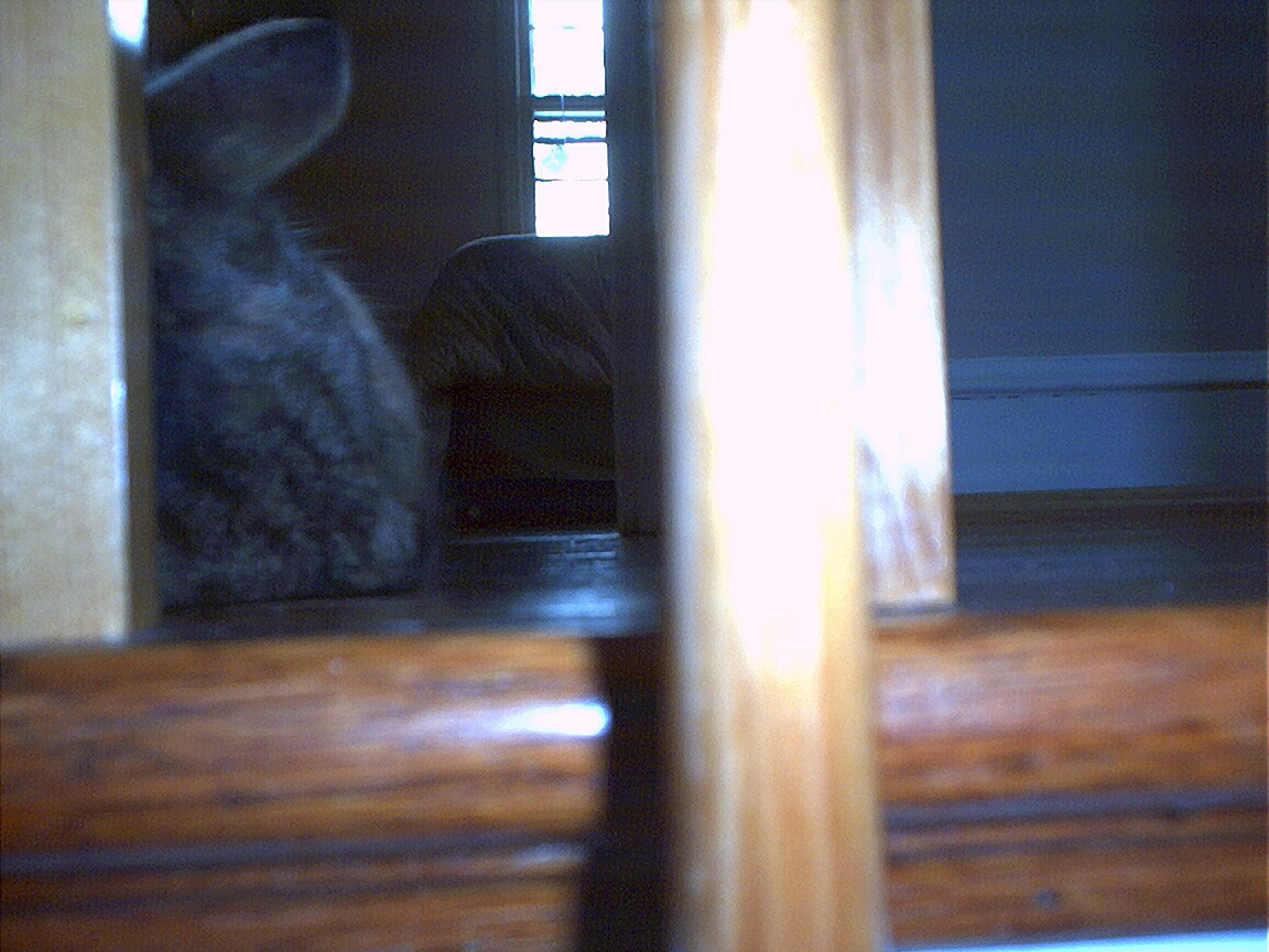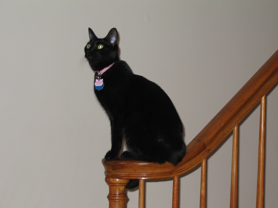 Rascal peeking down the stairs.
