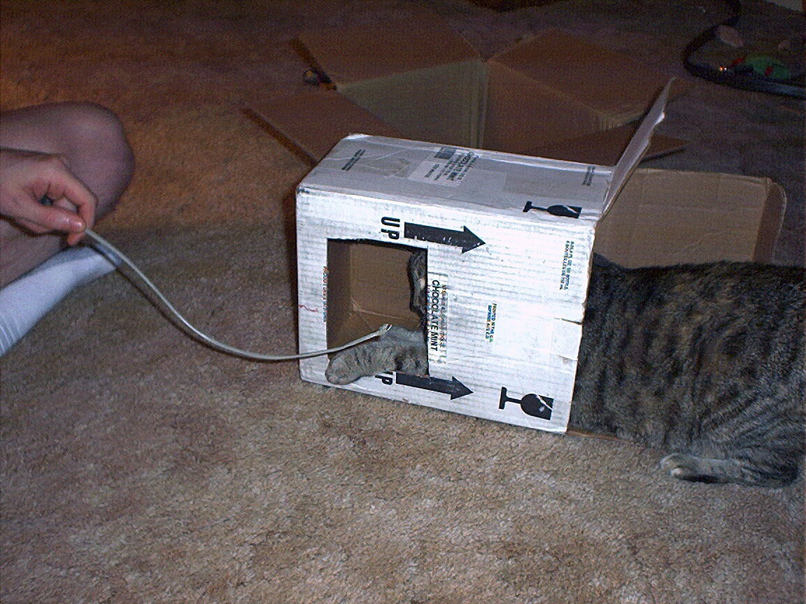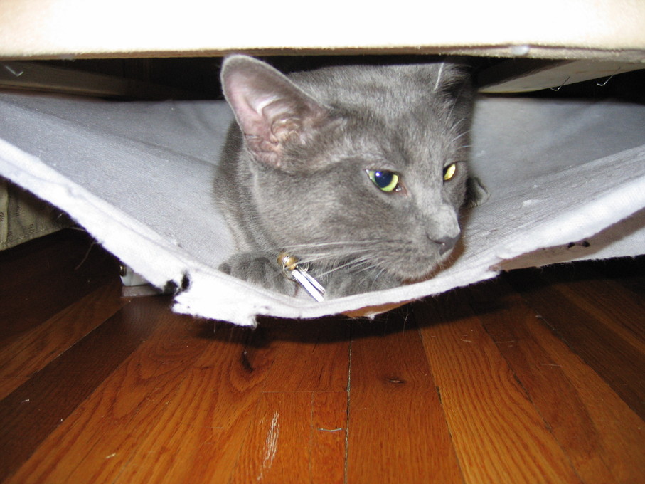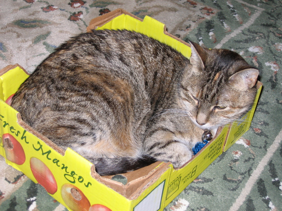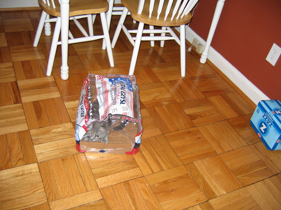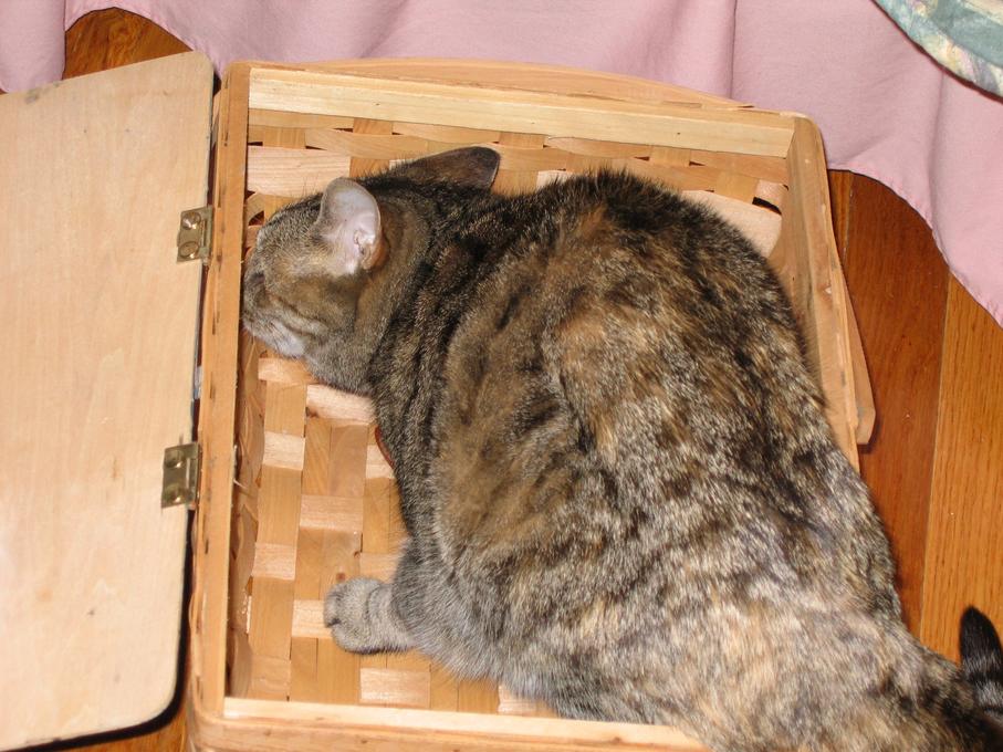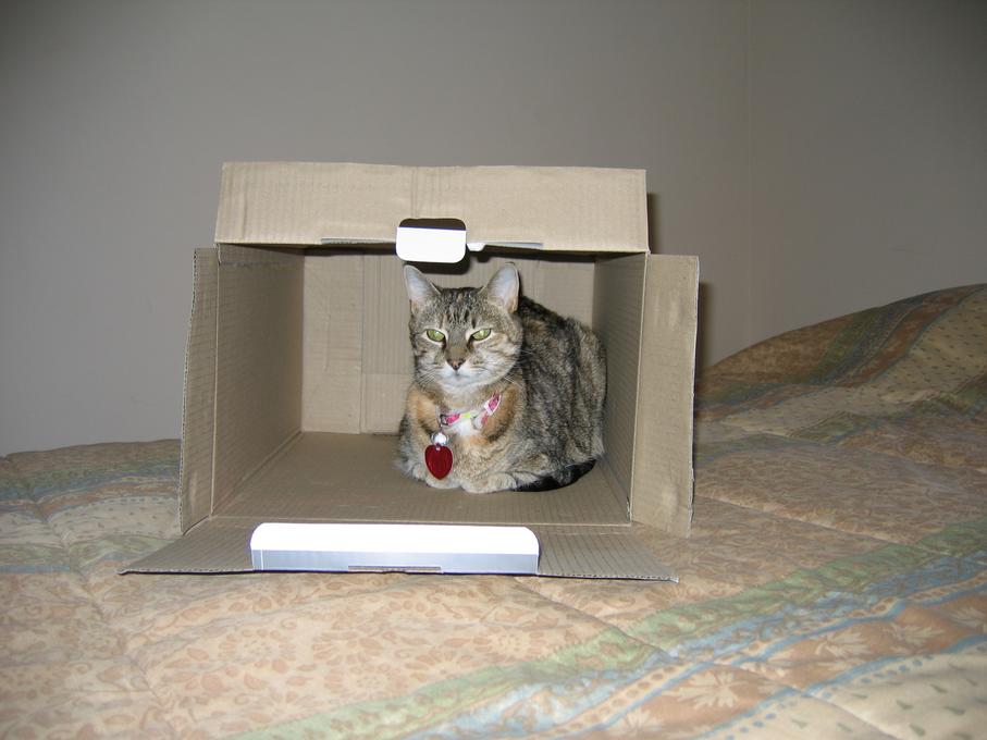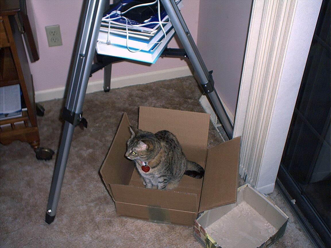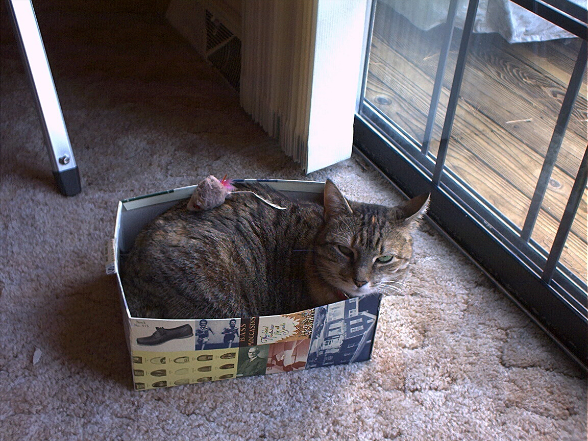 Electra sticking her paw into her box