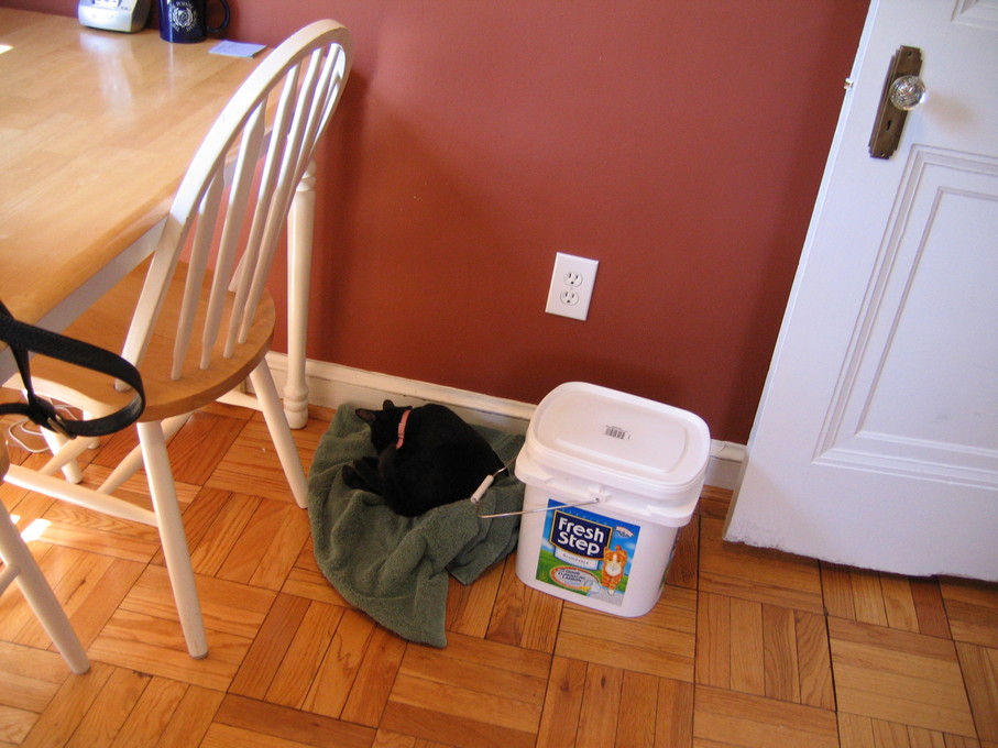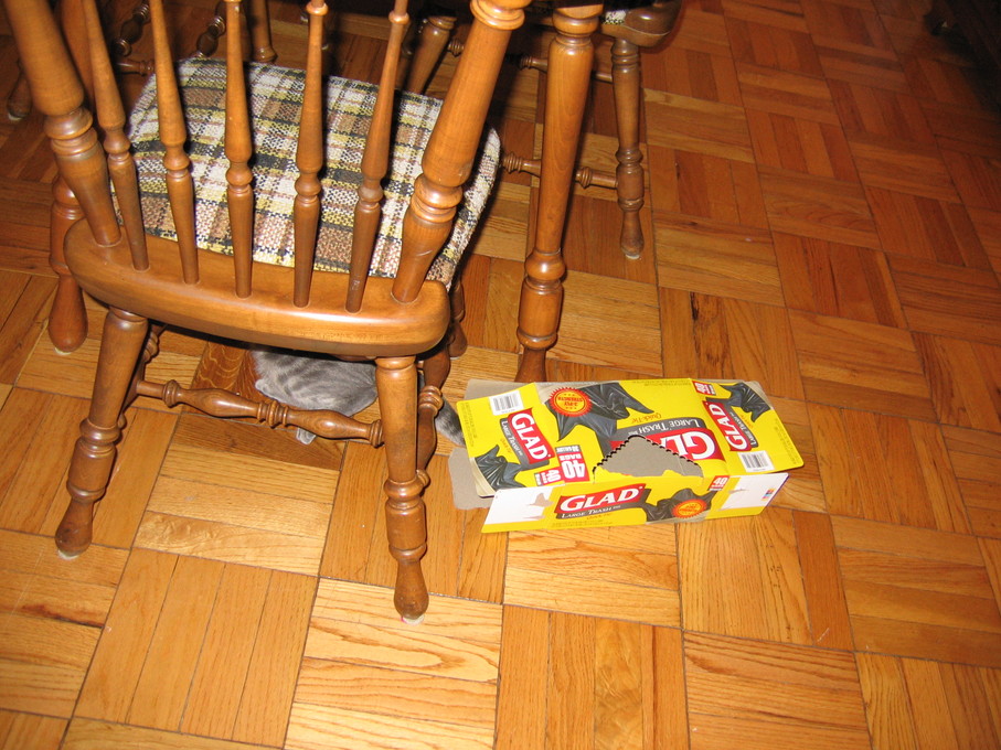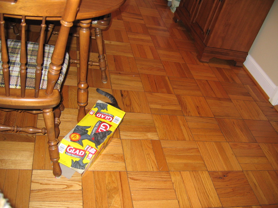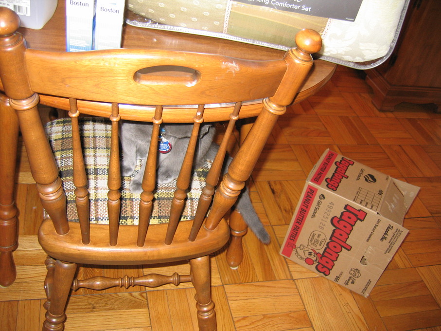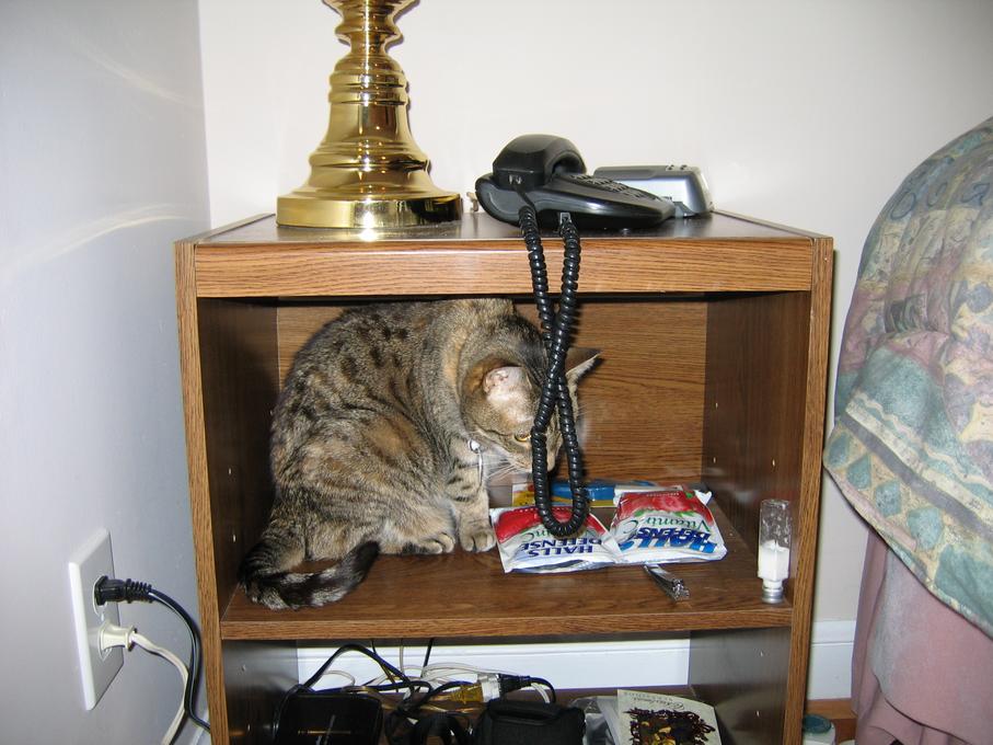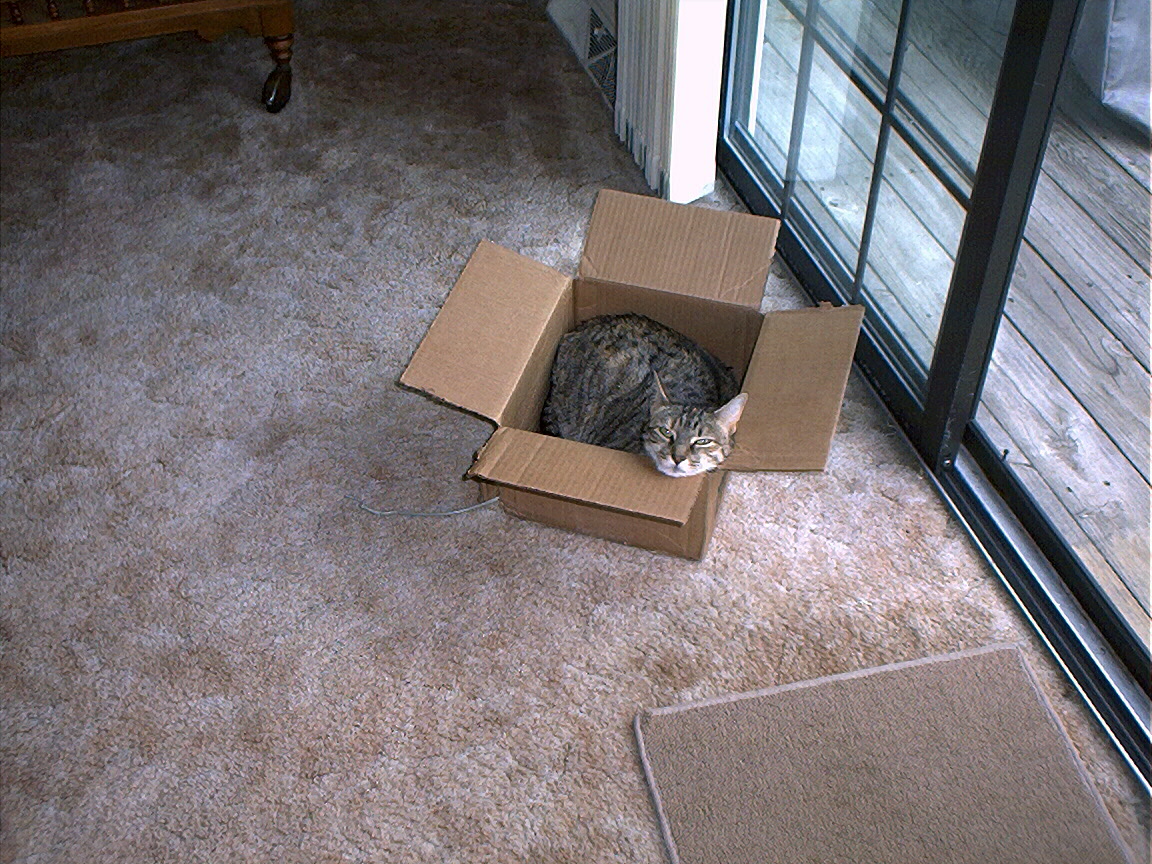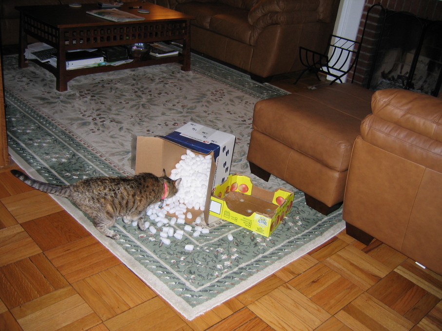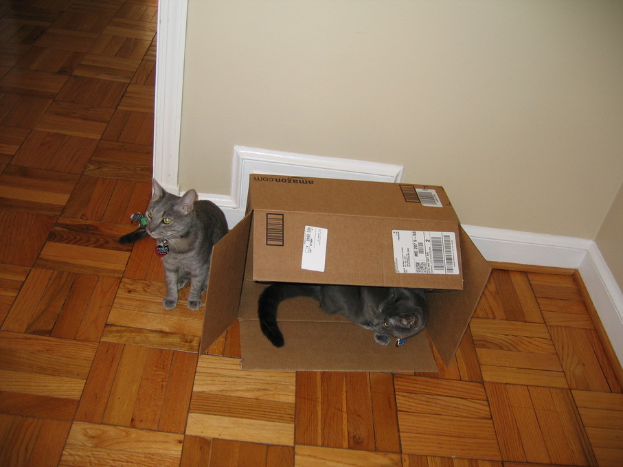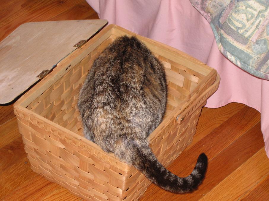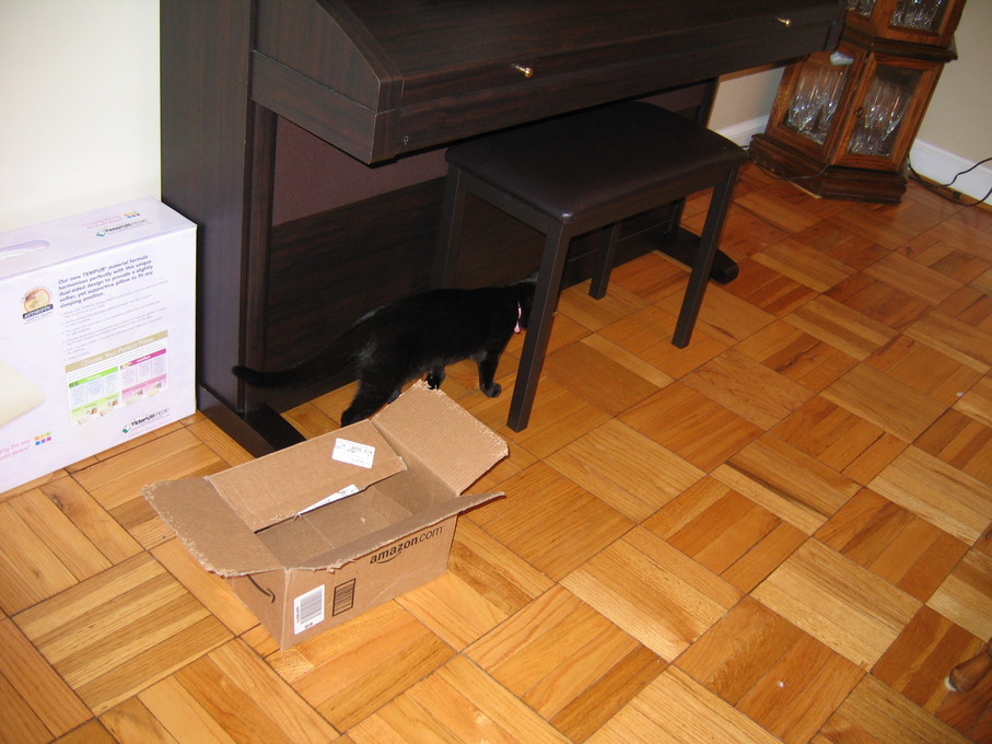 Electra sticking her paw into her box