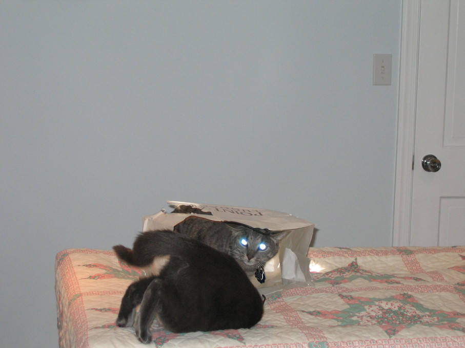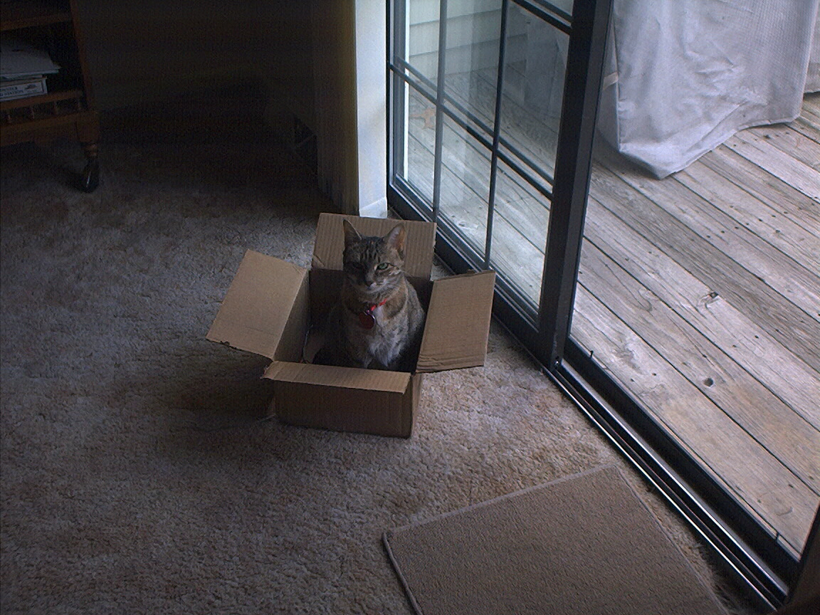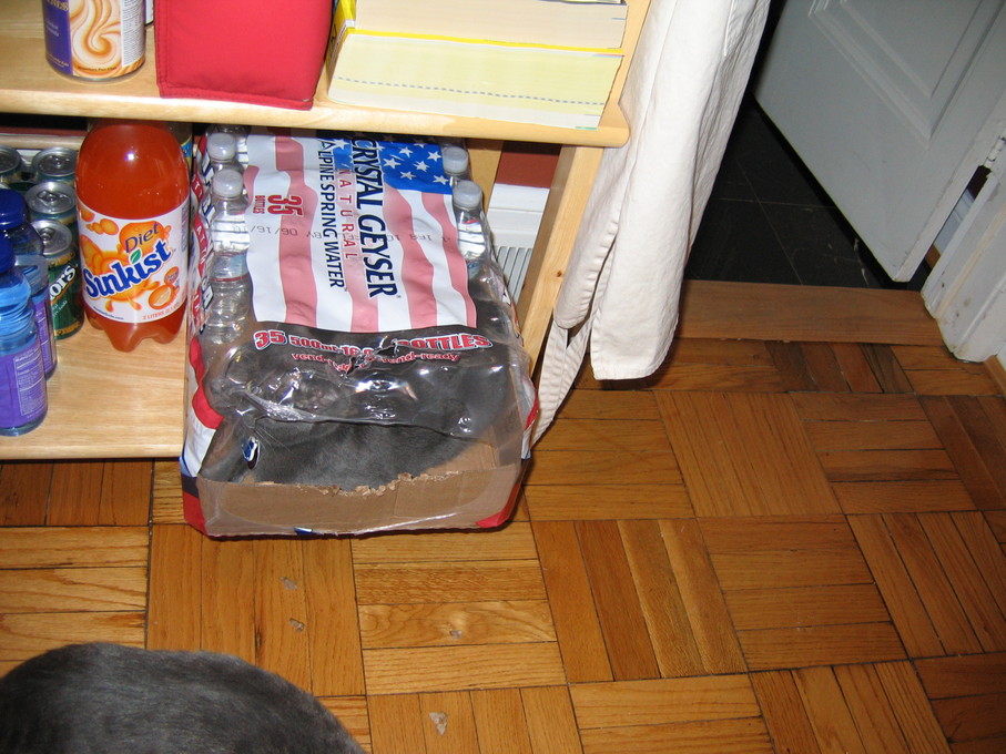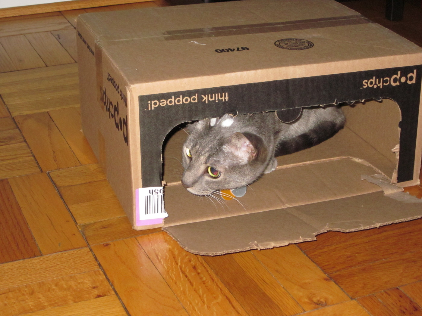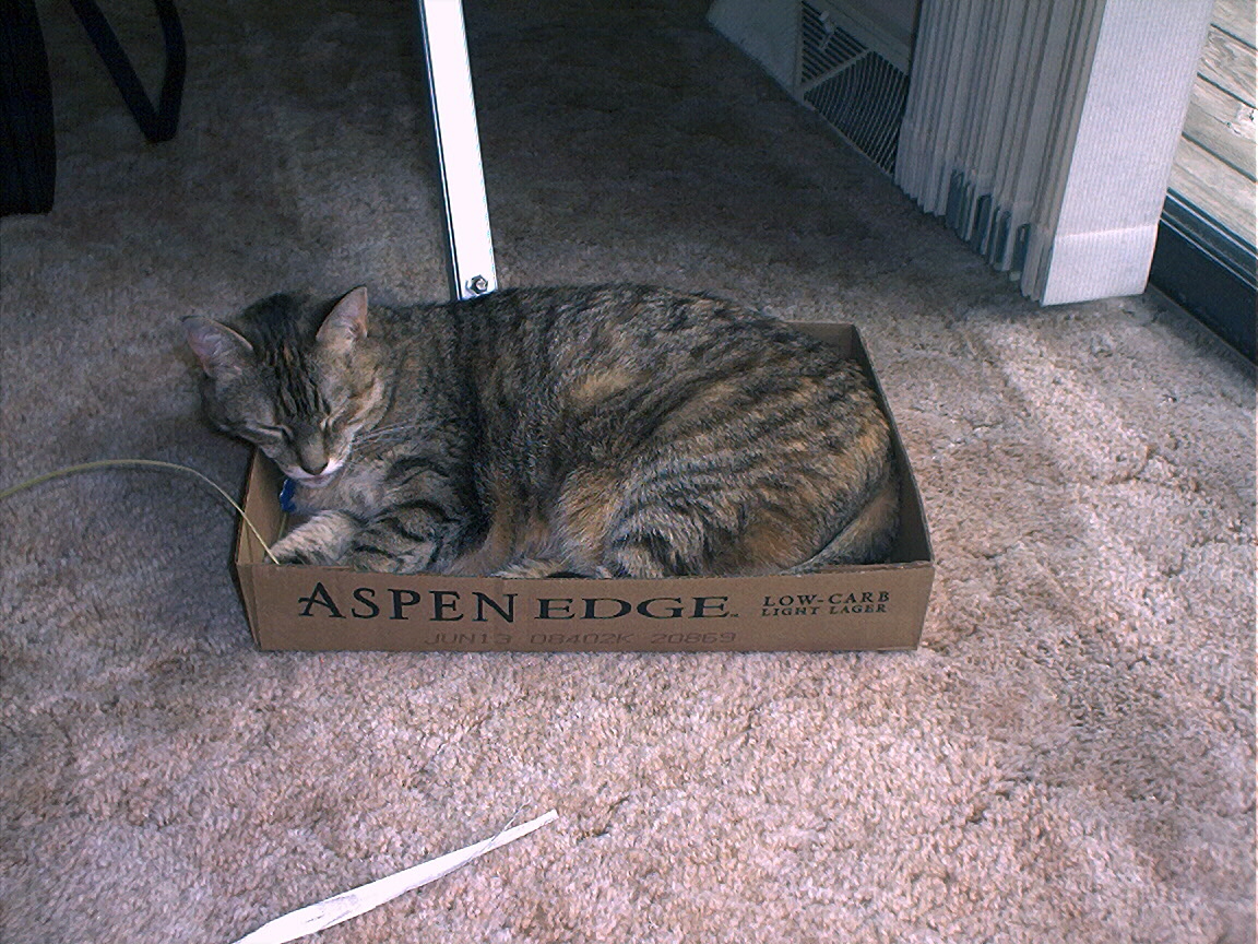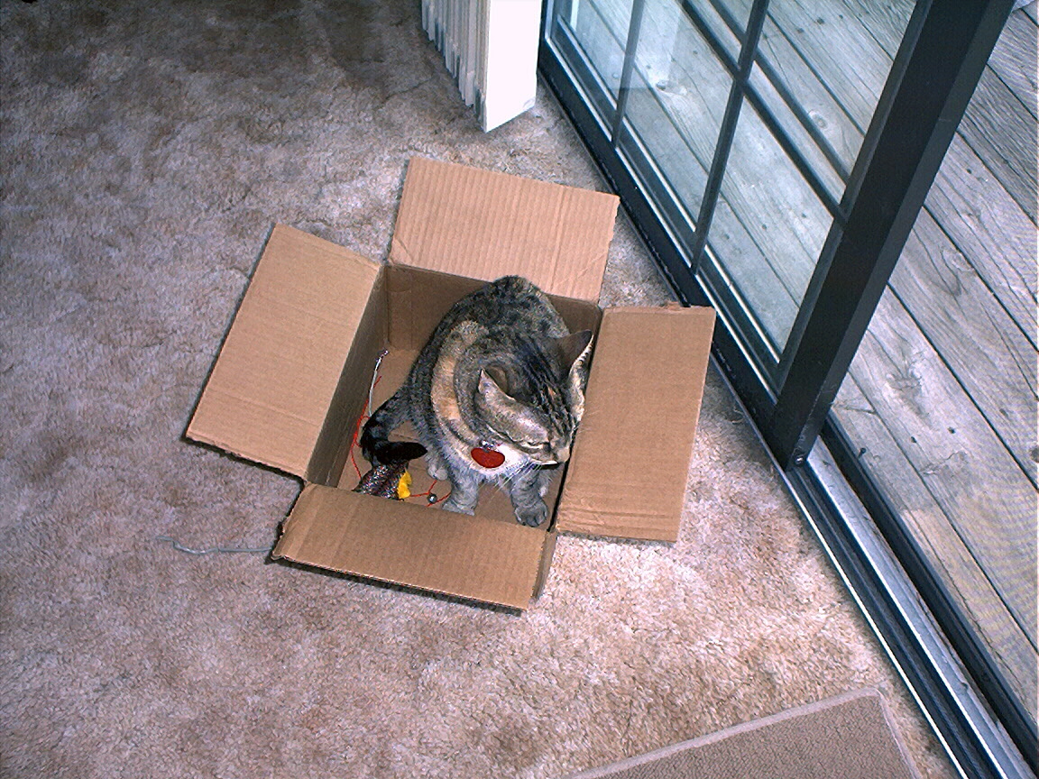 Electra sticking her paw into her box