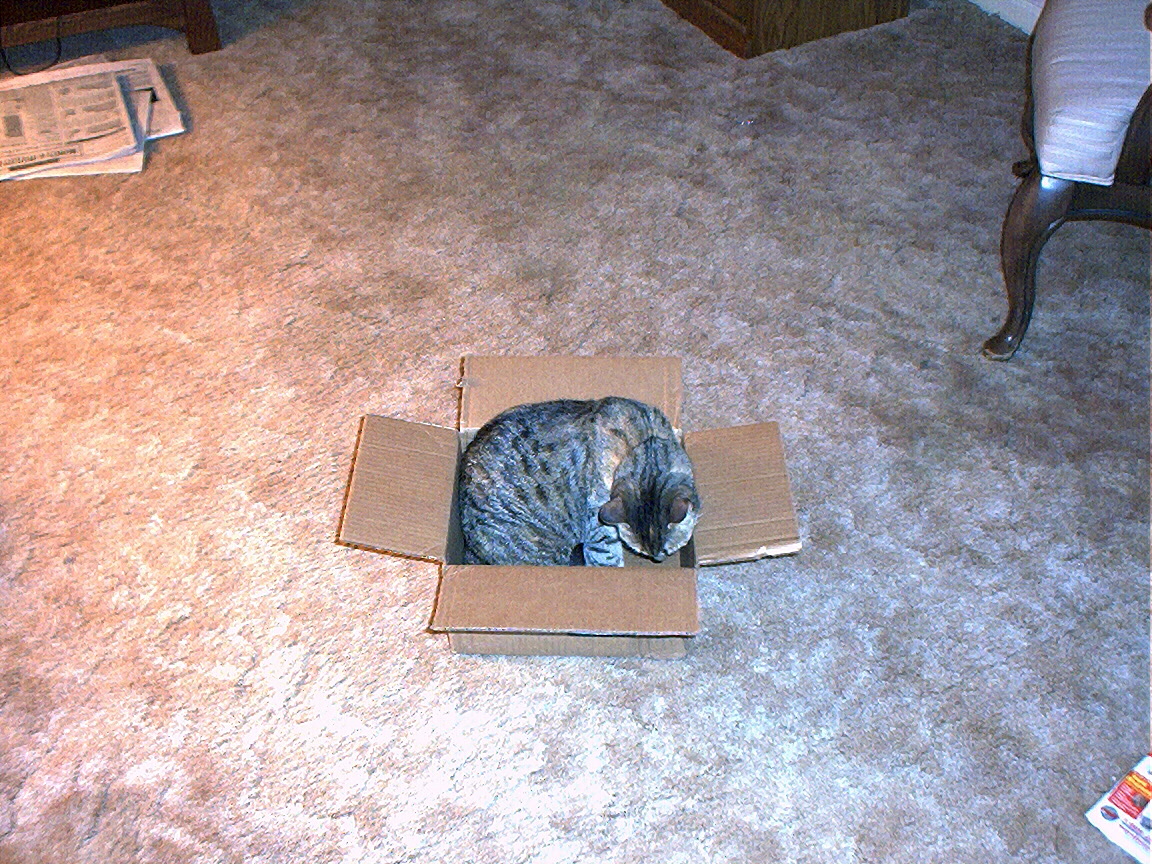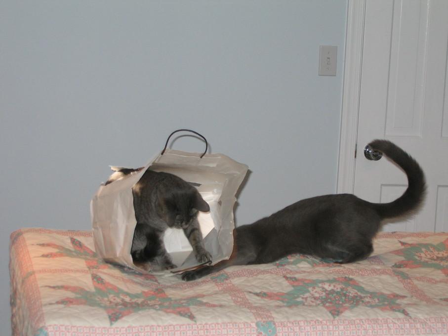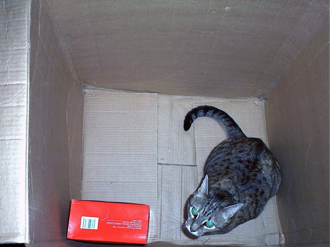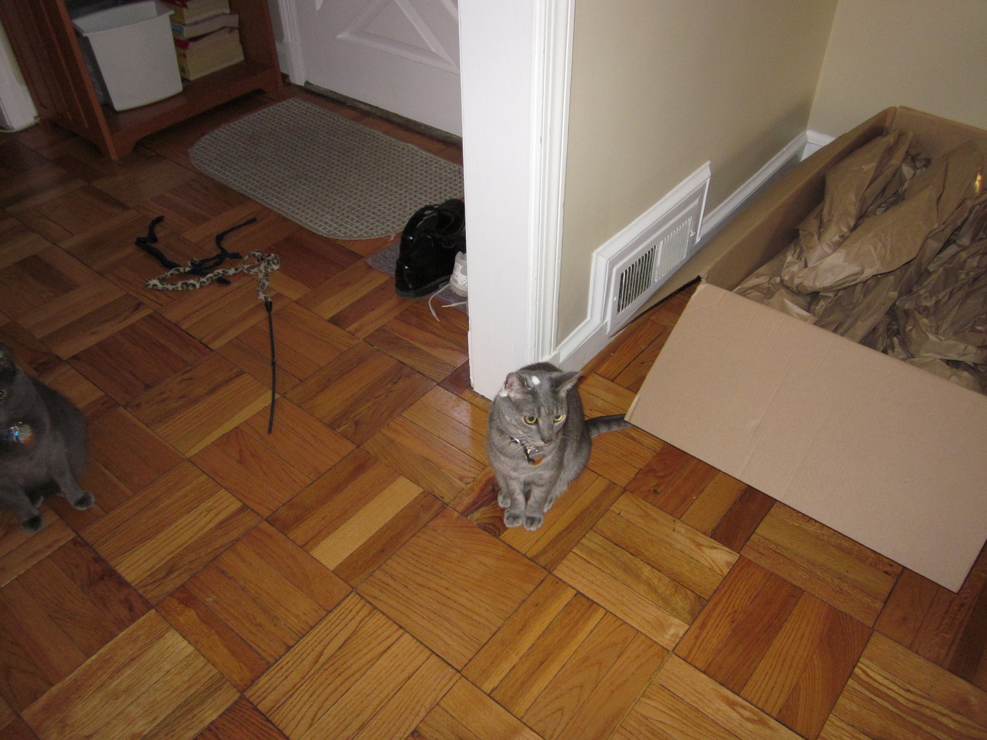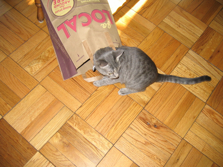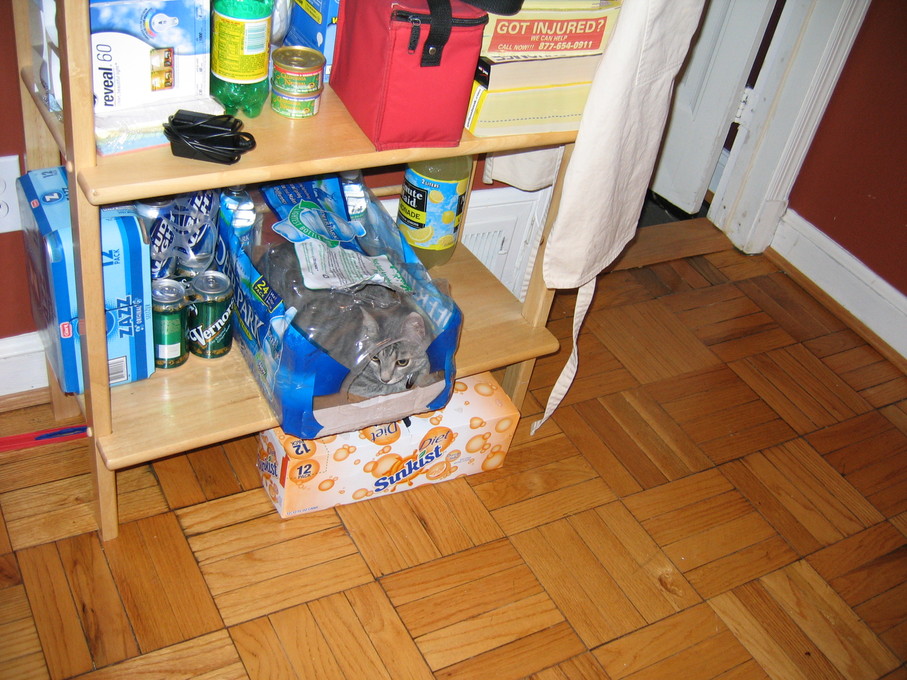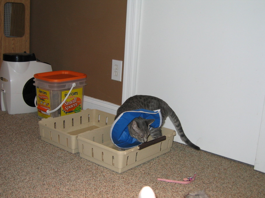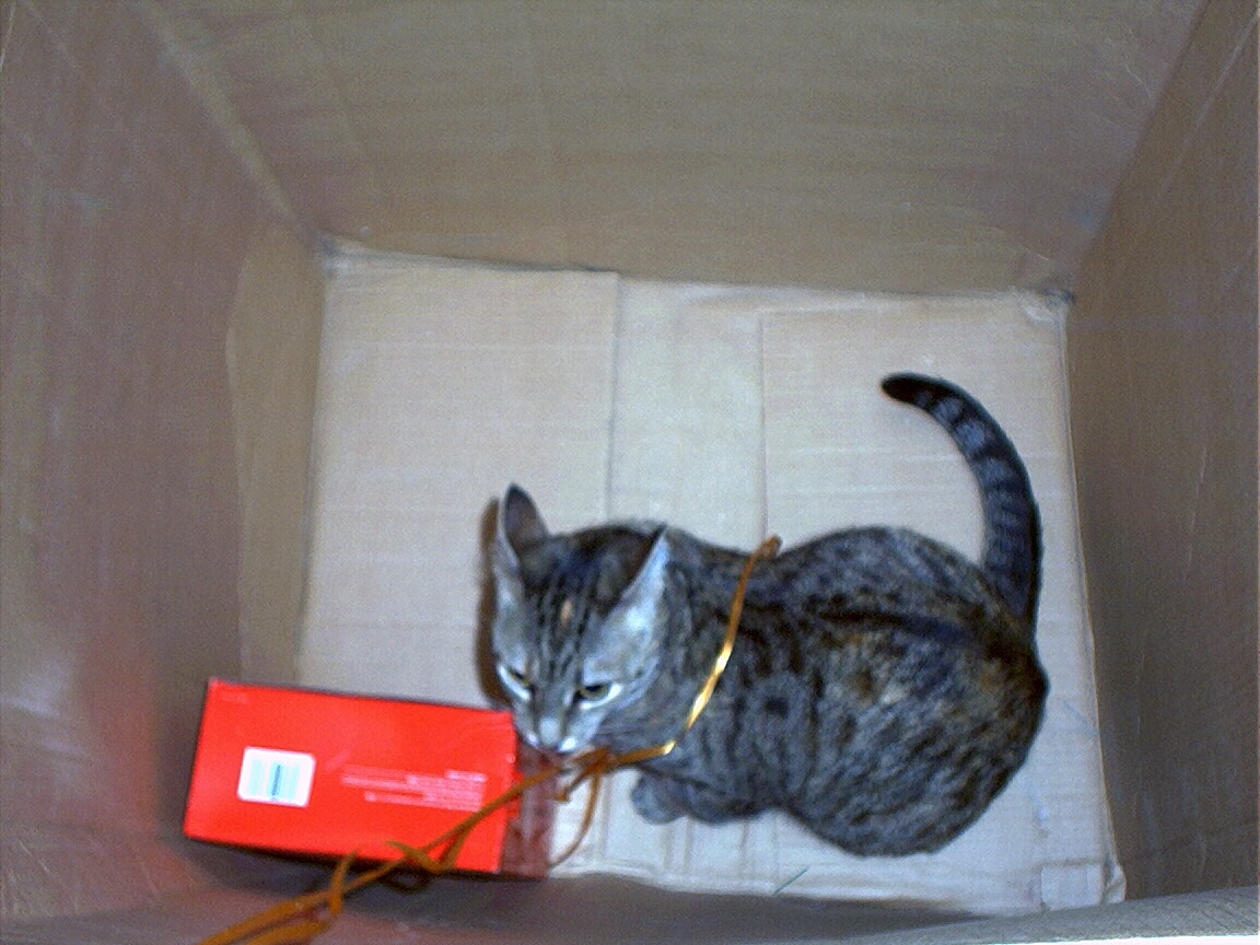Electra sticking her paw into her box