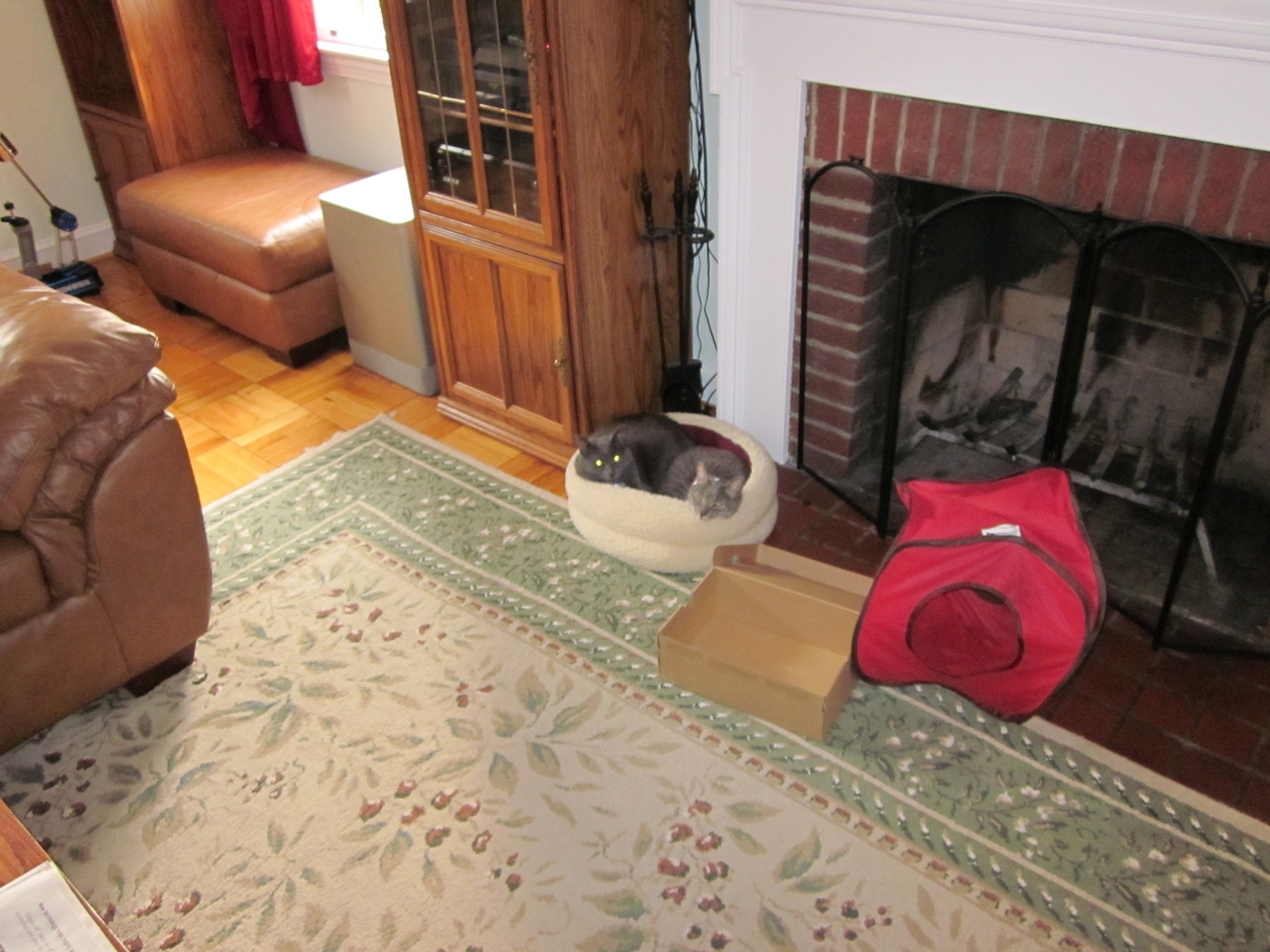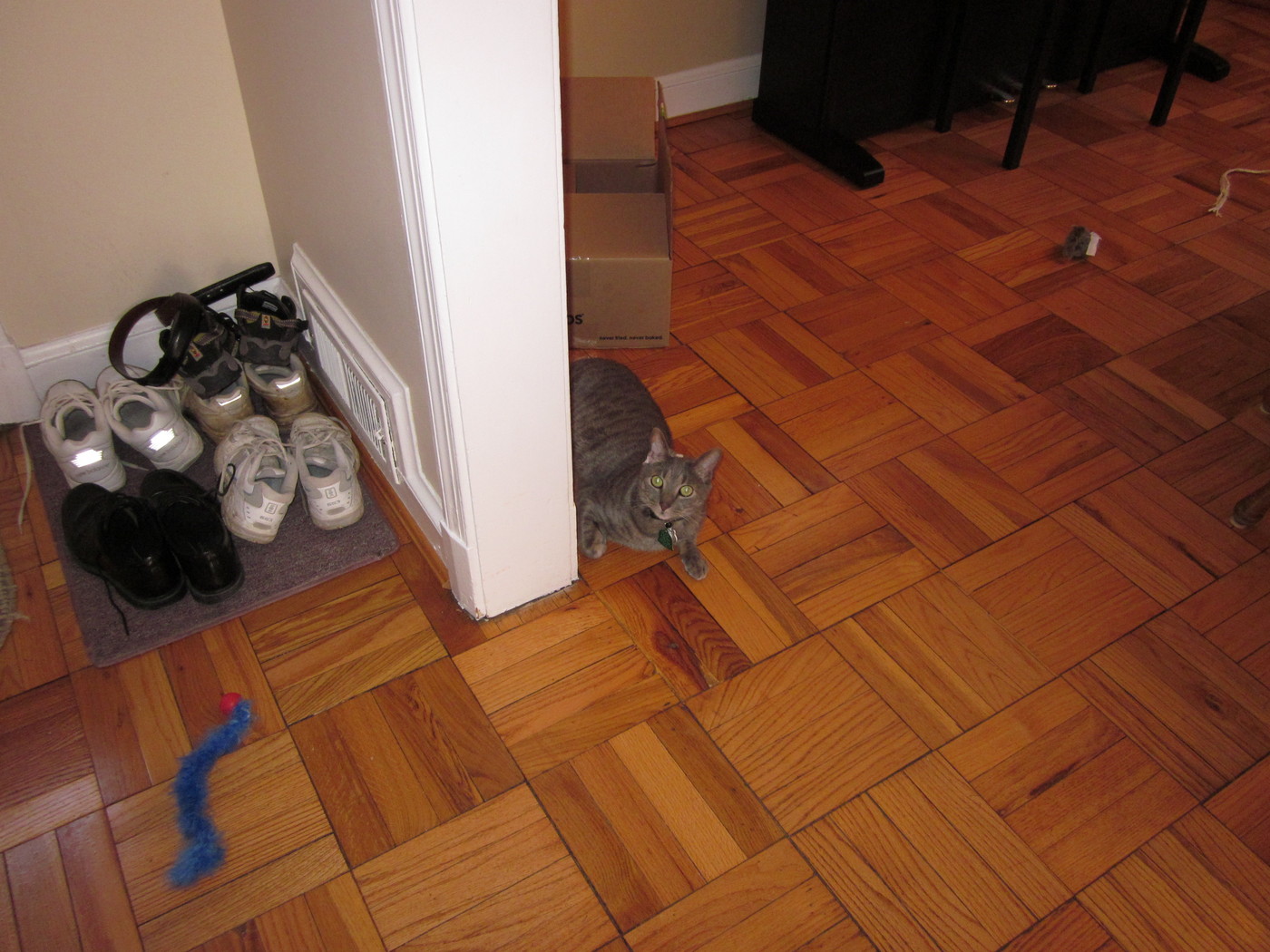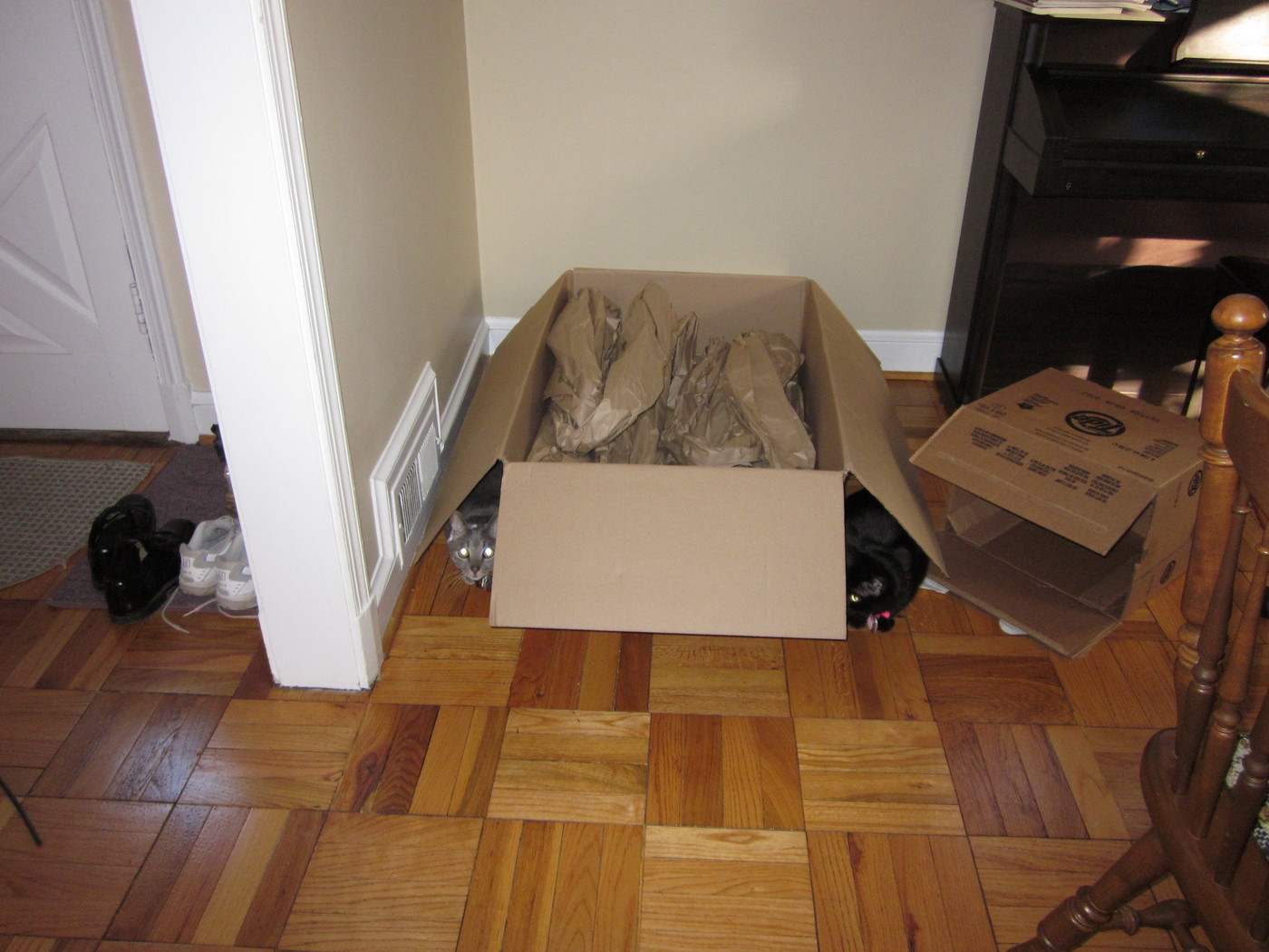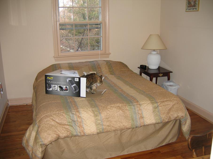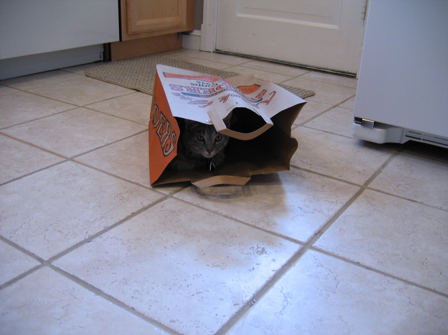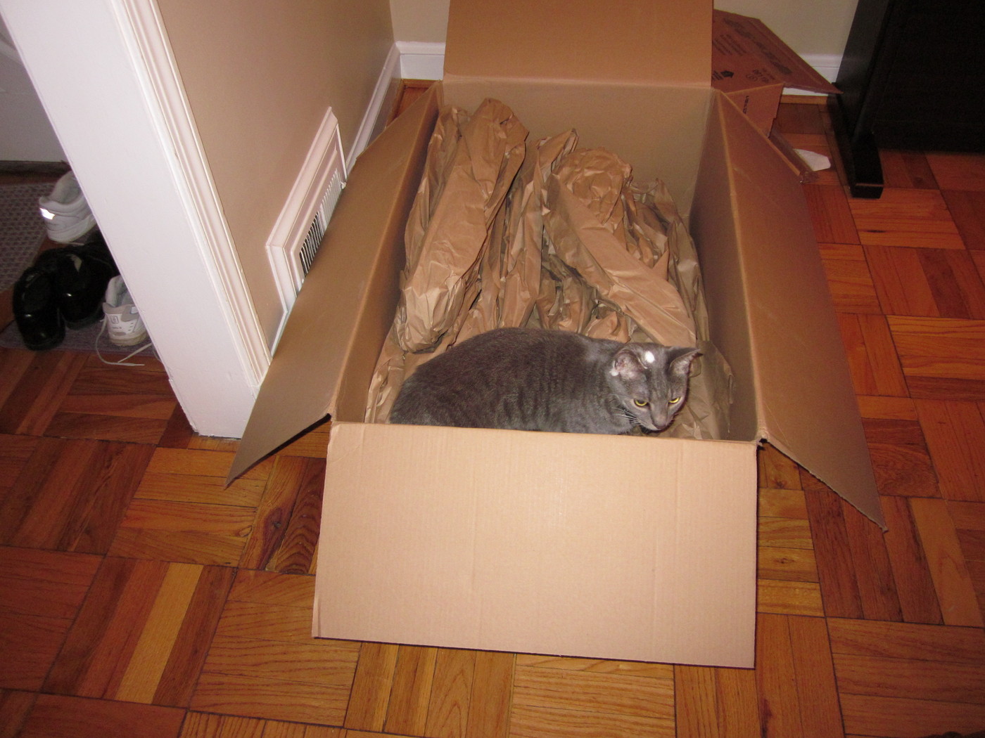 Electra sticking her paw into her box