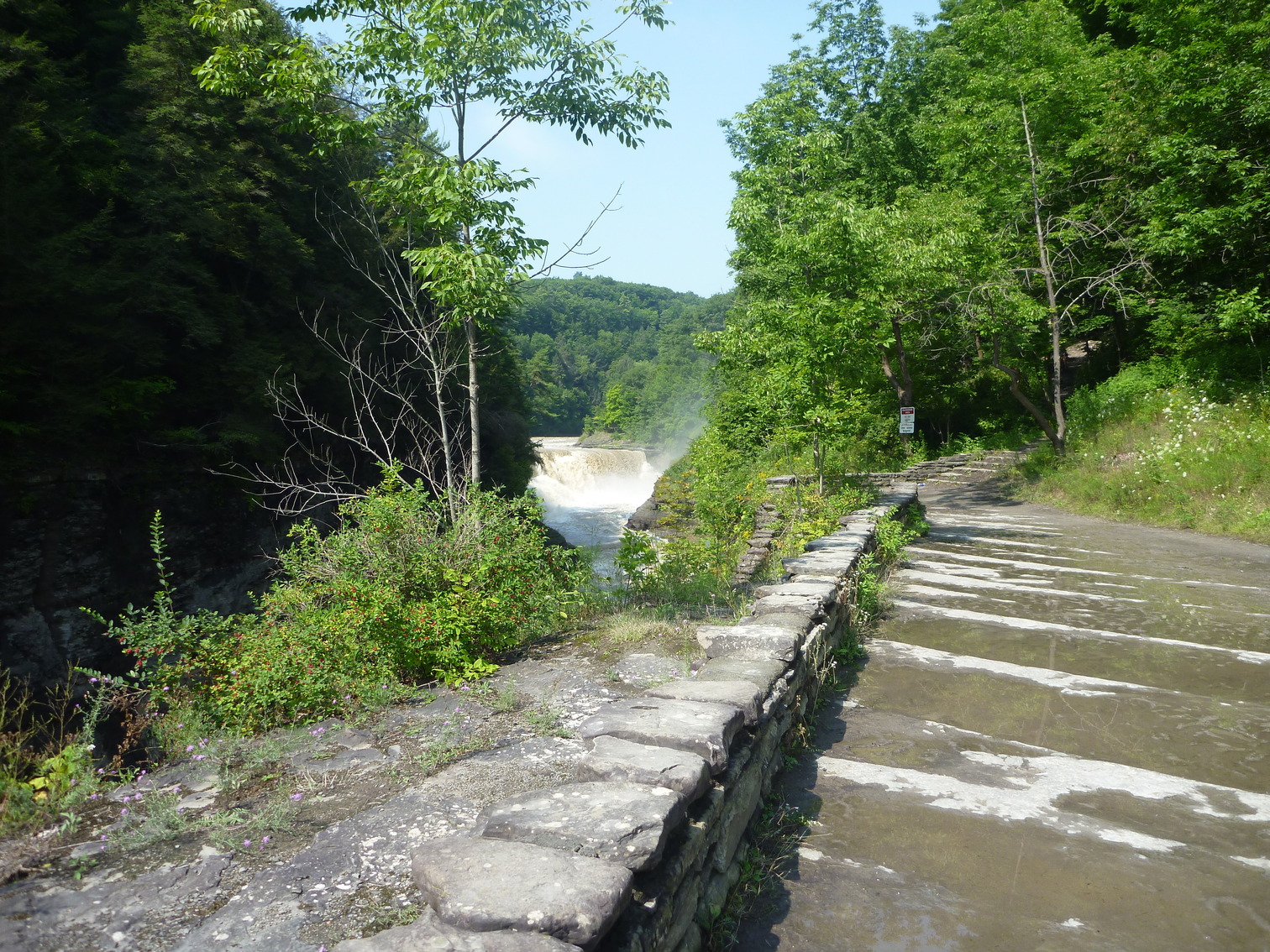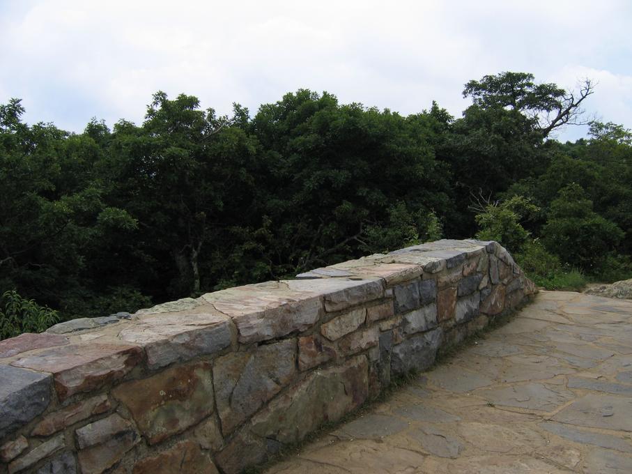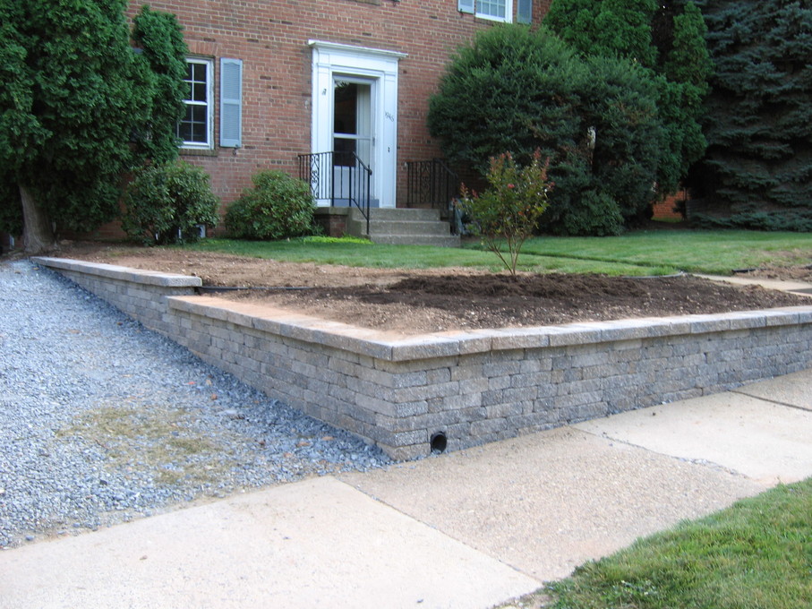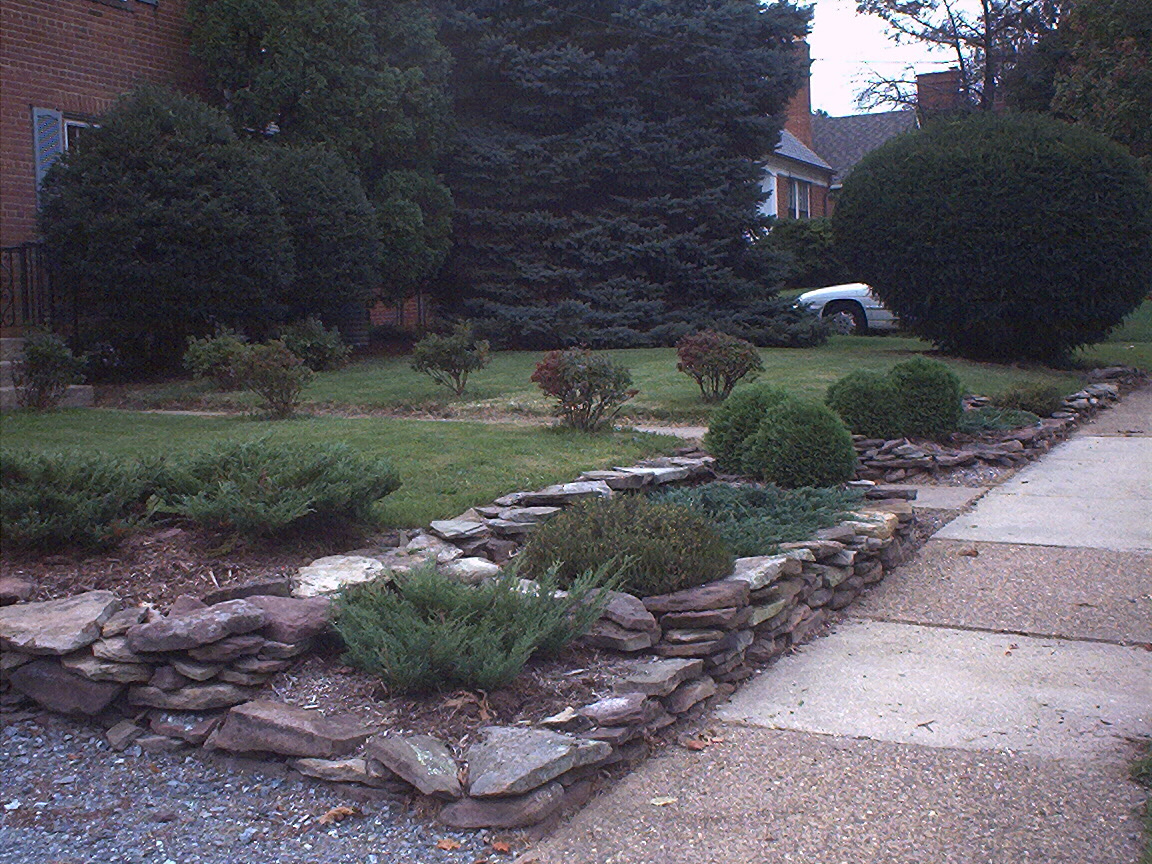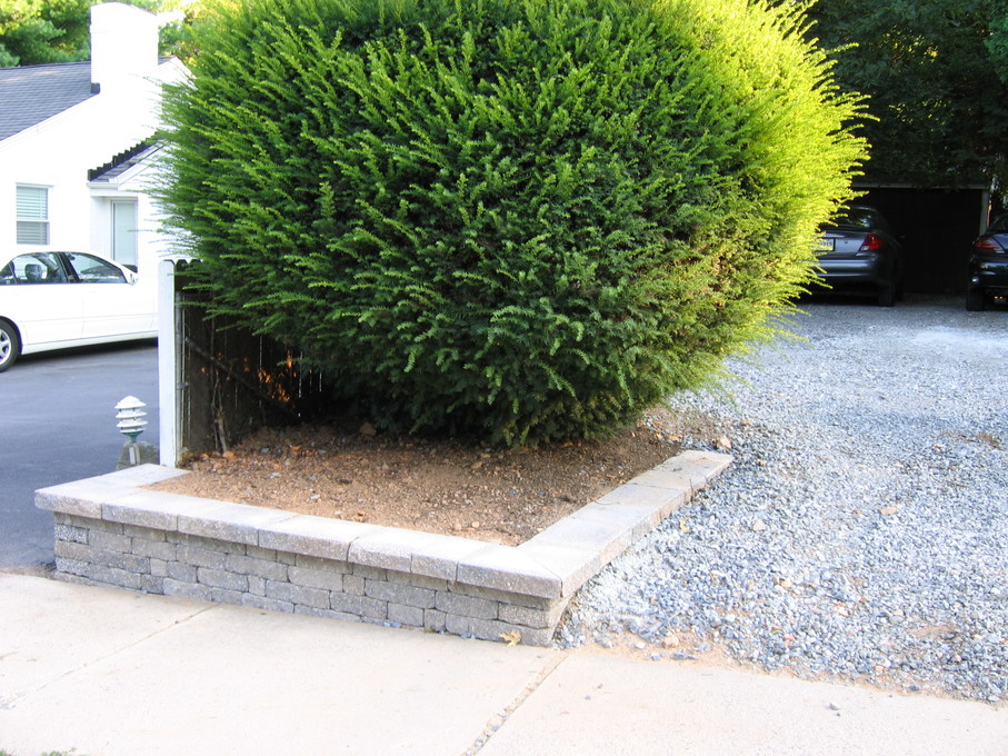 Bush at end of driveway with new stone walls.