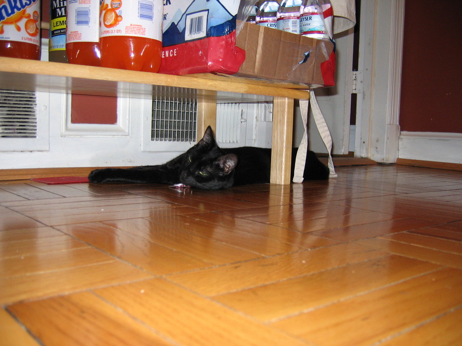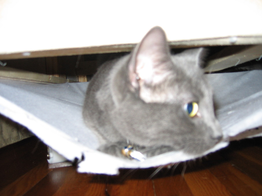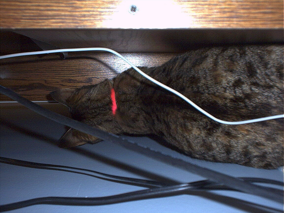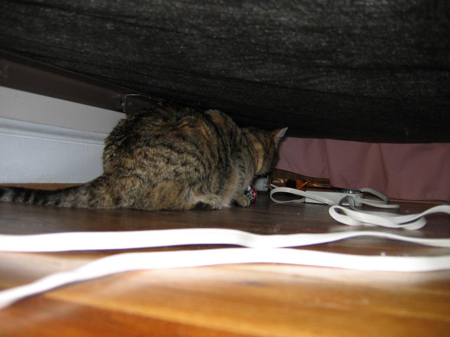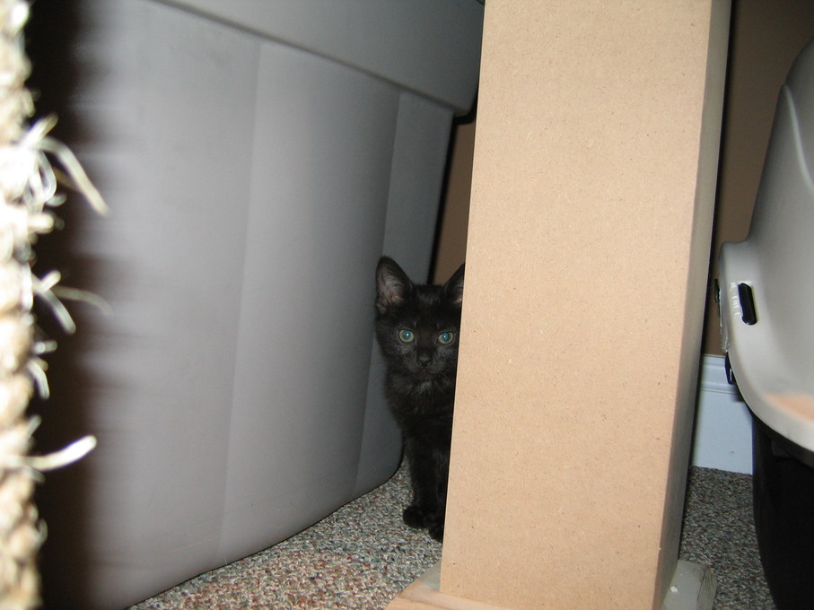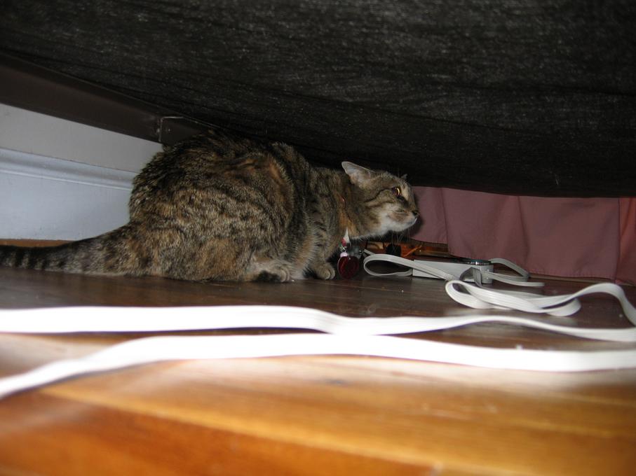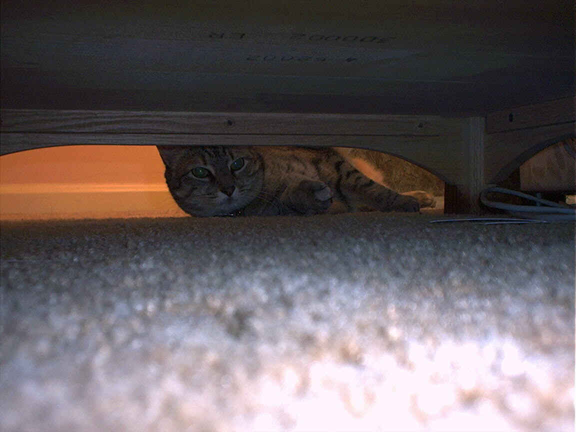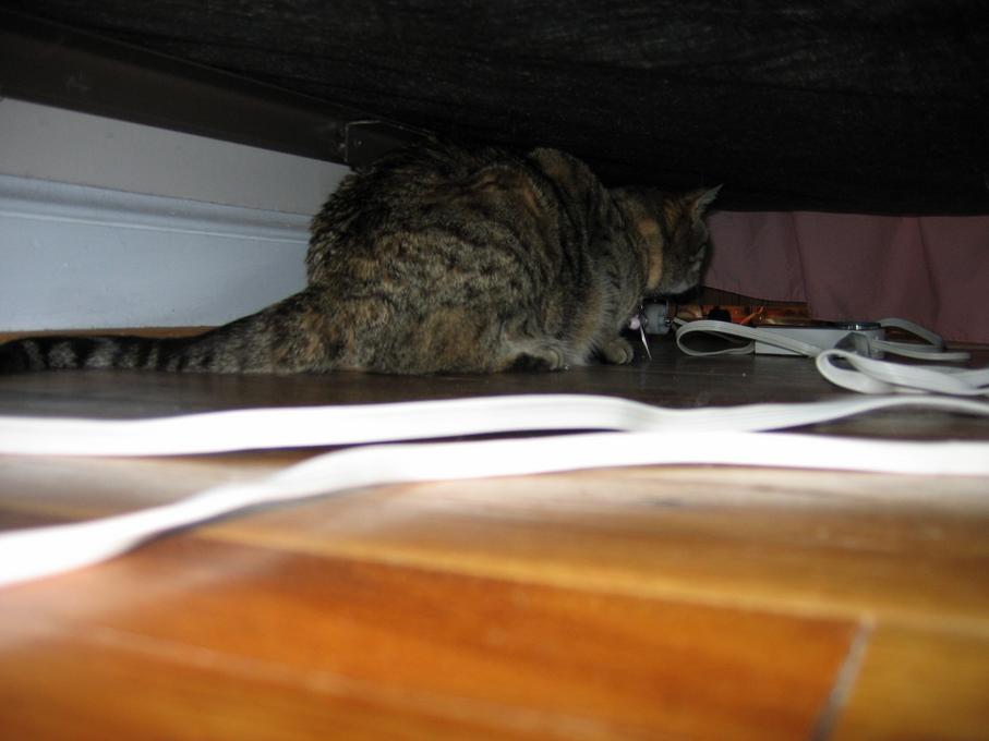 Electra hiding behind the desk (should be rotated 90 degrees clockwise)