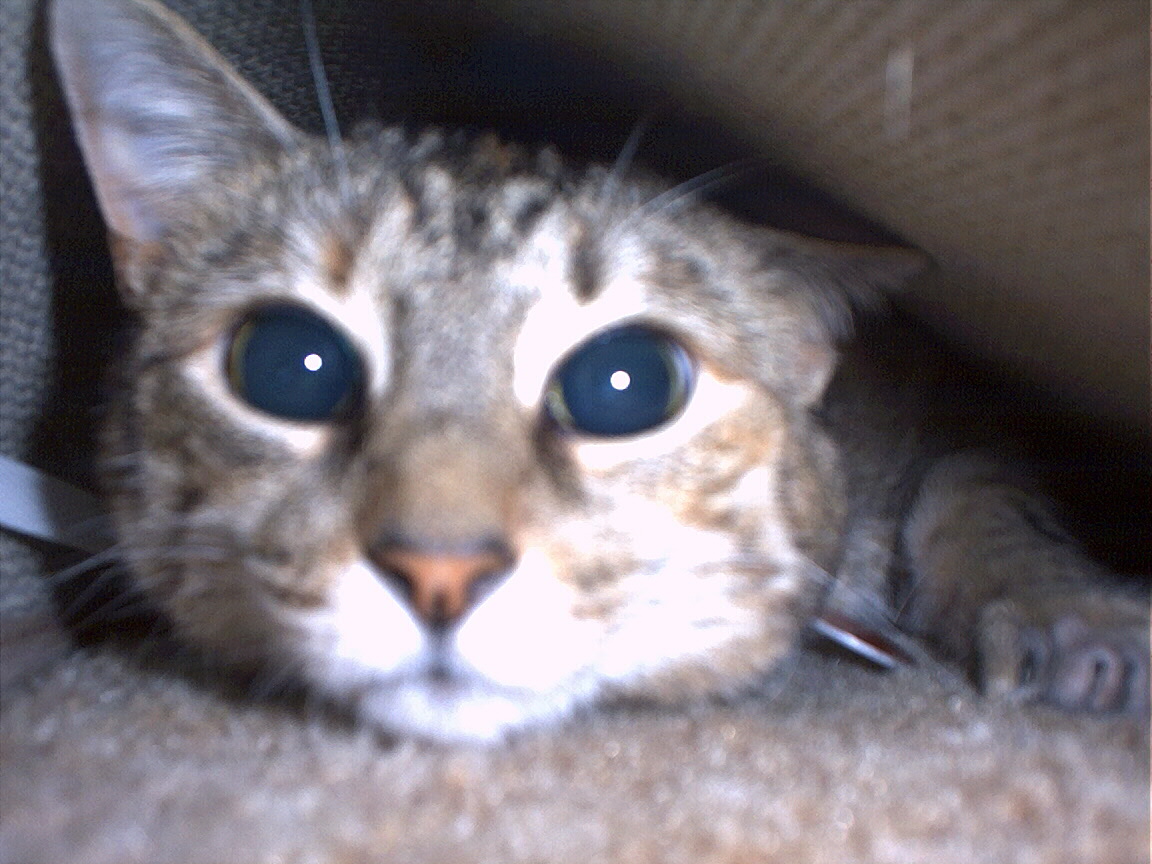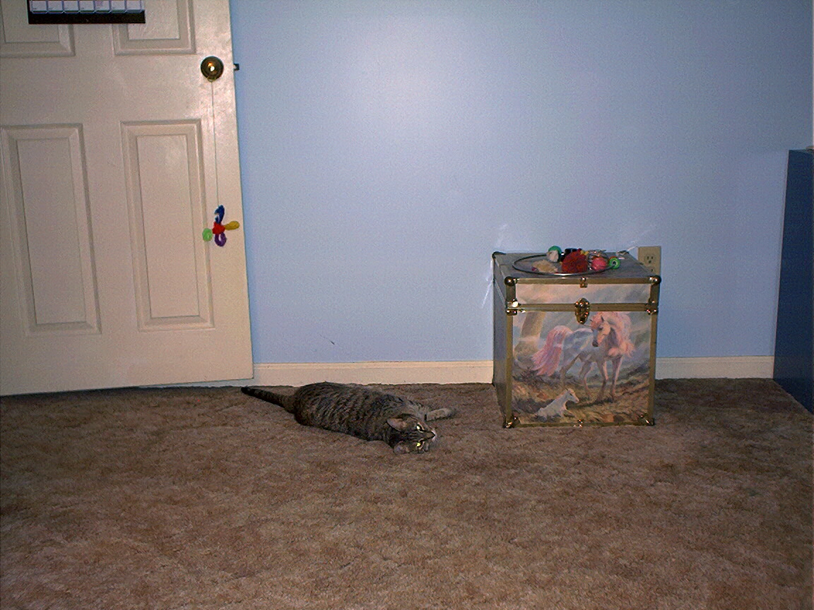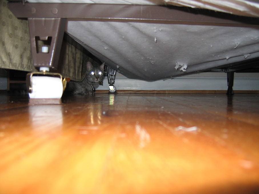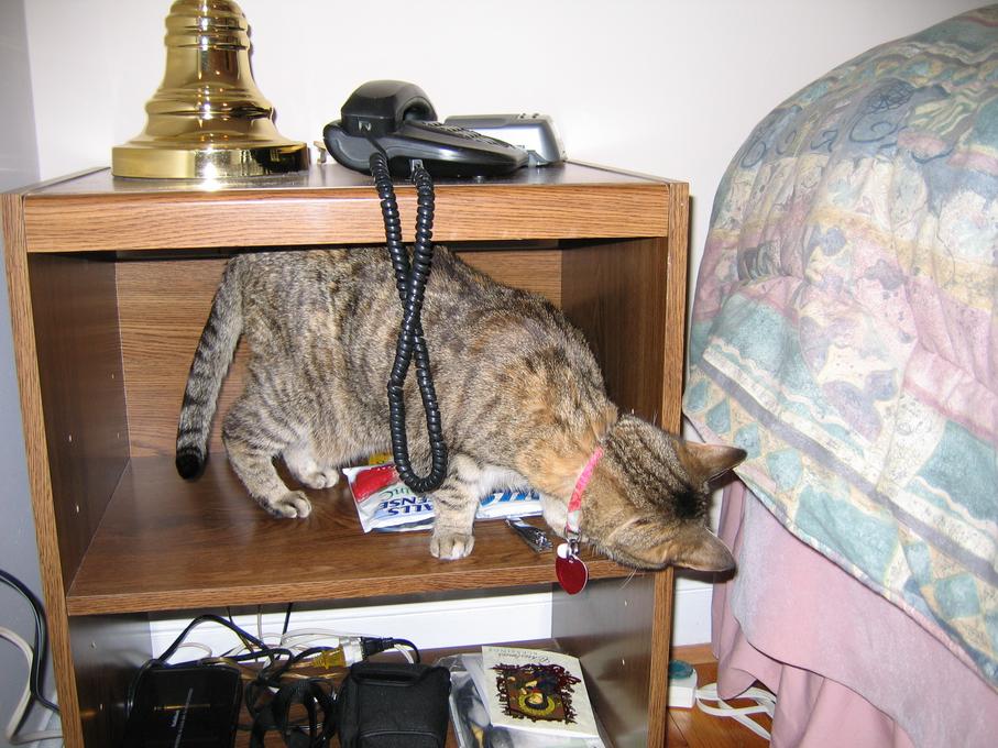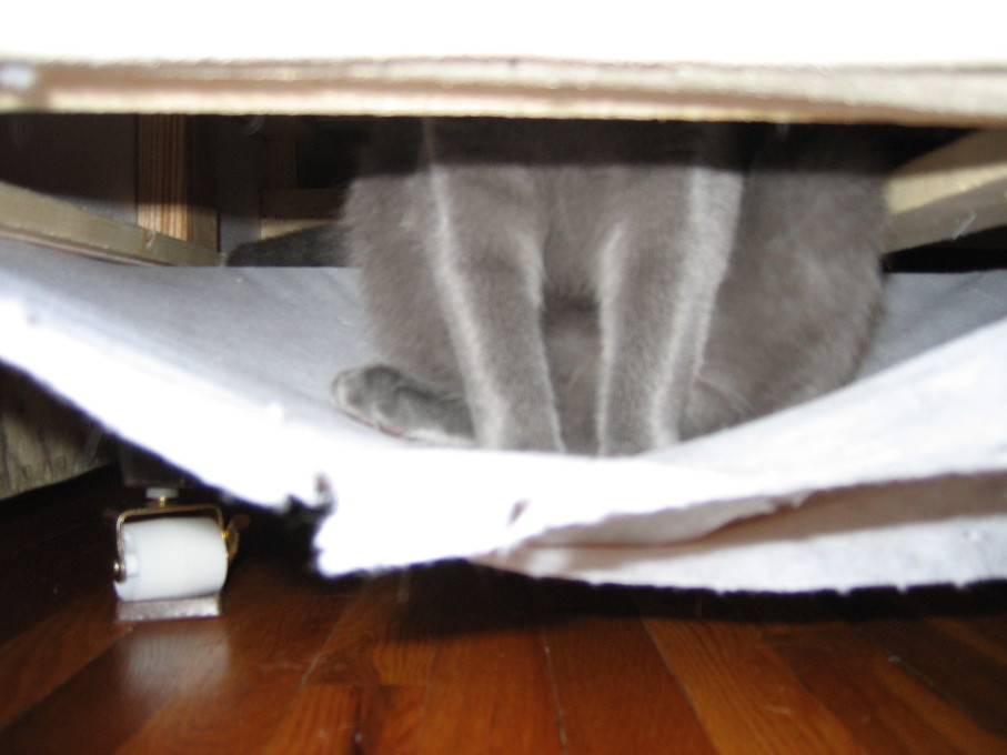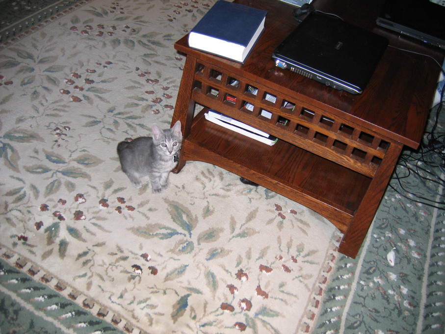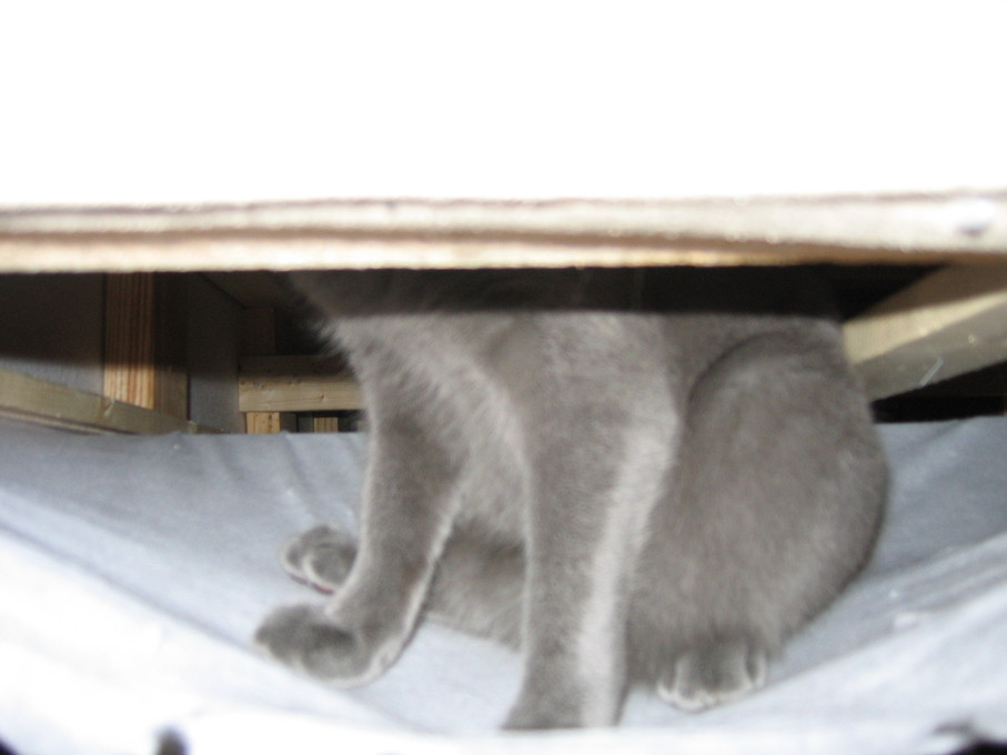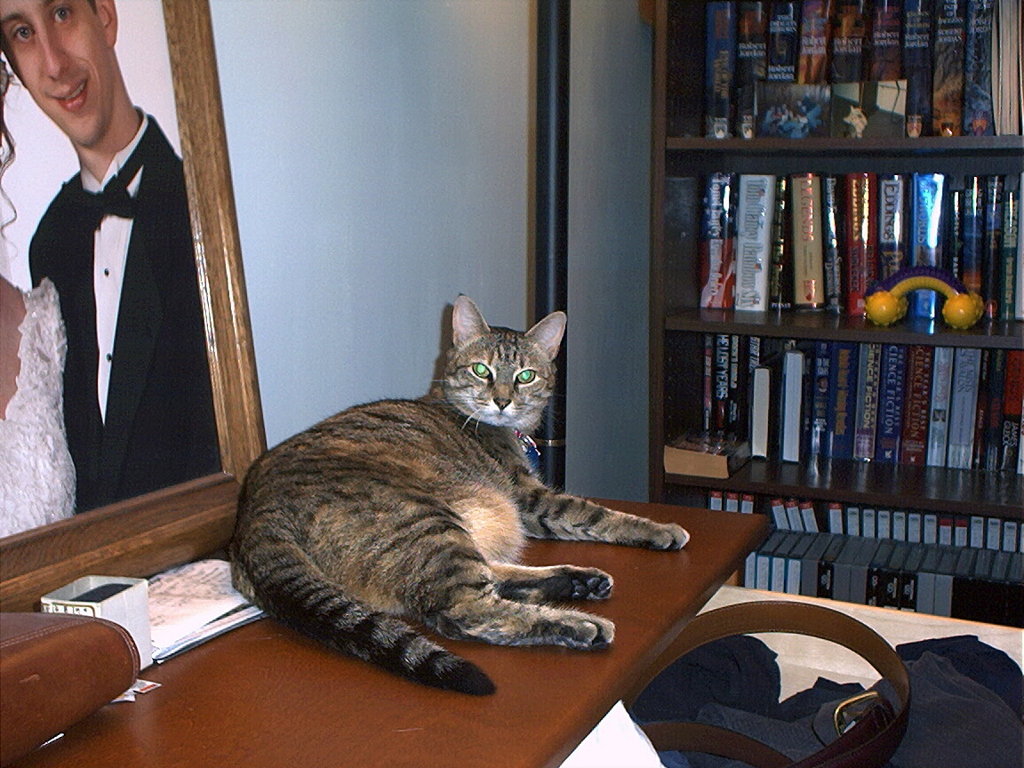 Electra hiding behind the desk (should be rotated 90 degrees clockwise)