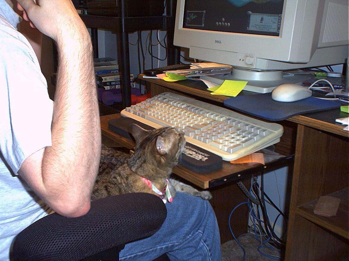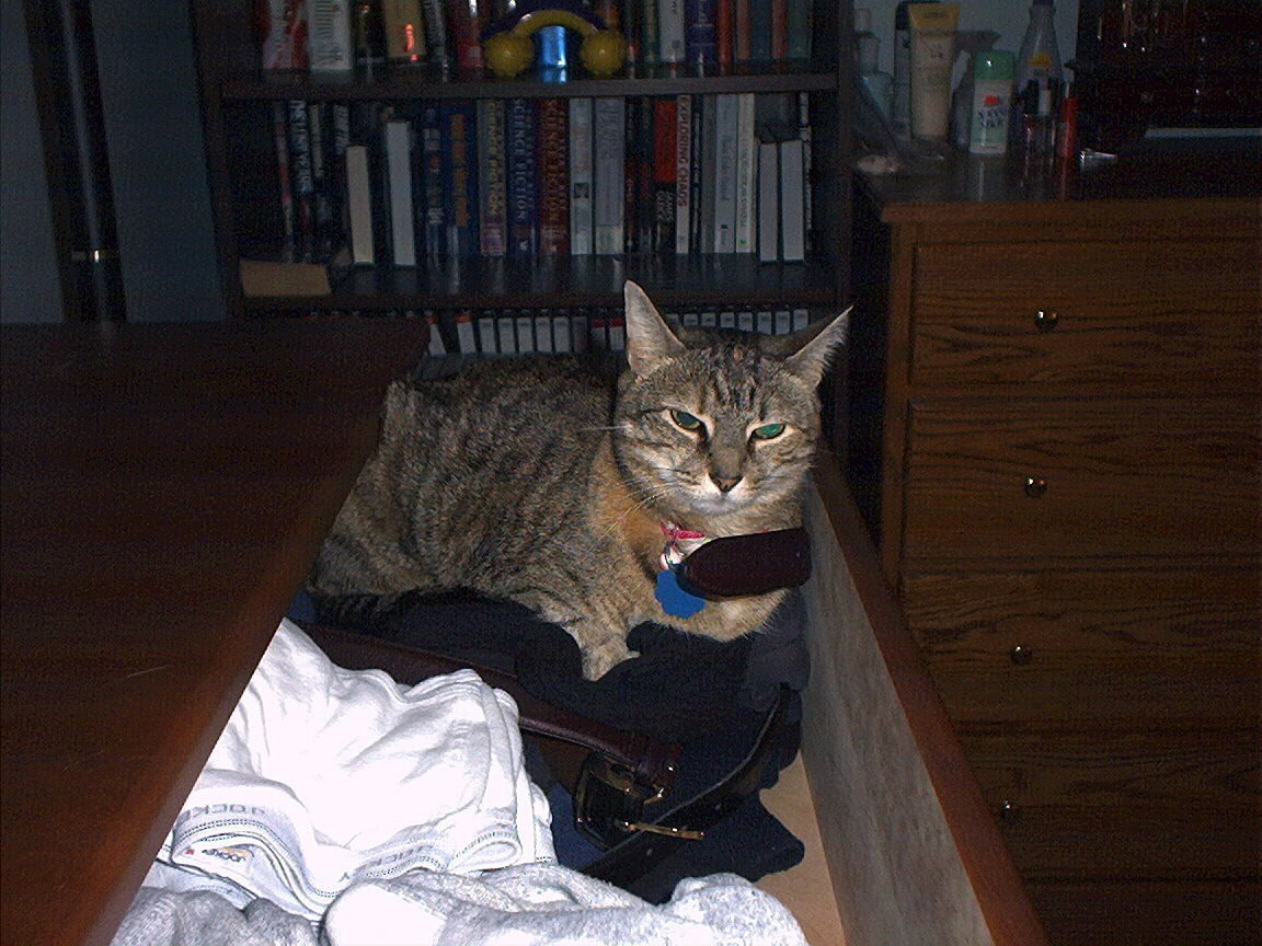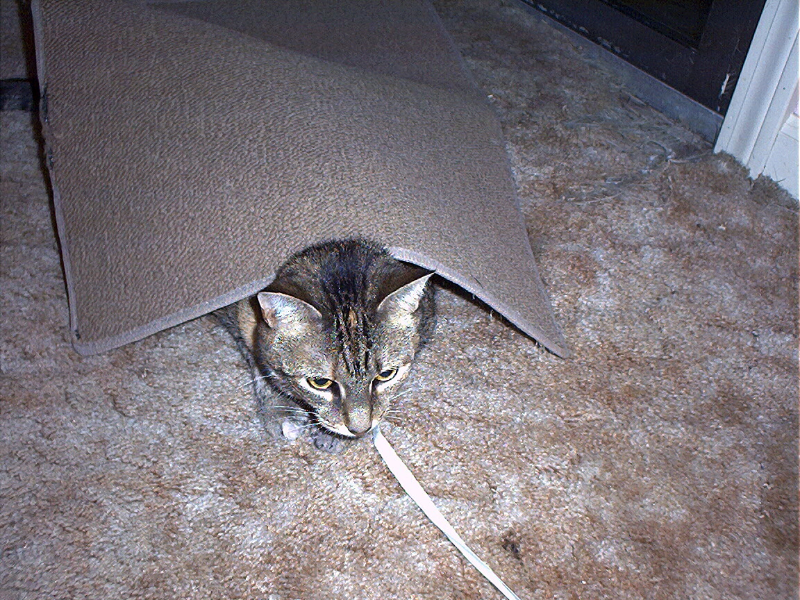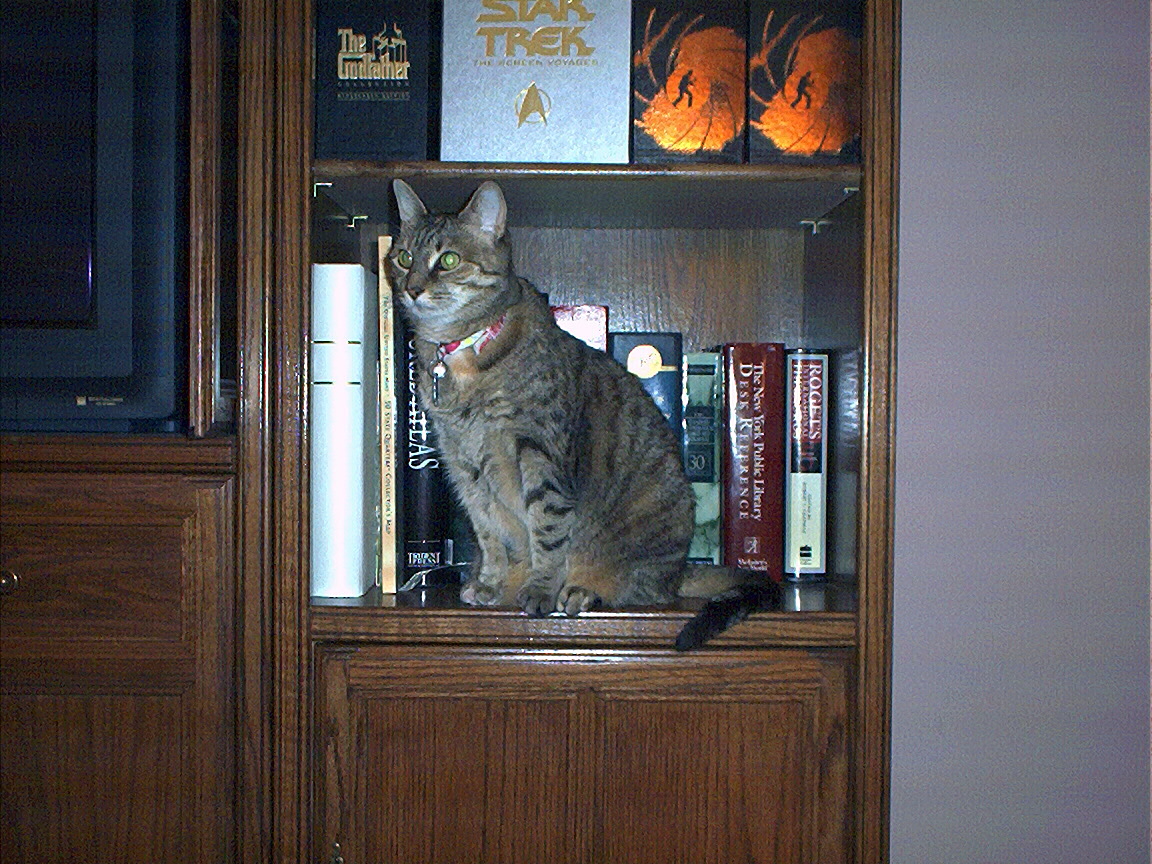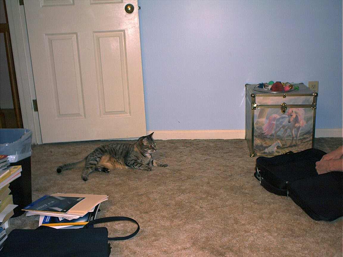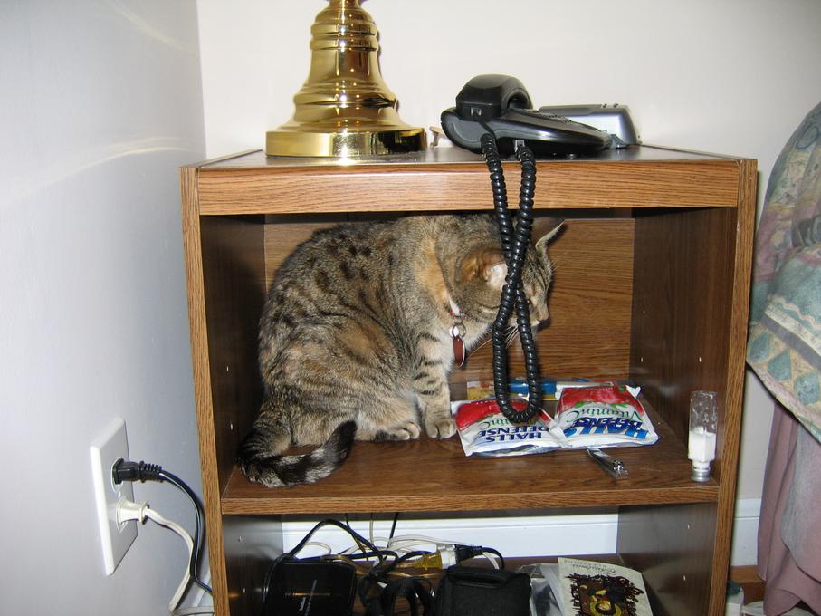 Electra hiding behind the desk (should be rotated 90 degrees clockwise)