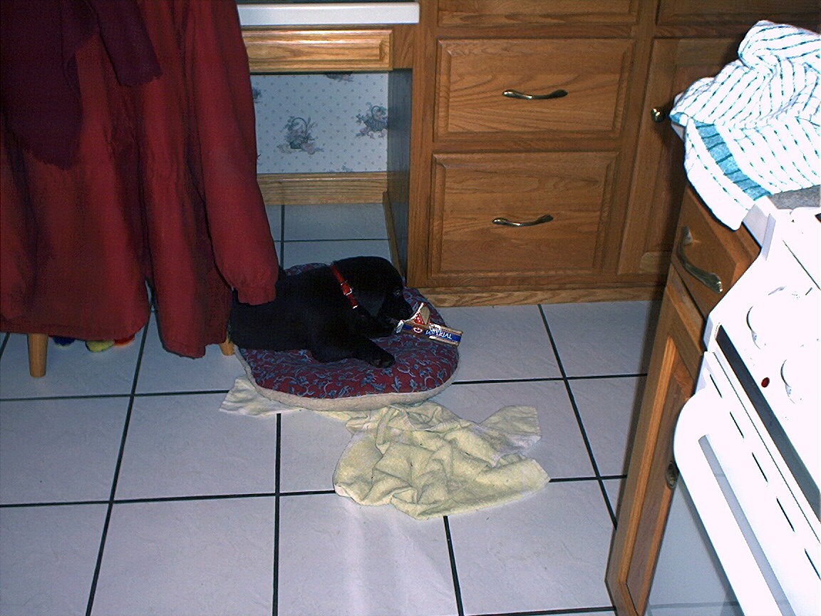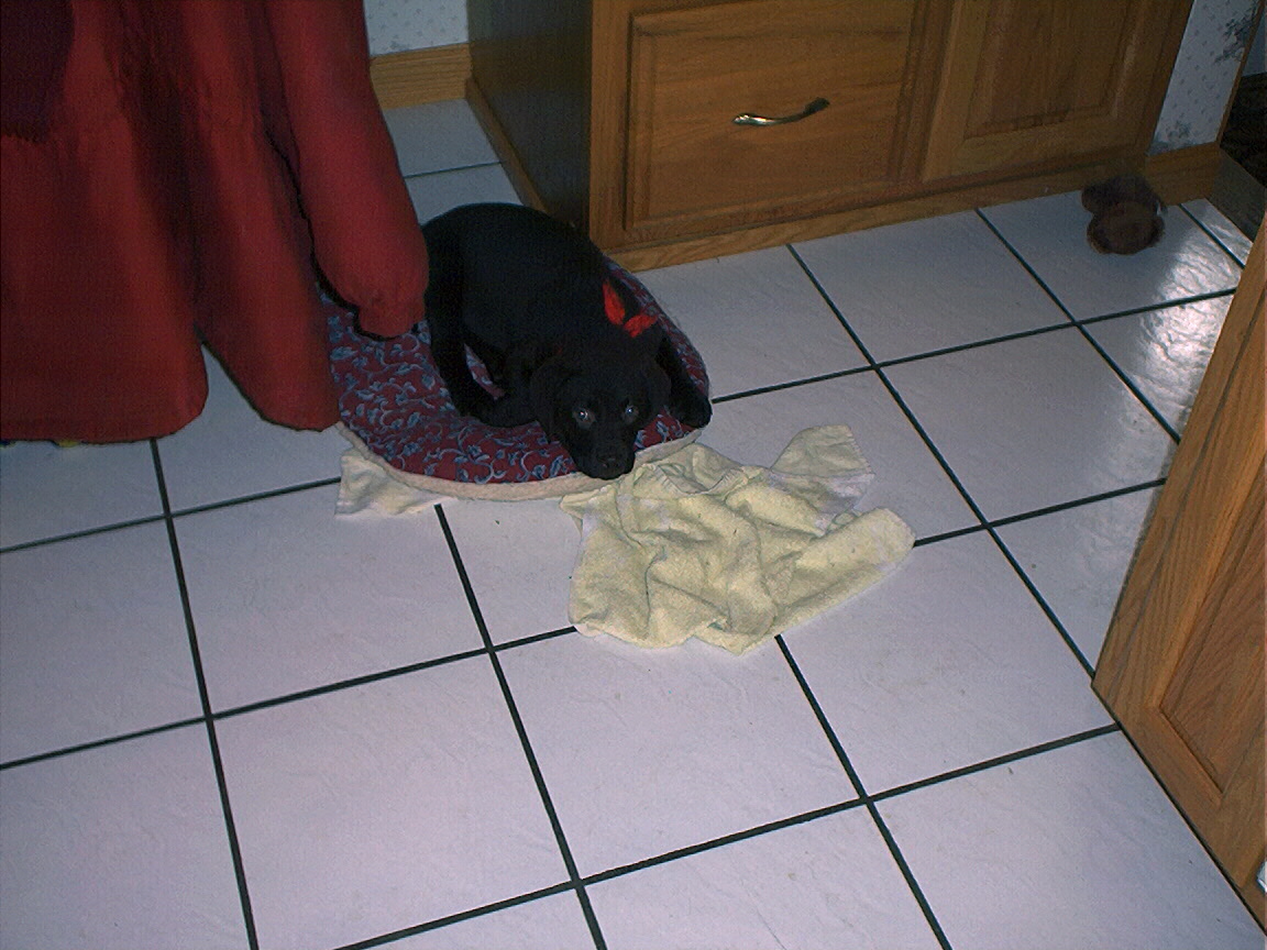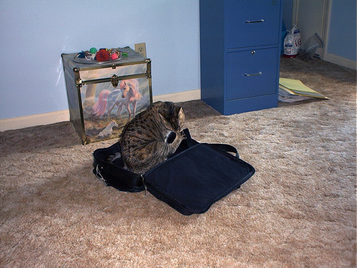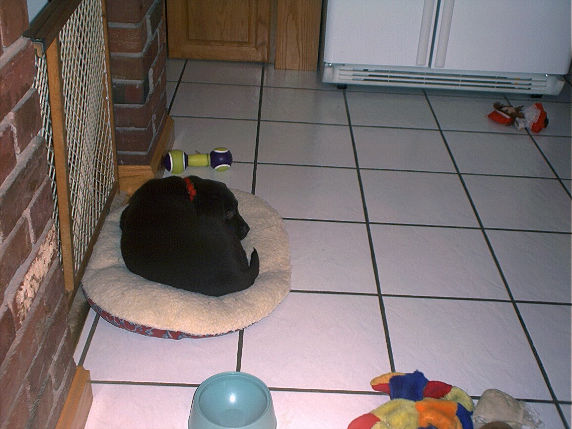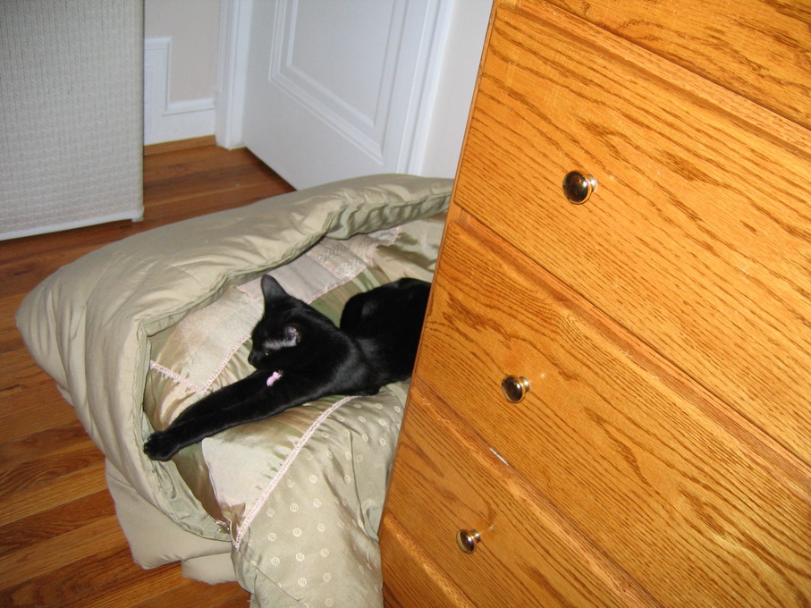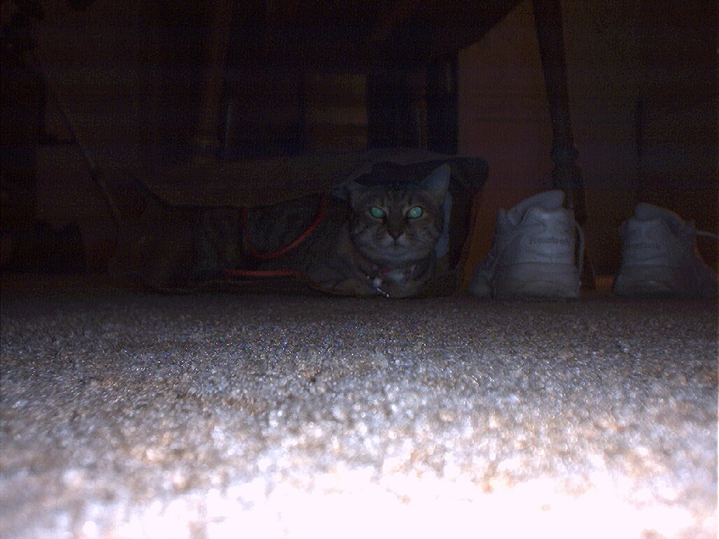 Electra hiding behind the desk (should be rotated 90 degrees clockwise)
