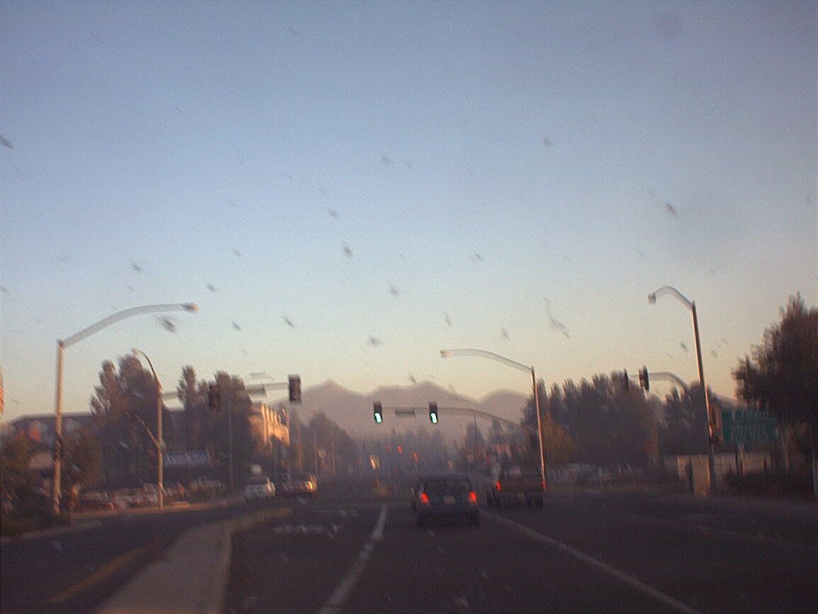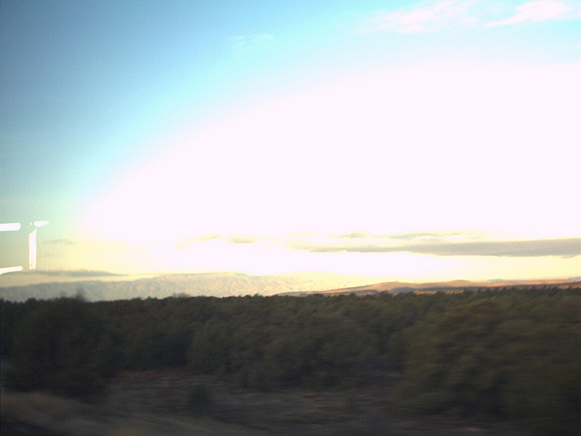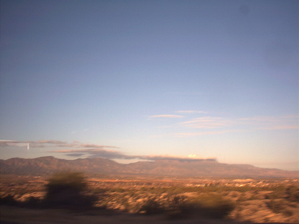 Sunrise and mountains outside of Flagstaff from bus