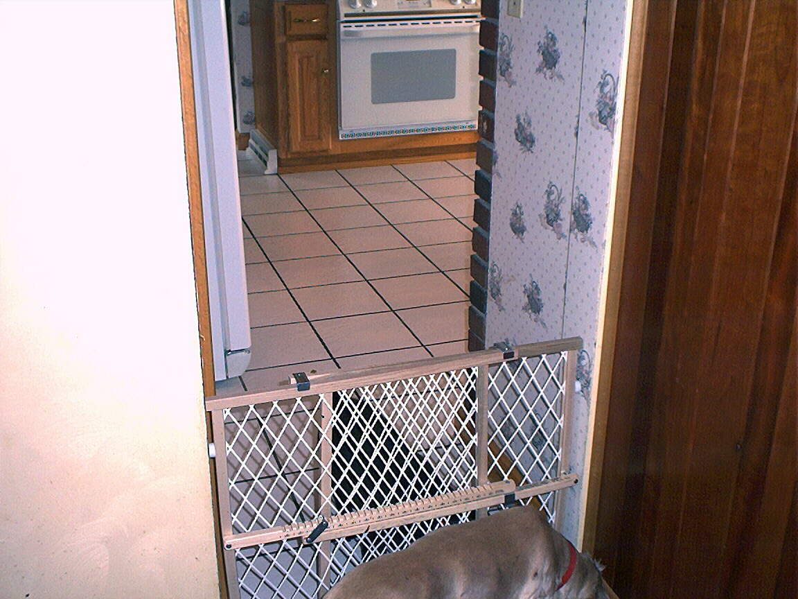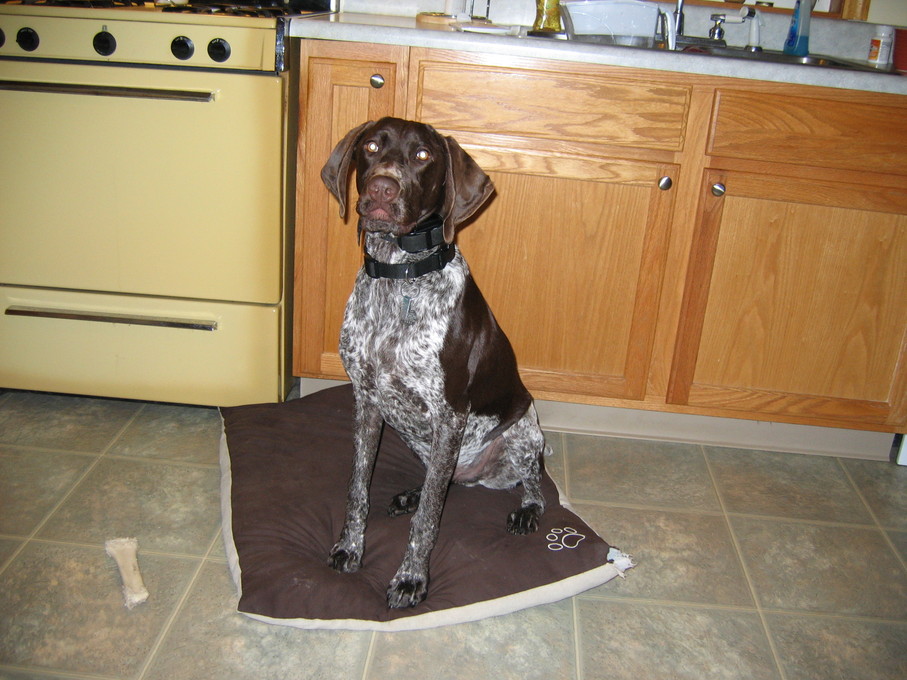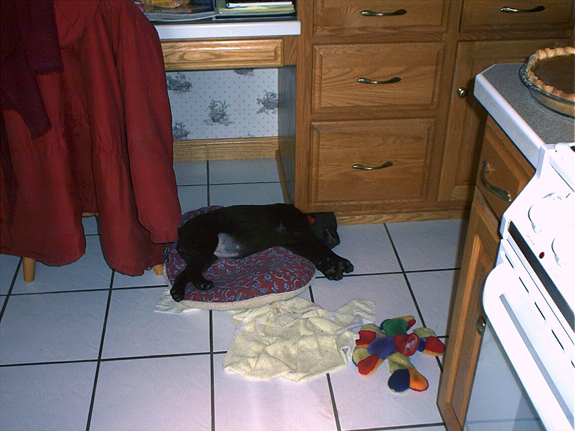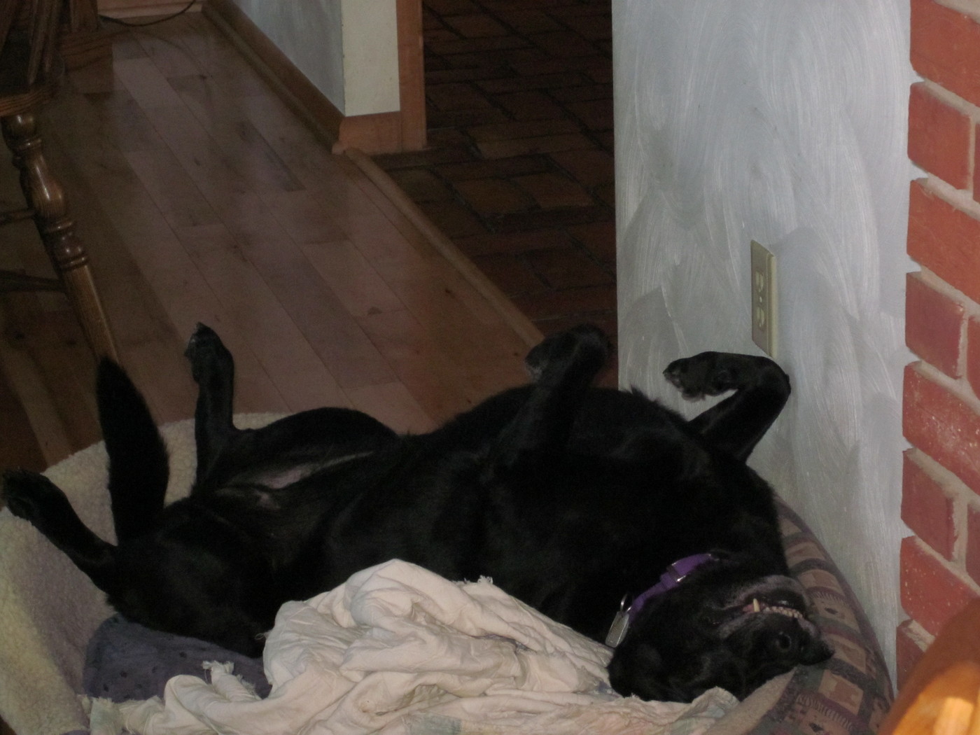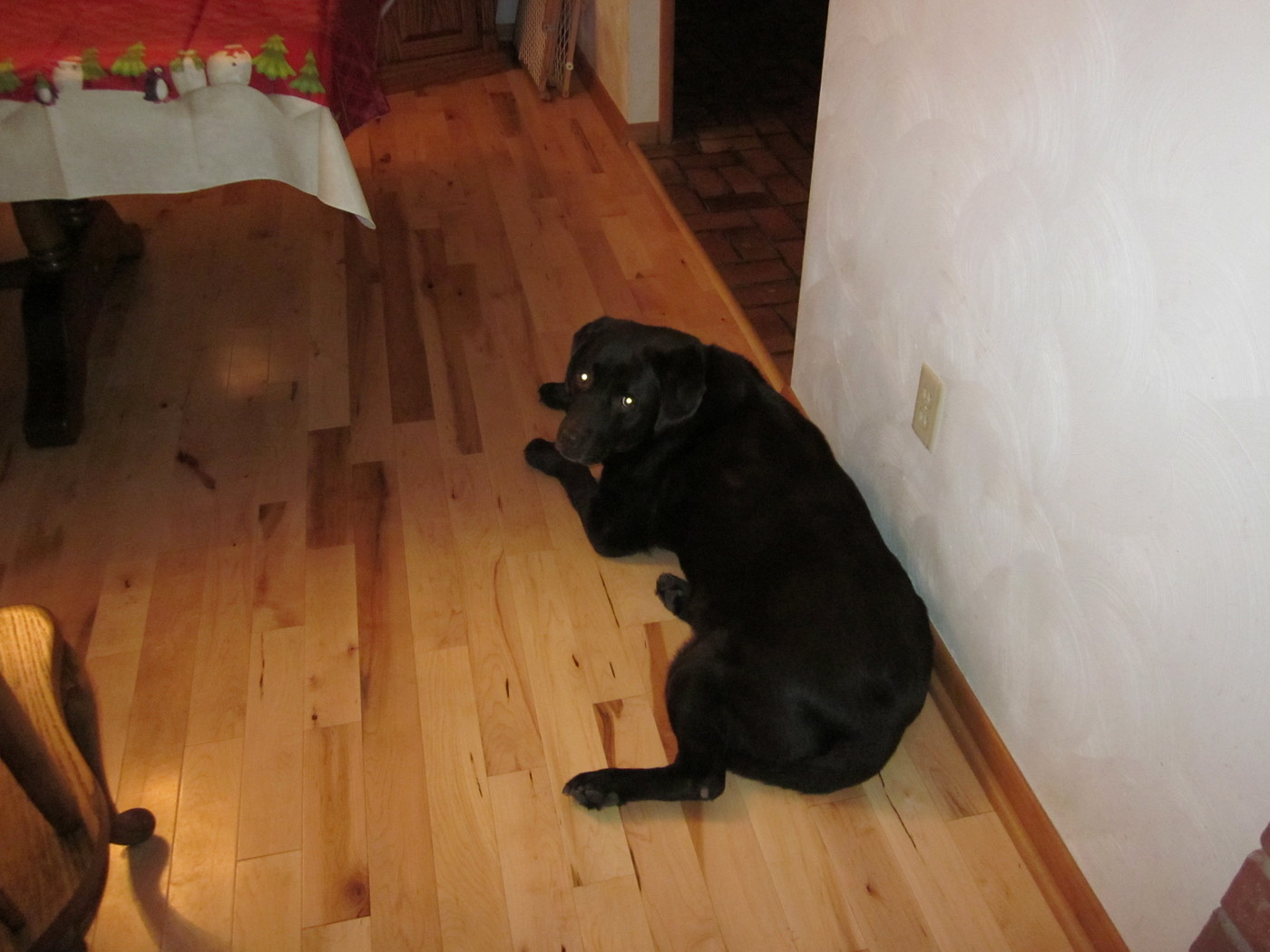 Electra laying on the dining room server