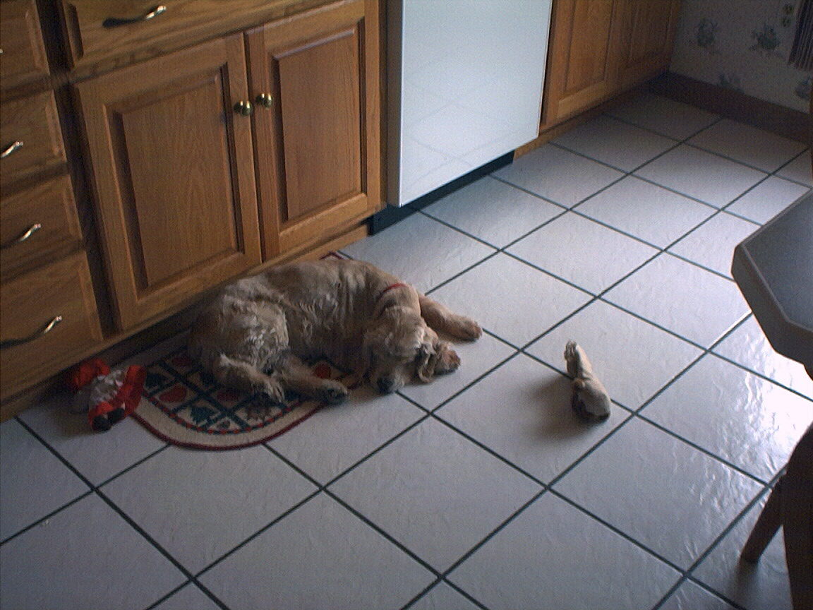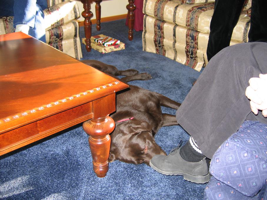 Electra sleeping almost underneath my leg