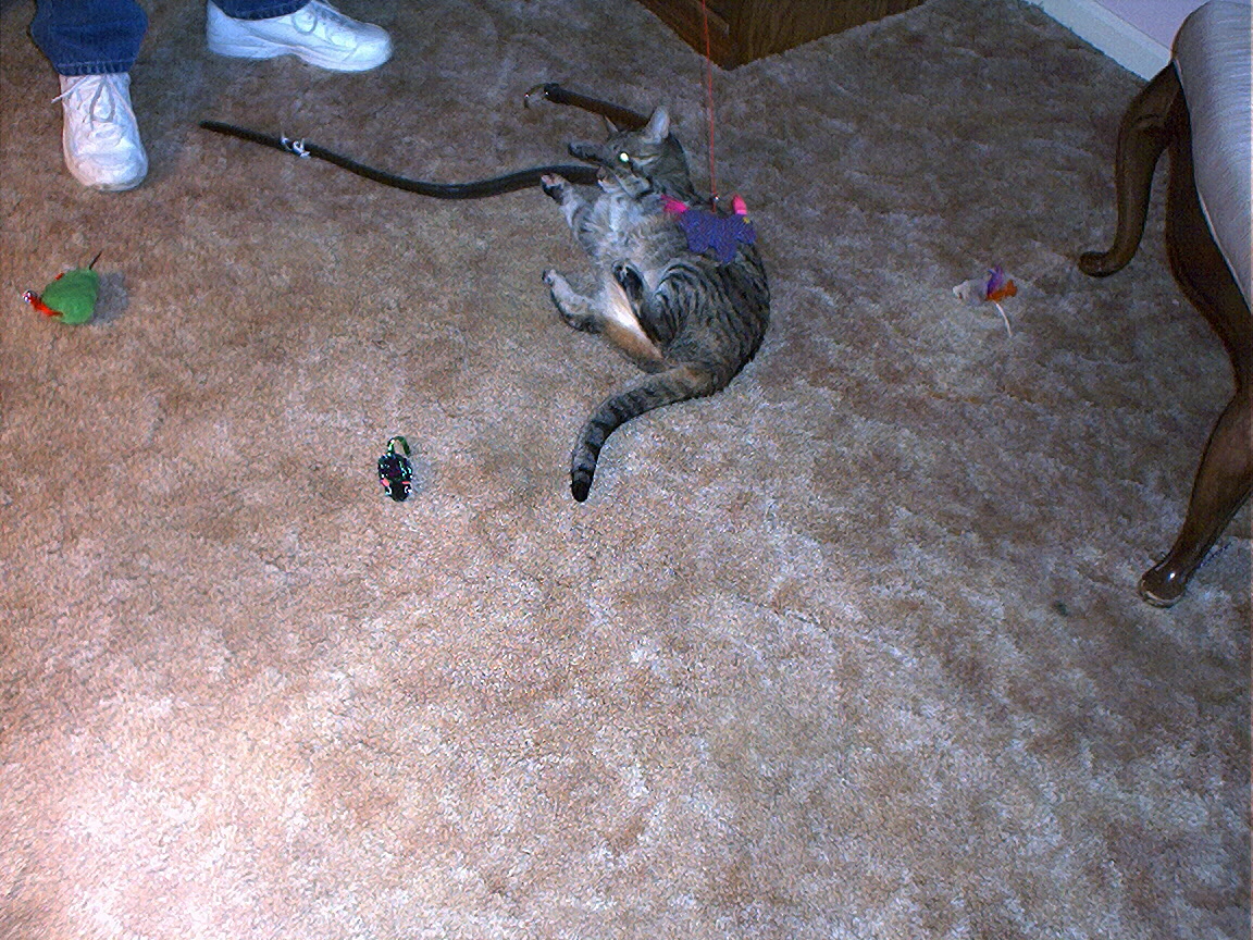 Electra being frisky, close up.