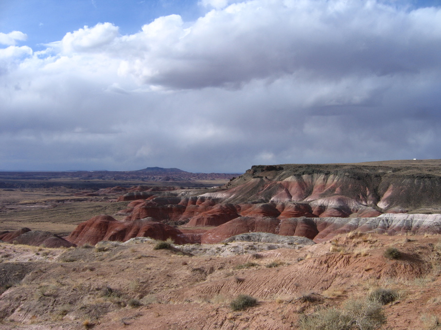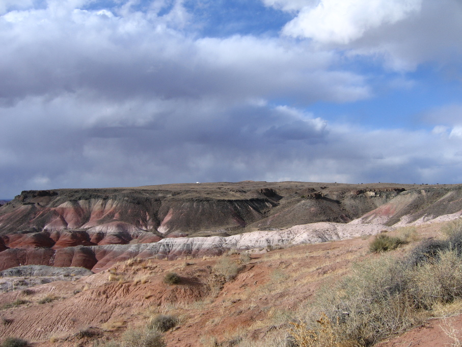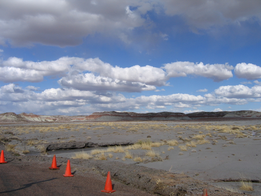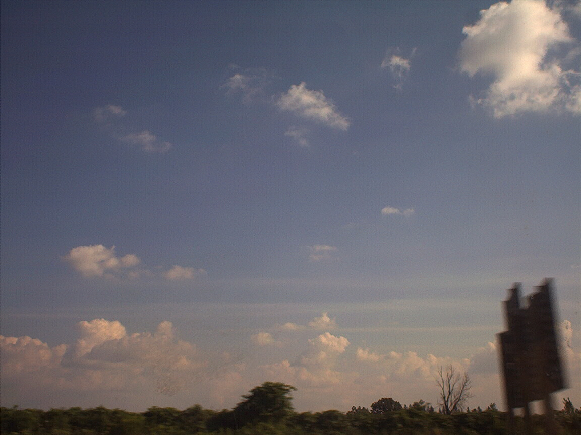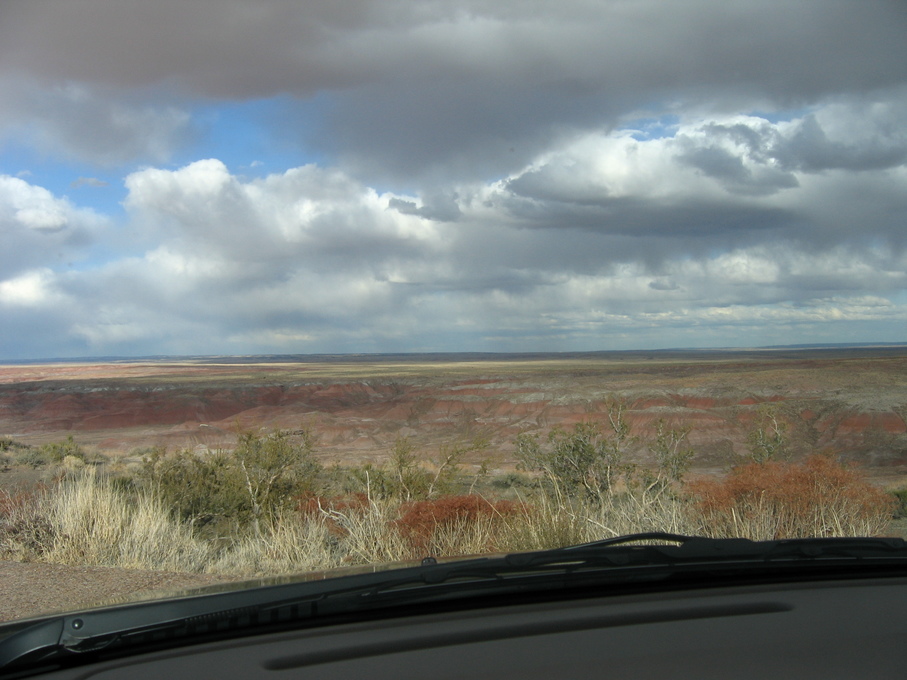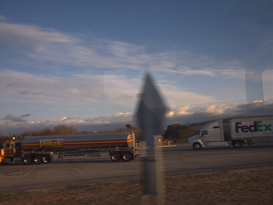 Cool clouds and trucks at rest stop outside of Flagstaff from bus