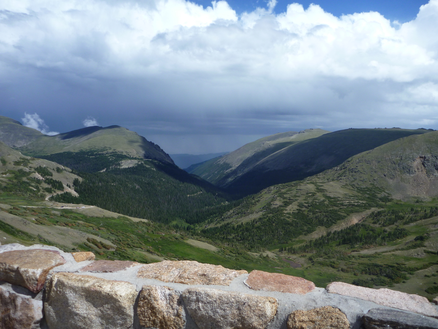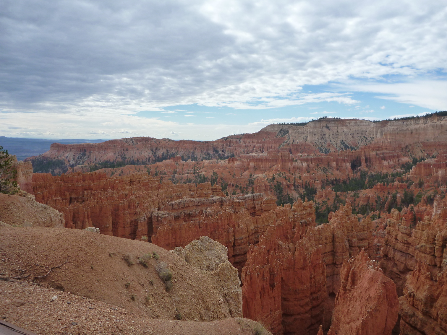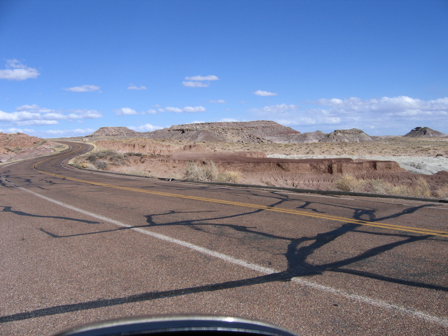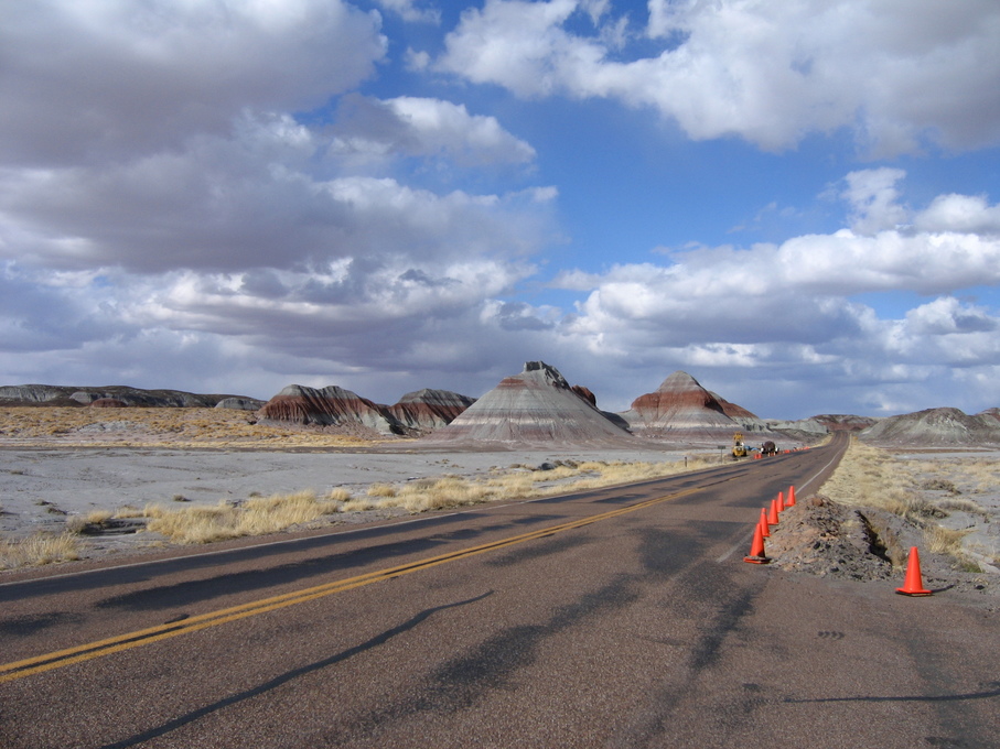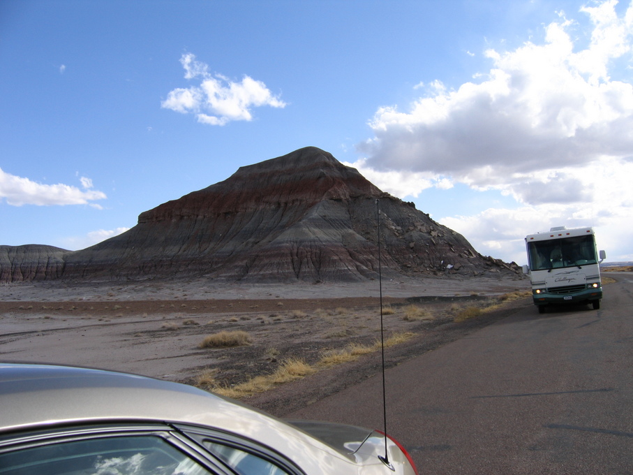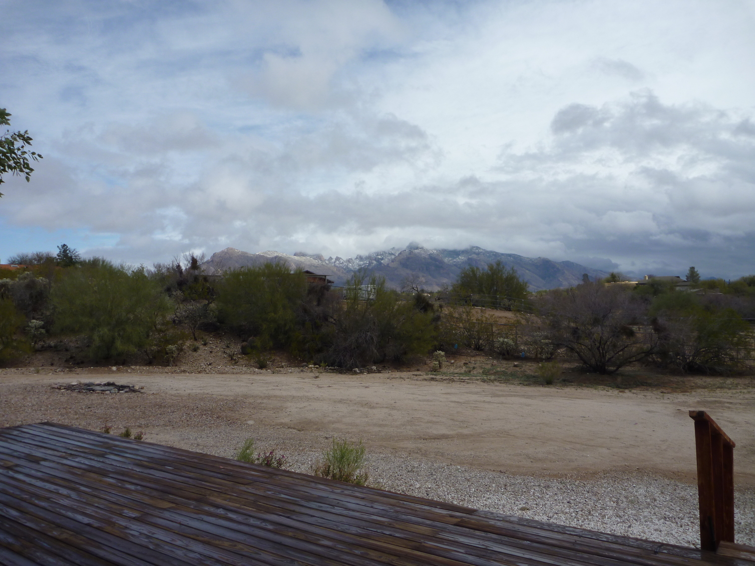 Cool clouds and trucks at rest stop outside of Flagstaff from bus