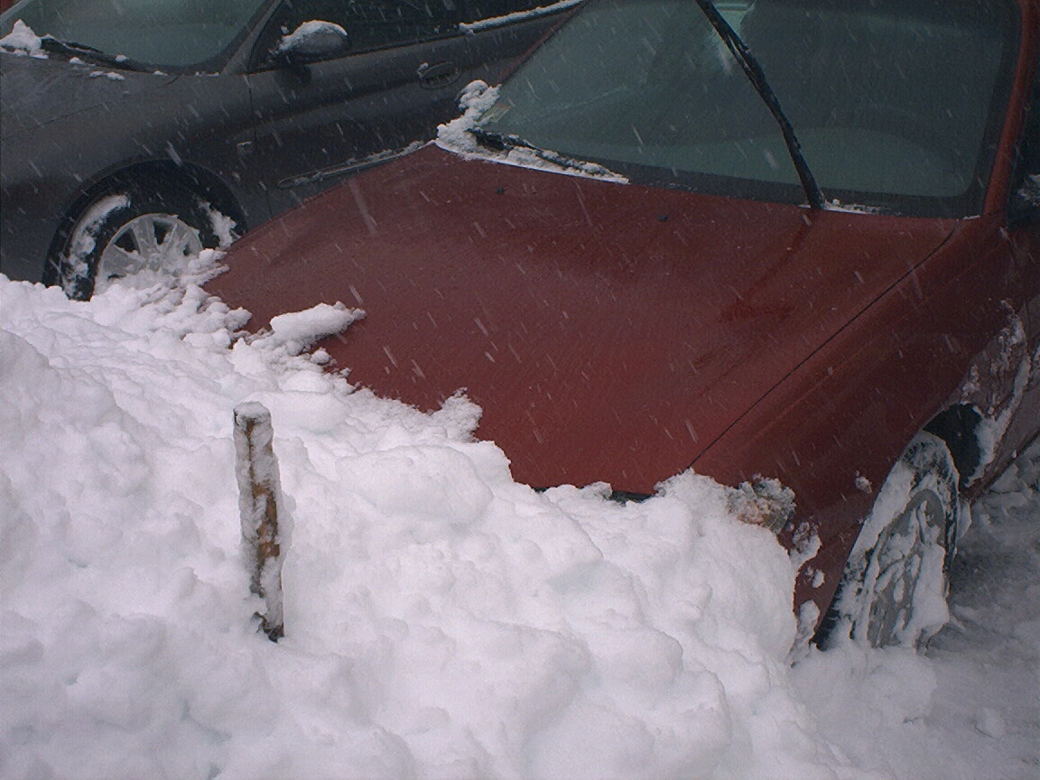 Bill's car with a snow "moustache"