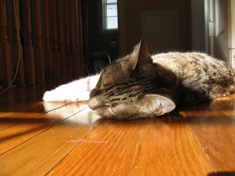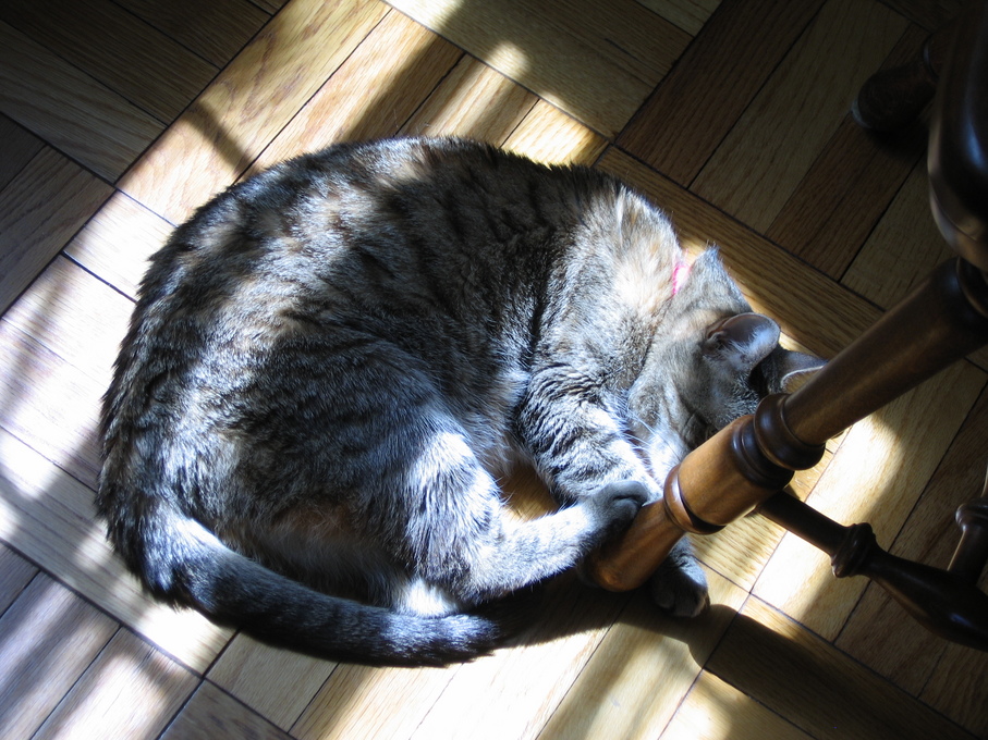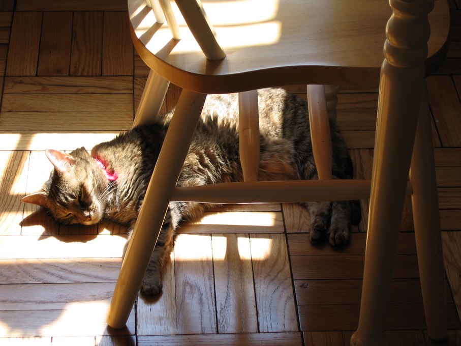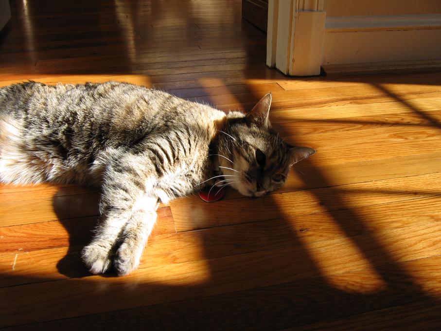 Electra laying in the Sun in the breakfast room.