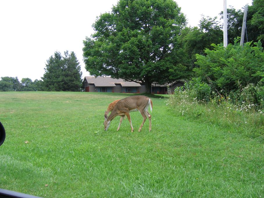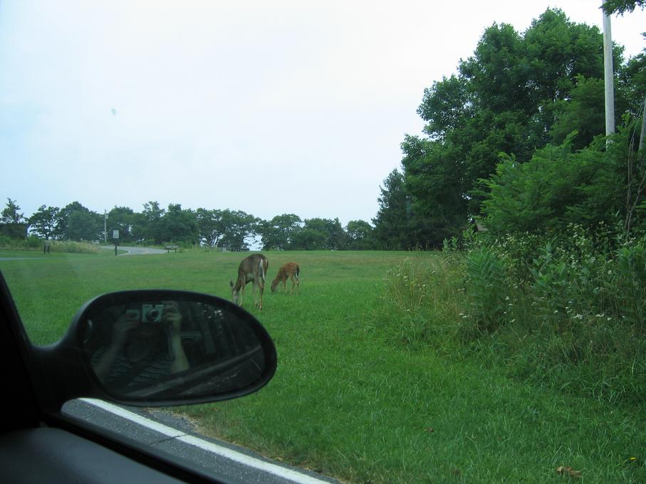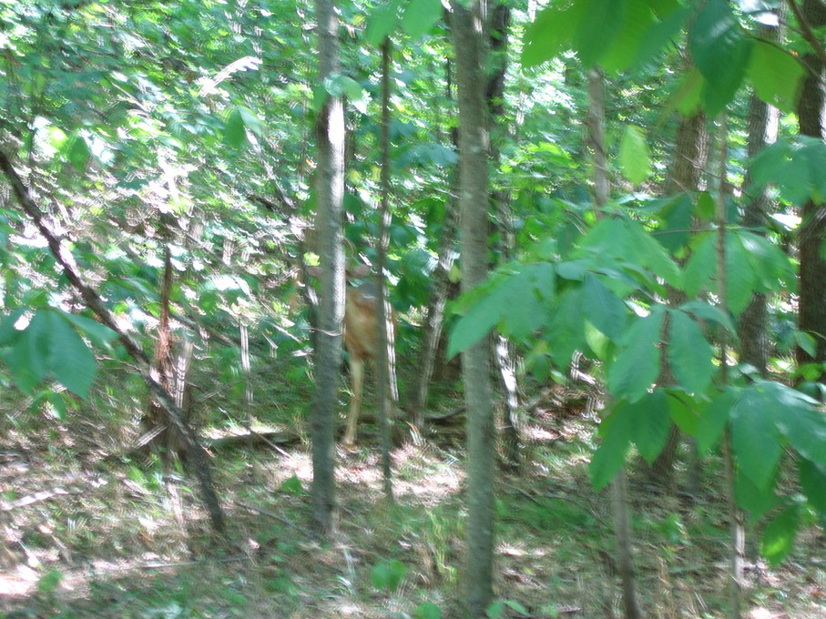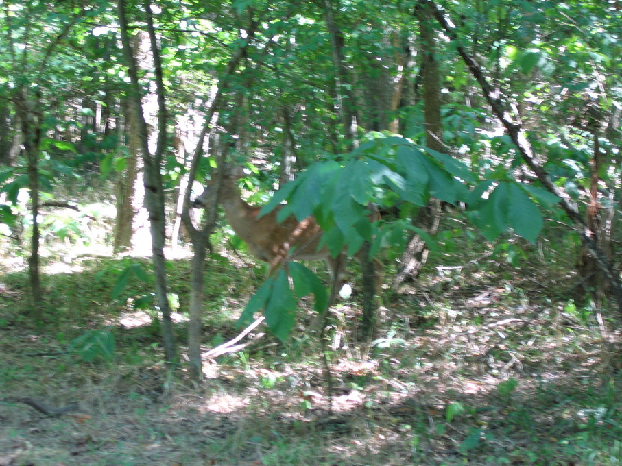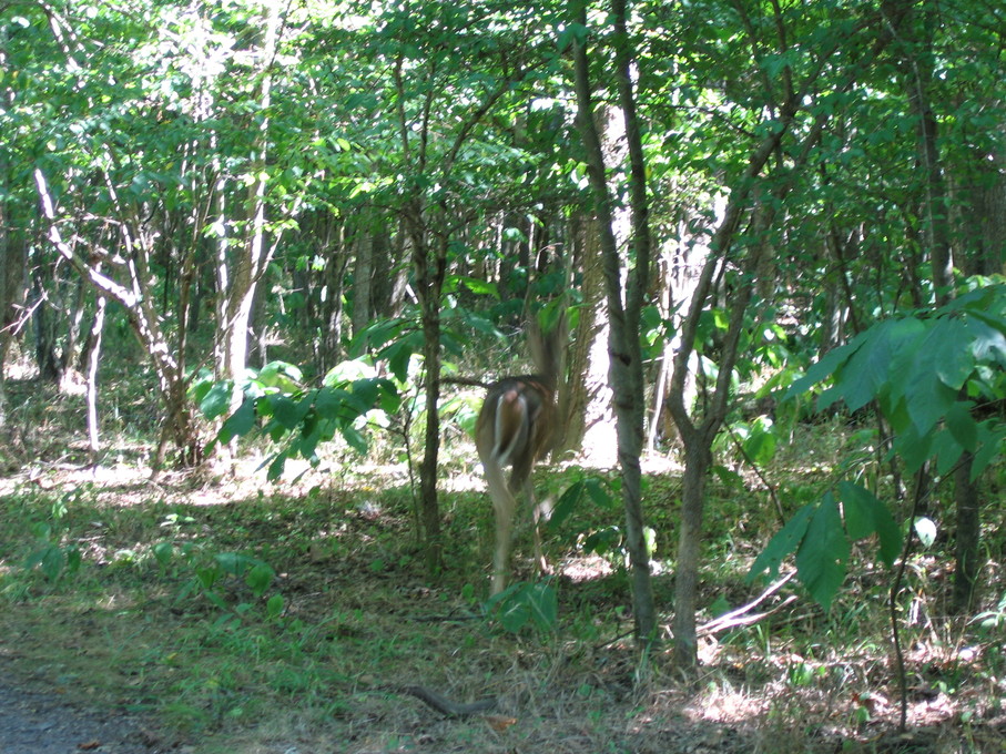 On September 1, 2007, Bill and I went to Manassas National Battlefield and walked the Battle of First Manassas trail. We saw a deer, which came very close to us. It was a young buck, with velvet still on its antlers. Blurry deer. Another picture, less blurry. Picture of its butt.