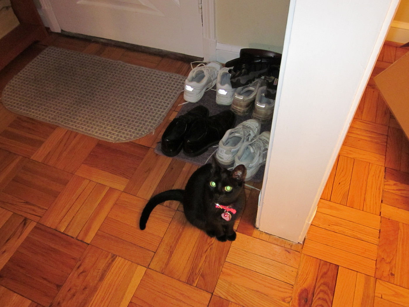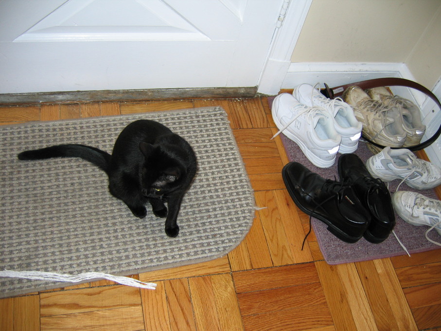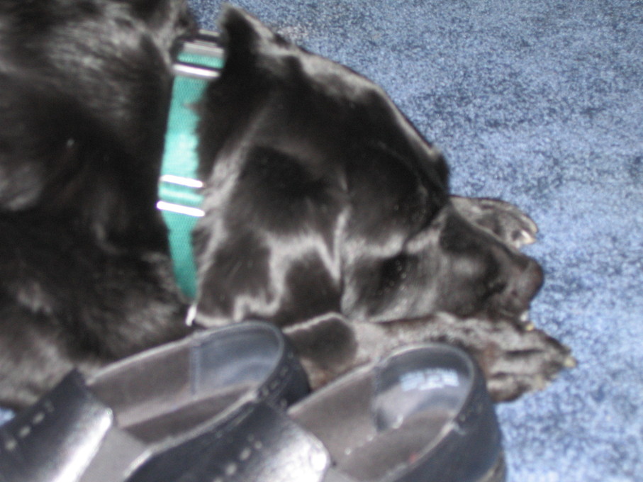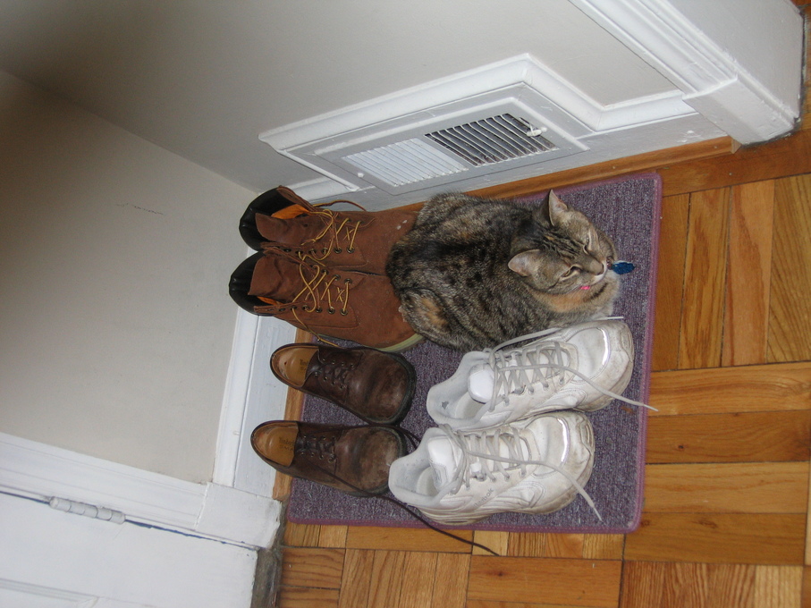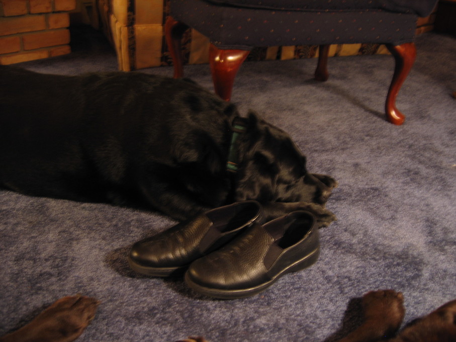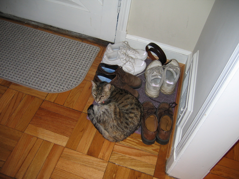 Electra curled up with our shoes.