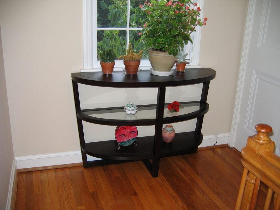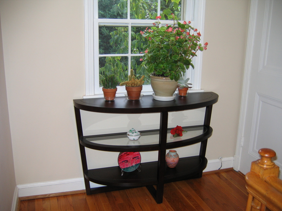 Plants on new console table in second floor hallway.
