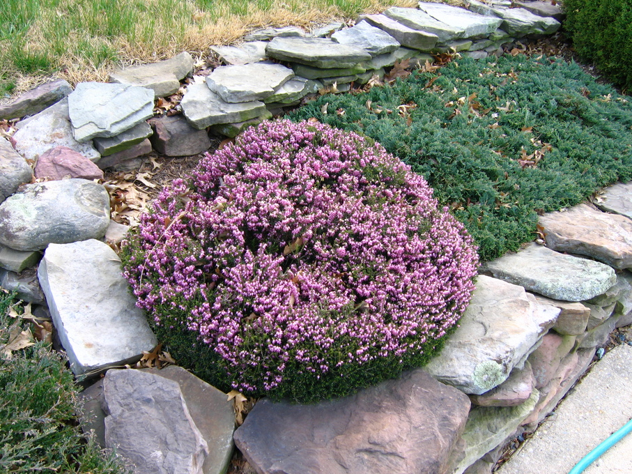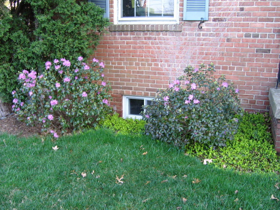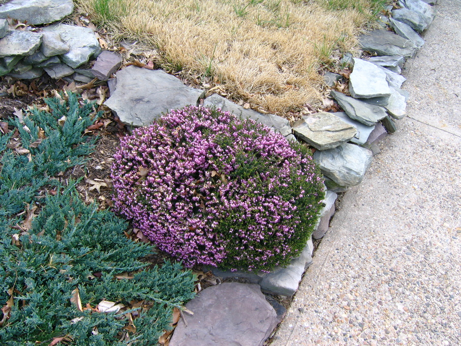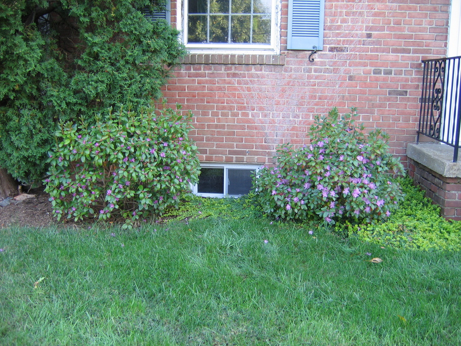 Side of front yard near driveway, with crysanthemum.