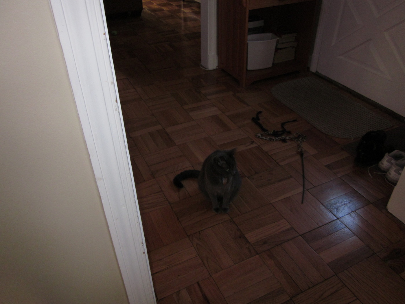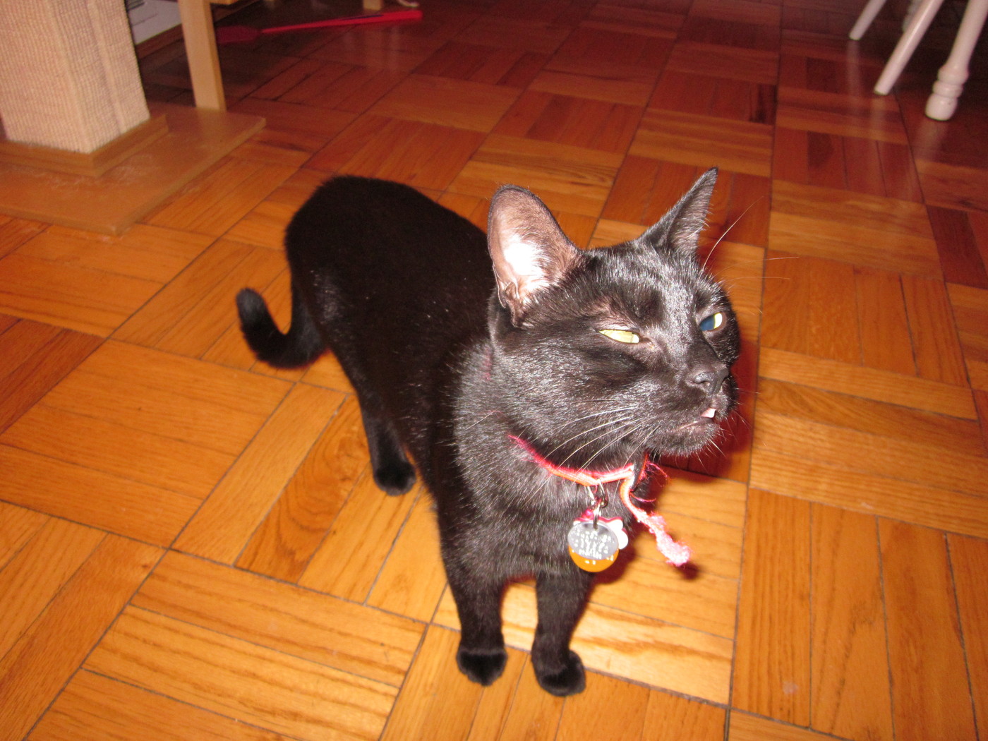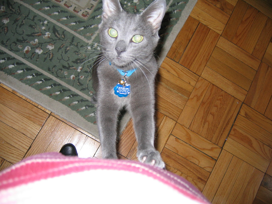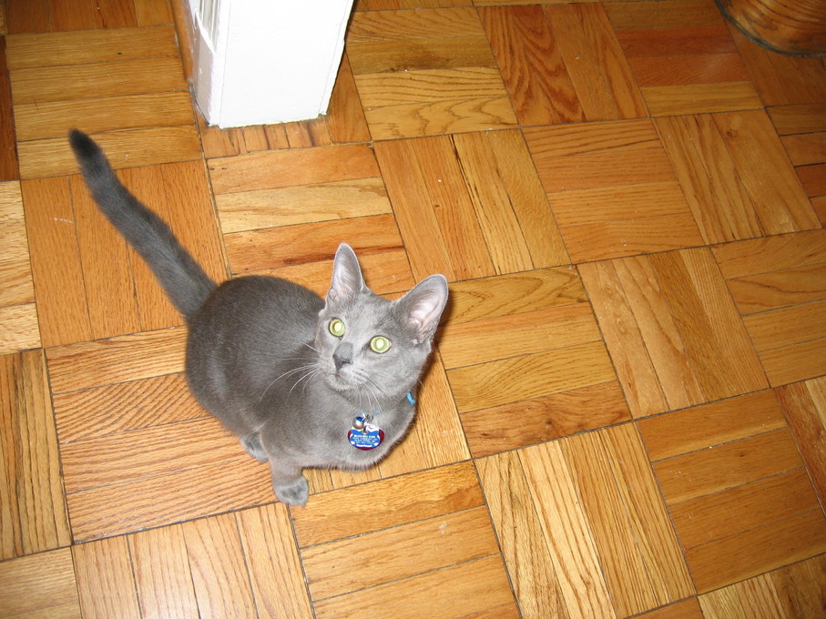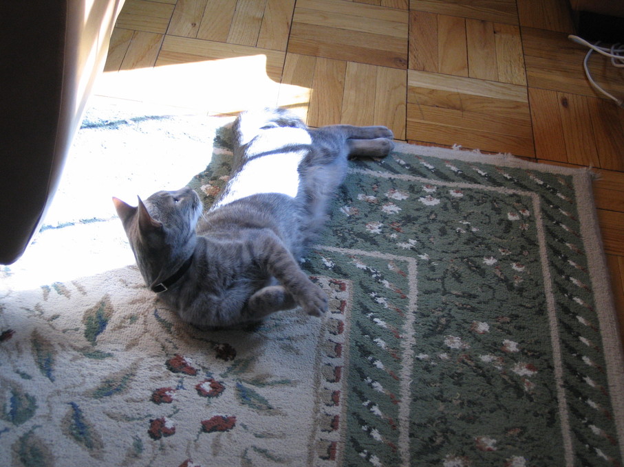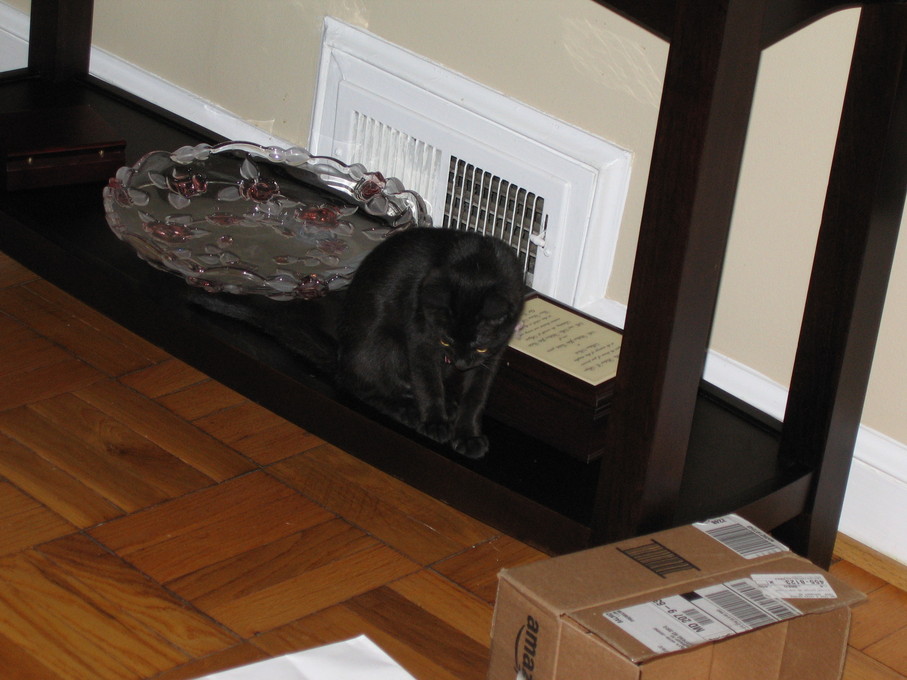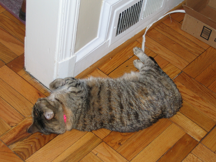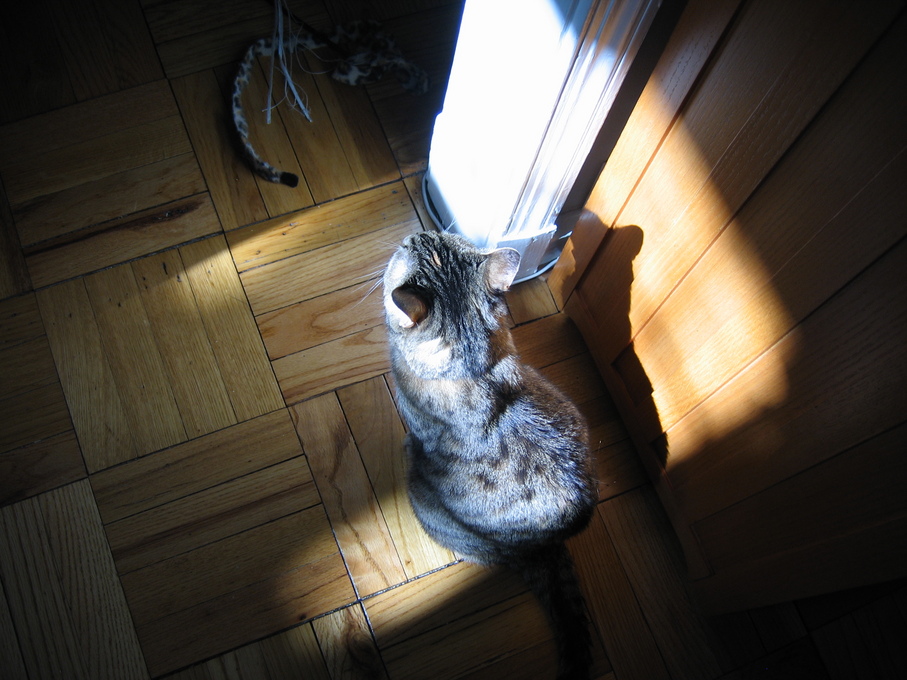 Electra warming herself in front of the heating vent.