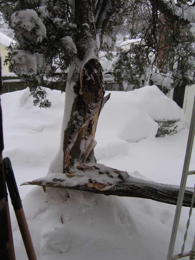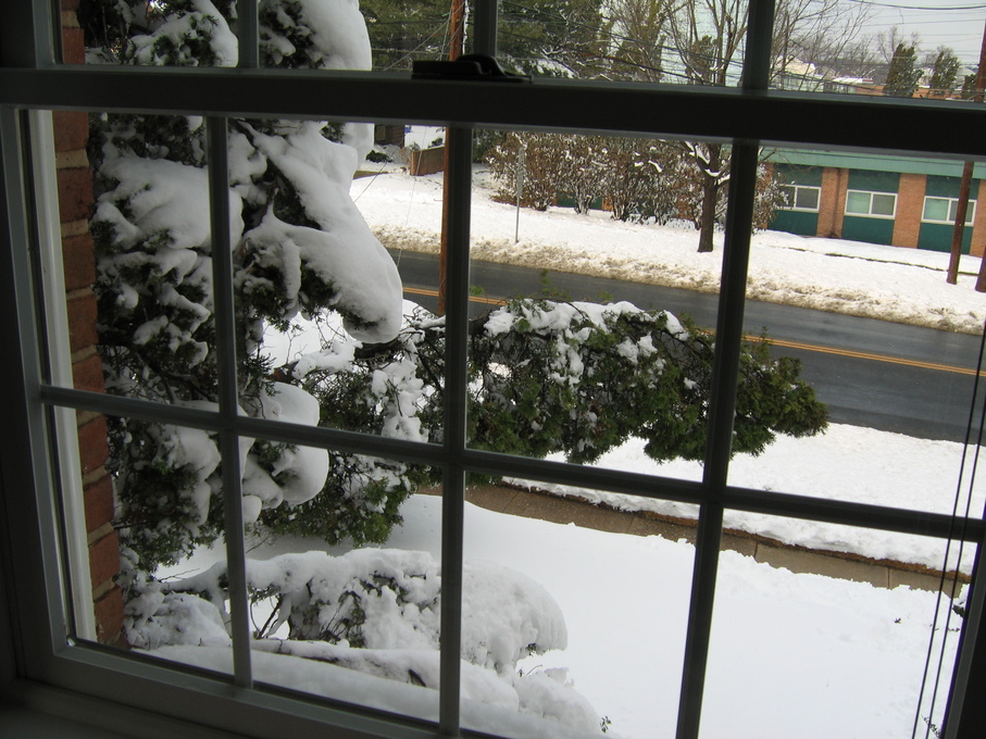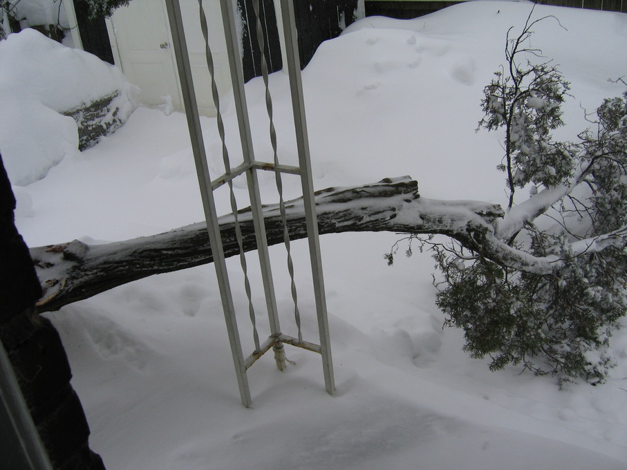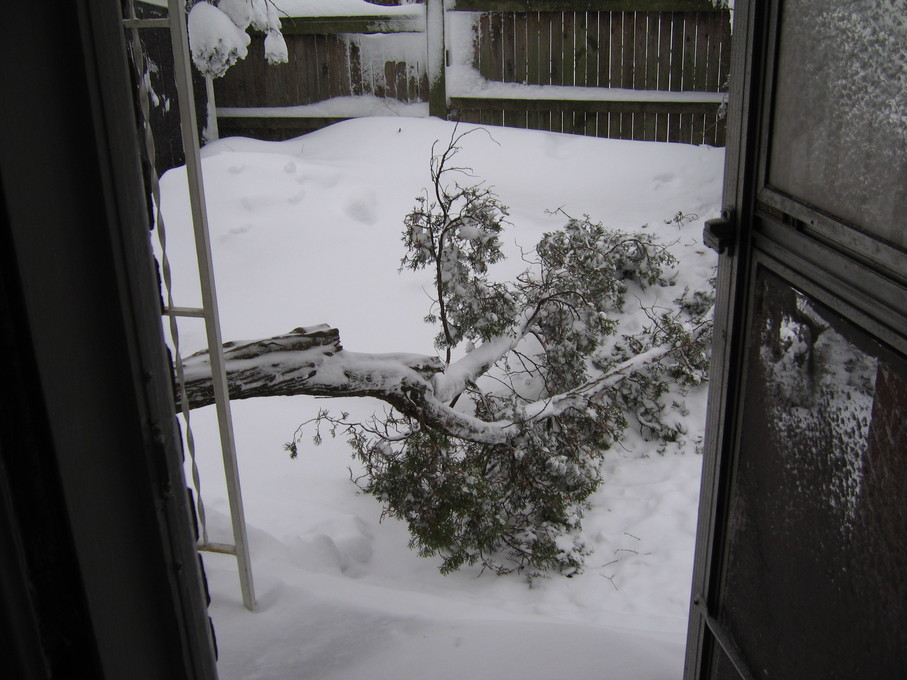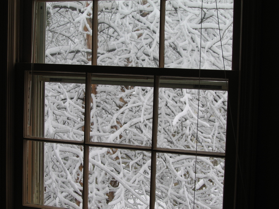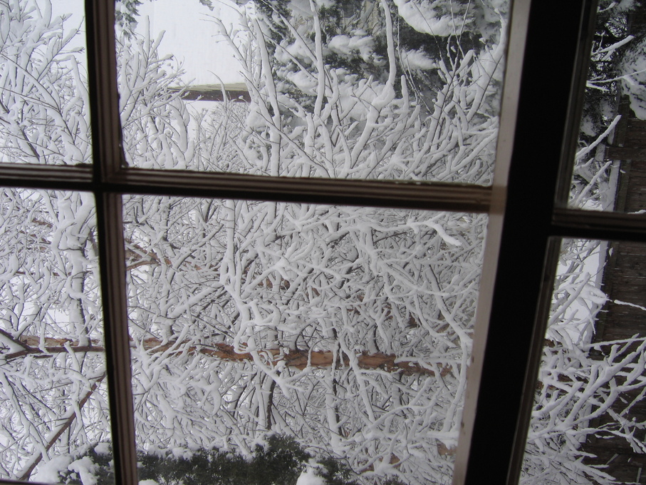 Snow on tree branches outside the window of the guest bedroom on 2/25/07.