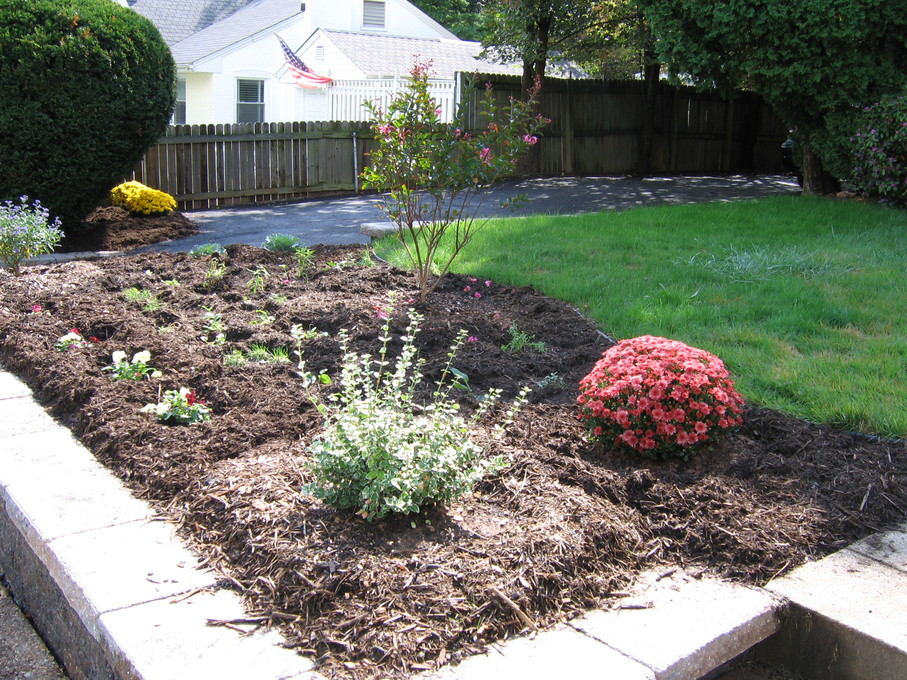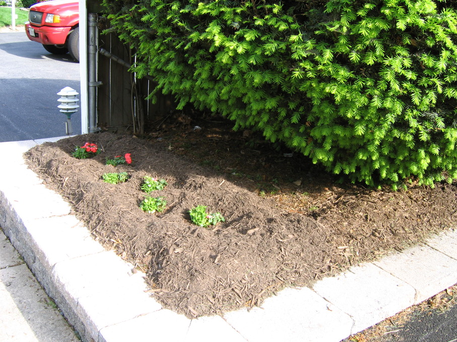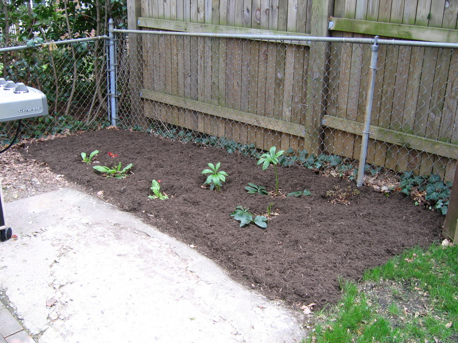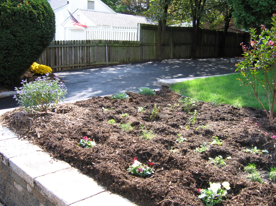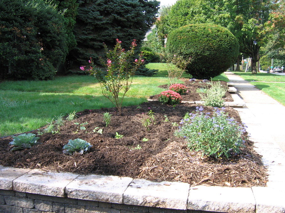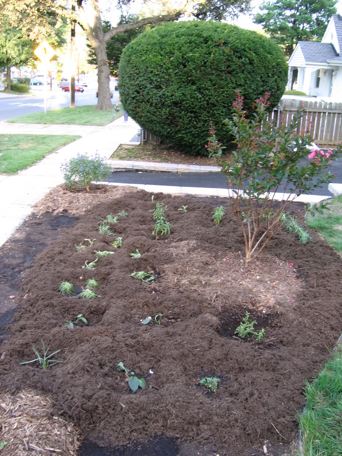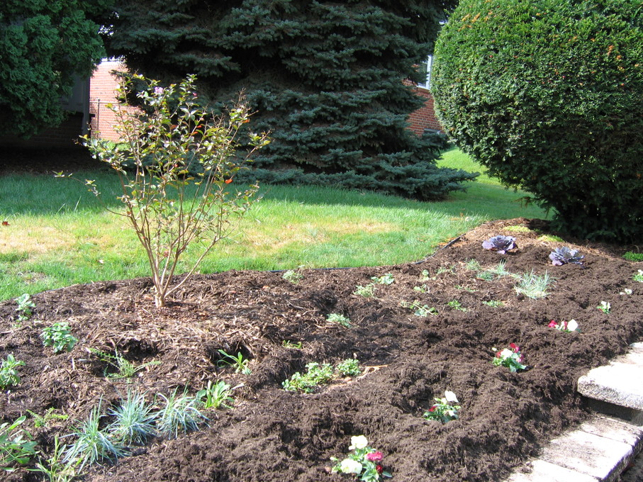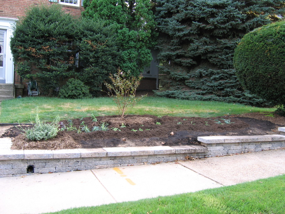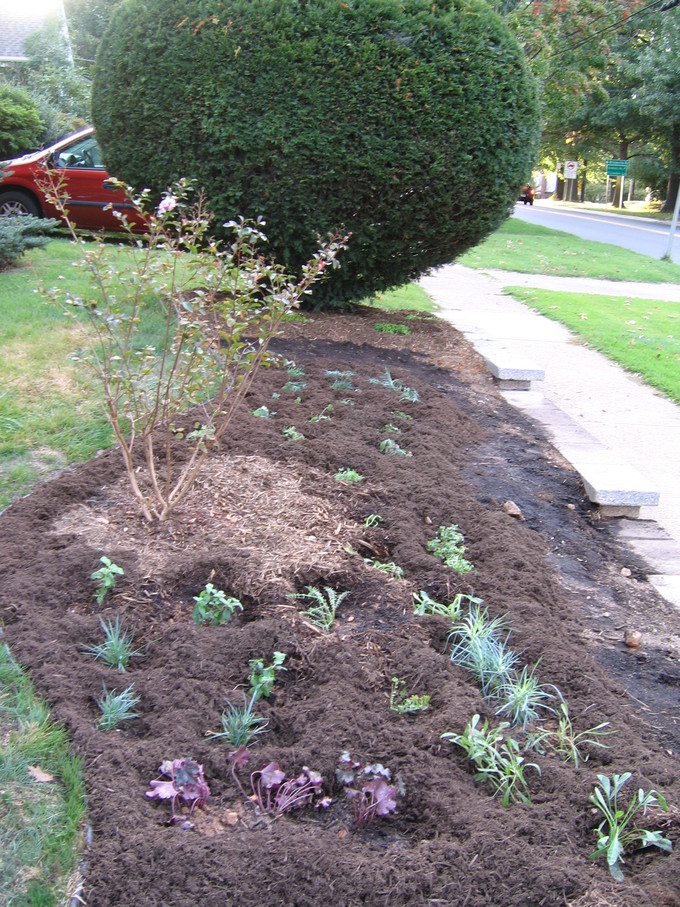 Side of front yard away from driveway, showing all new perennials.
