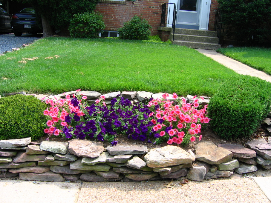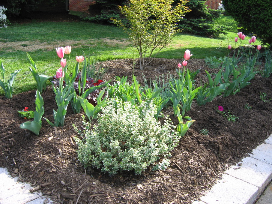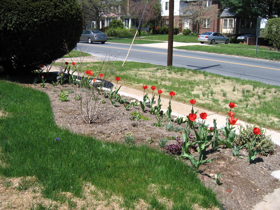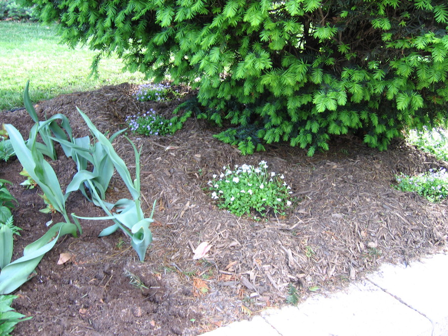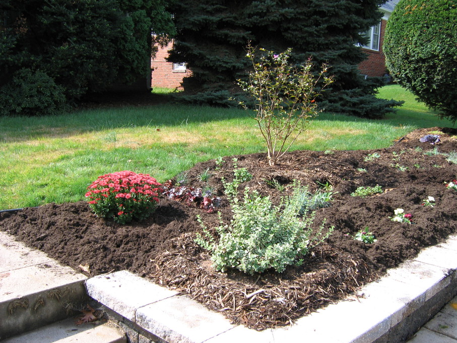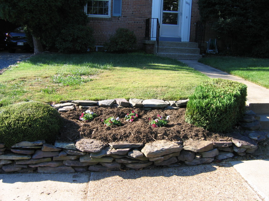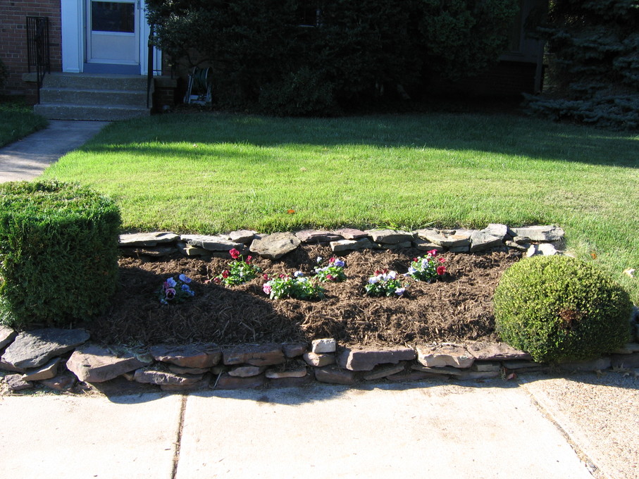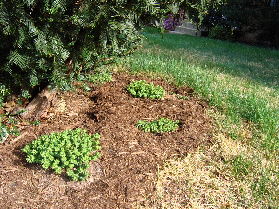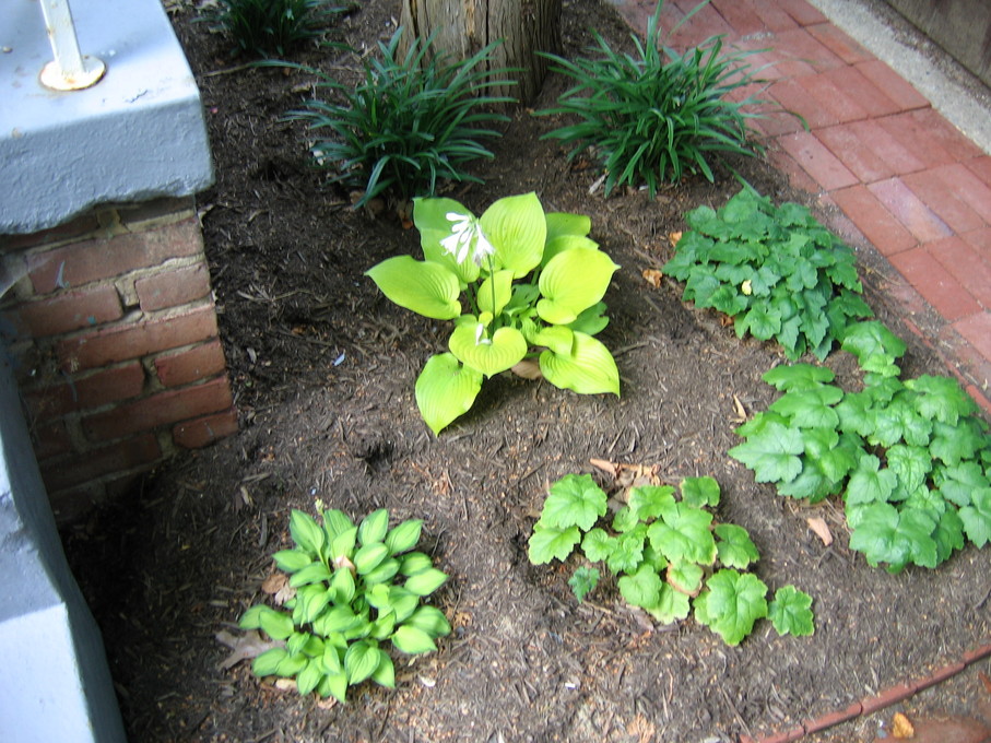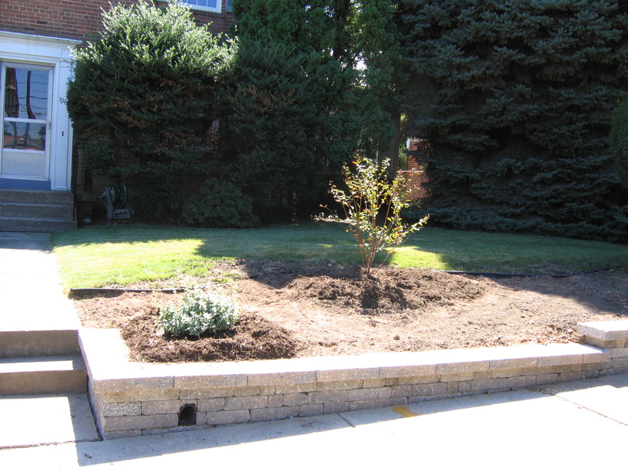 Side of front yard away from driveway, showing all new perennials.