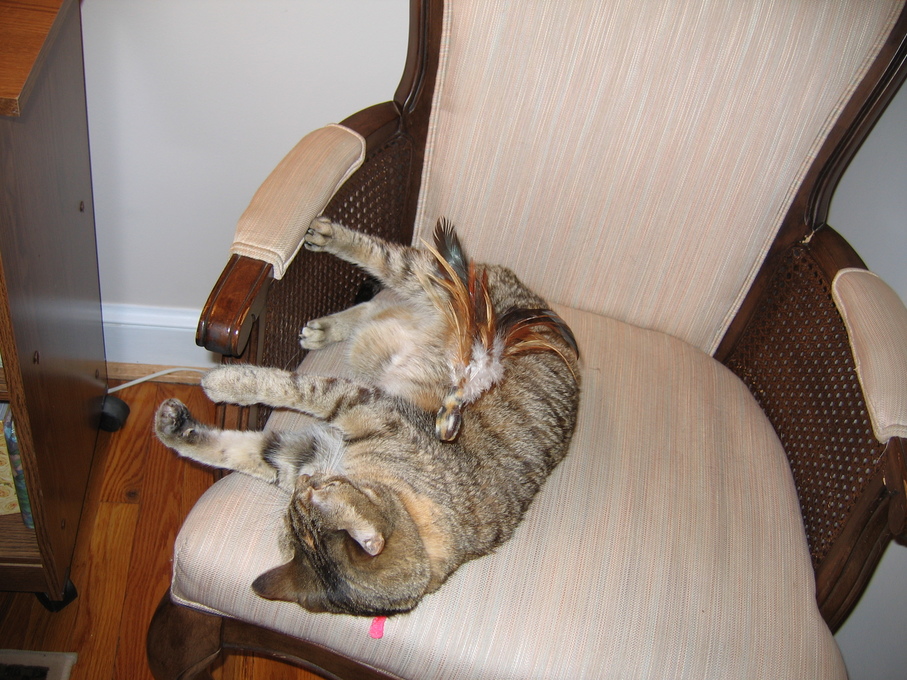 Electra with a feather on her butt