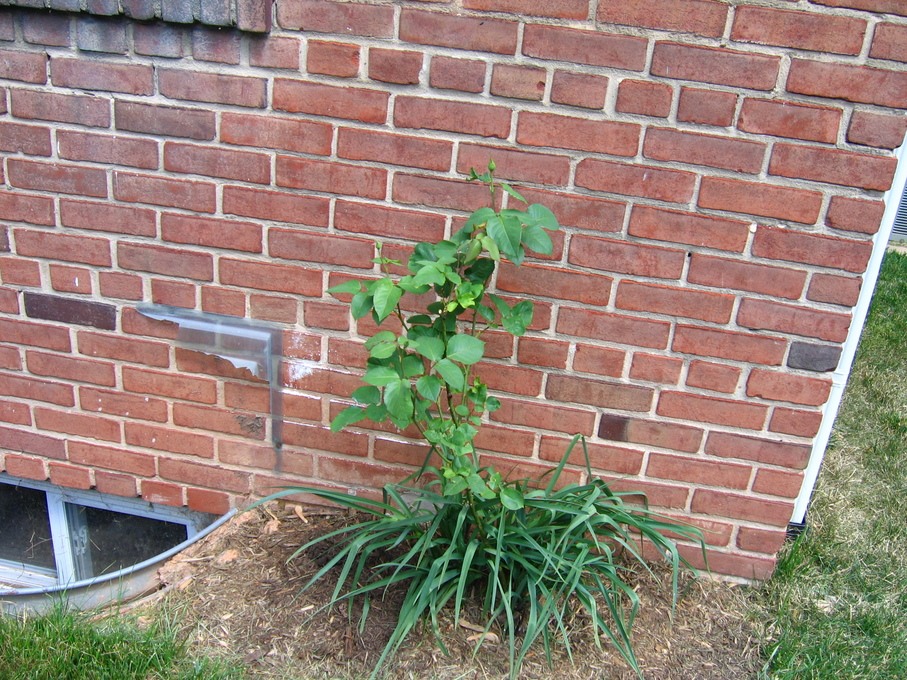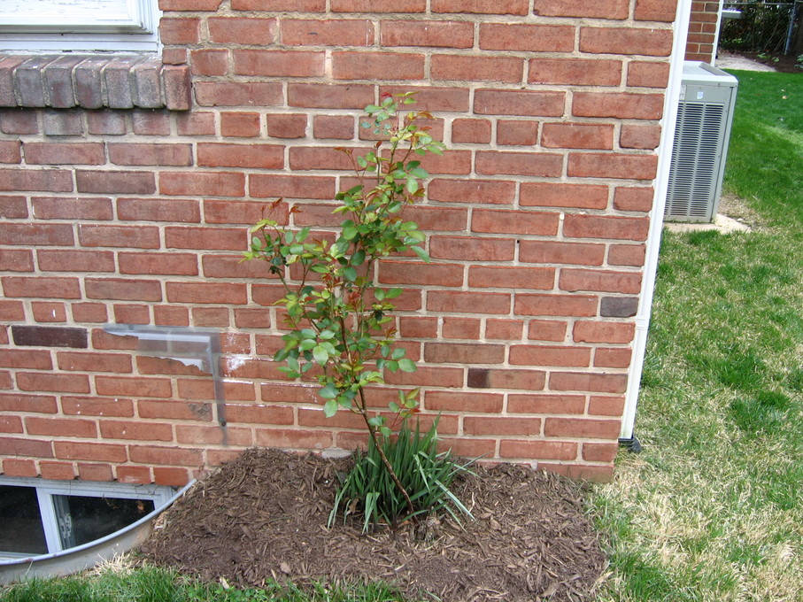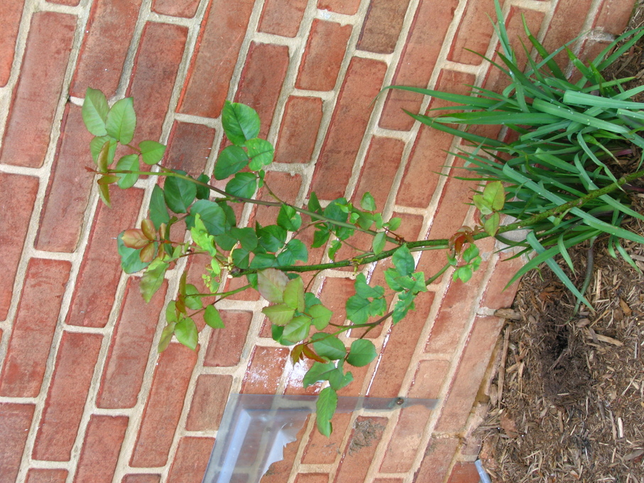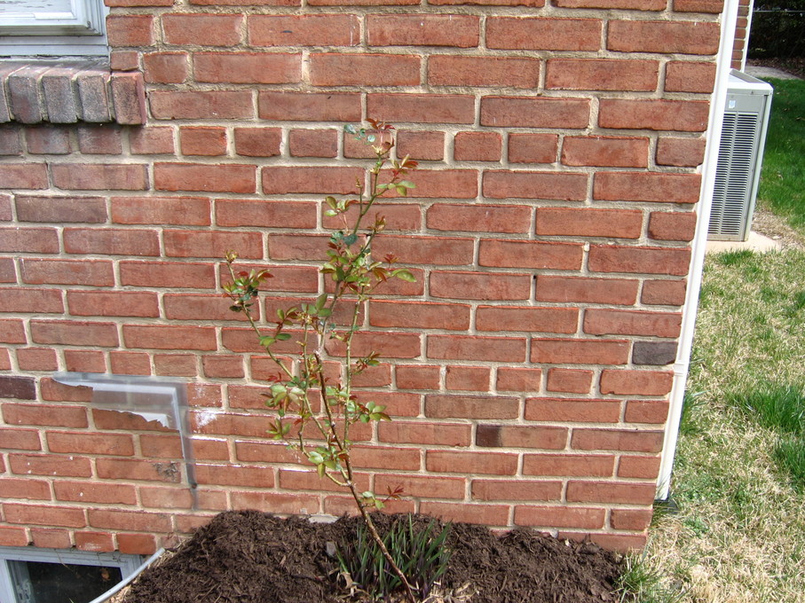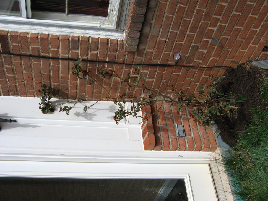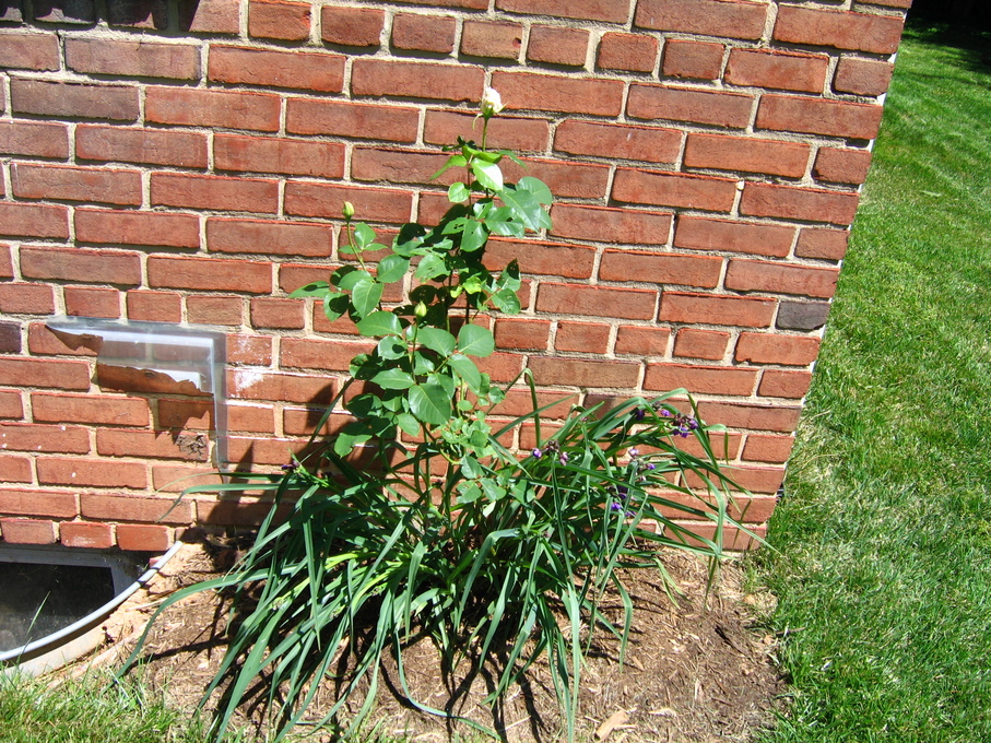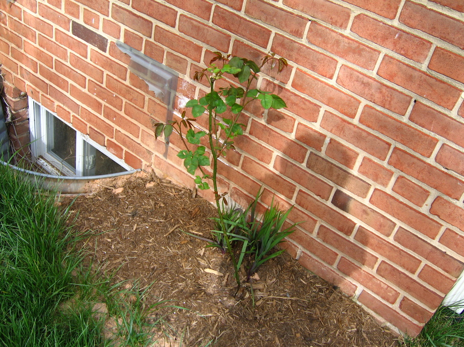 Rose bush I transplanted from the front of the house to the side of the house.