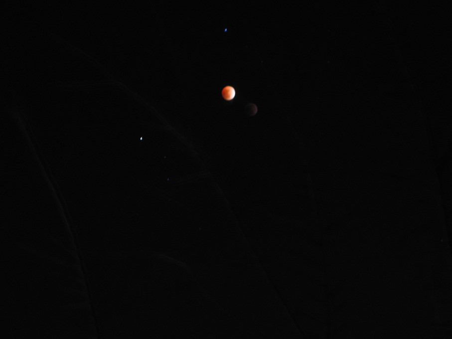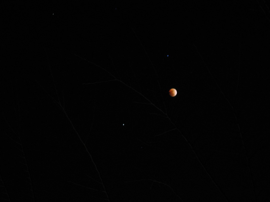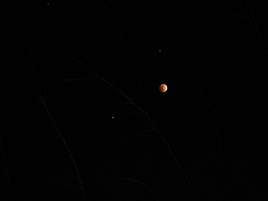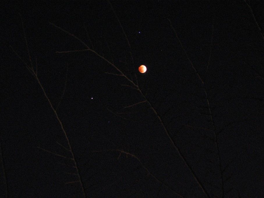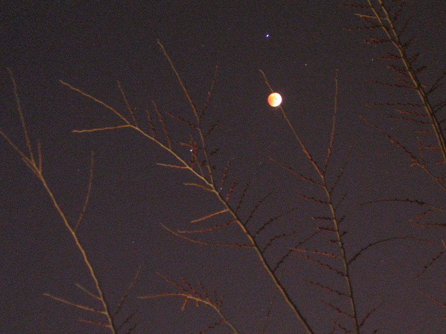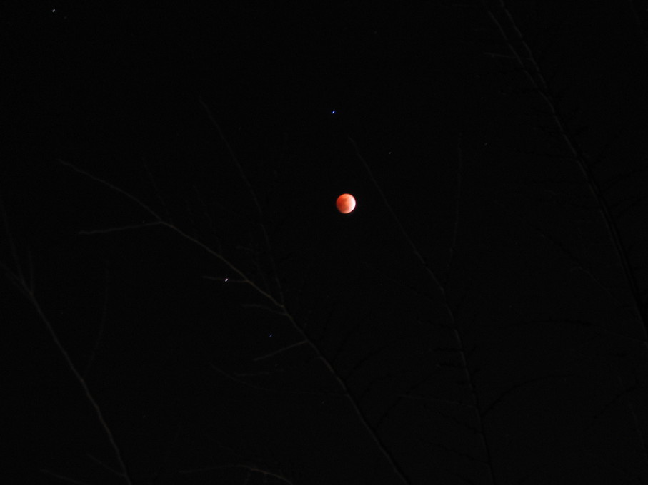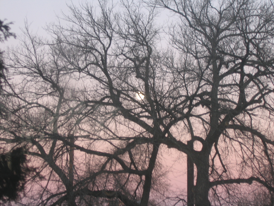 Moon rising behind a tree.