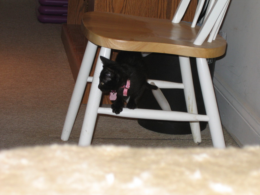 Electra playing with her favorite chair