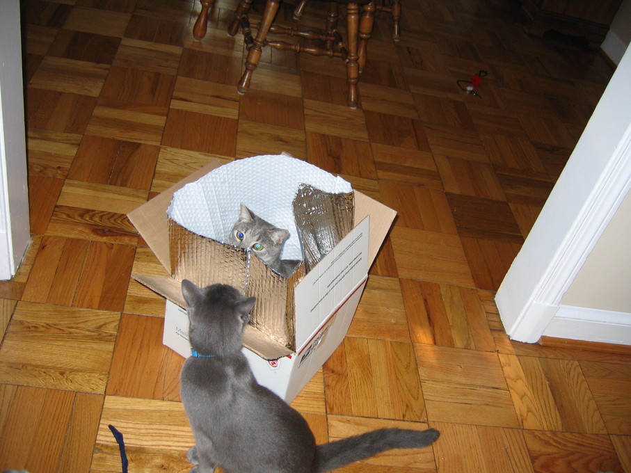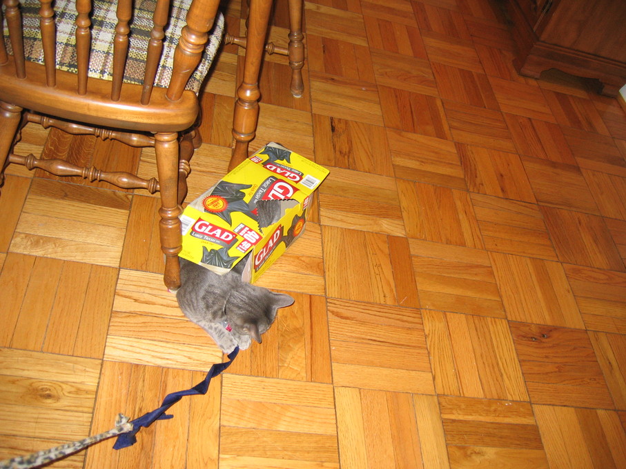 Electra playing with her box and Bill