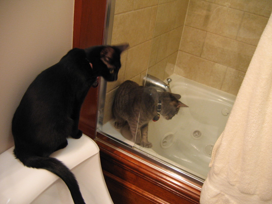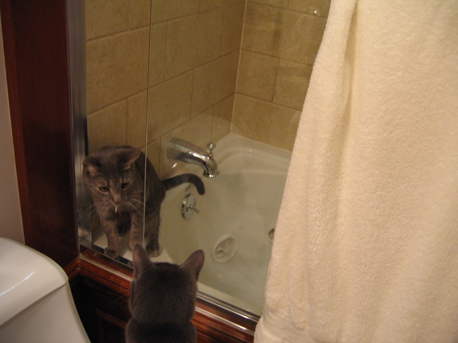Electra confronting a neighbor's cat