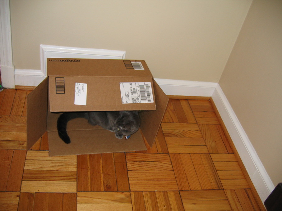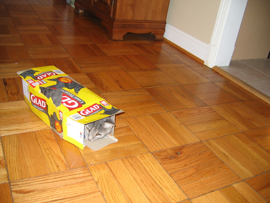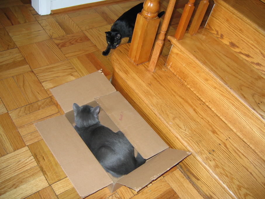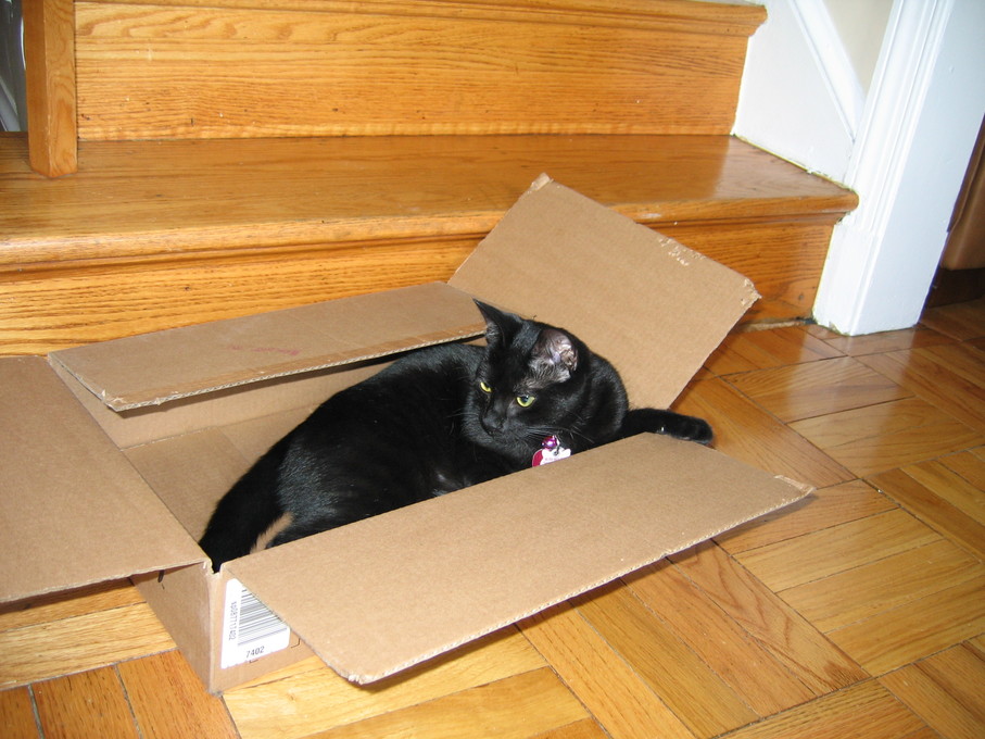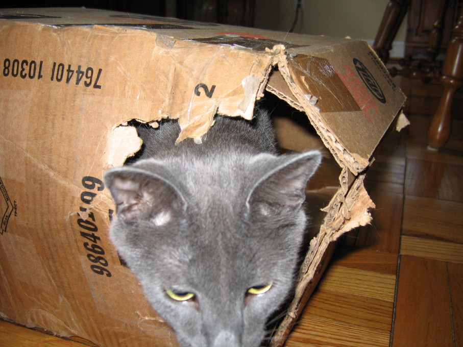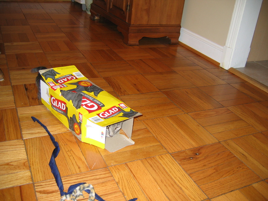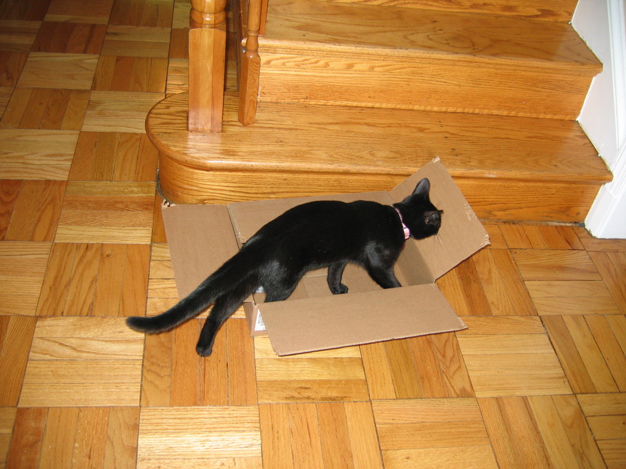 Electra wisely tipped over the box instead of jumping into it.