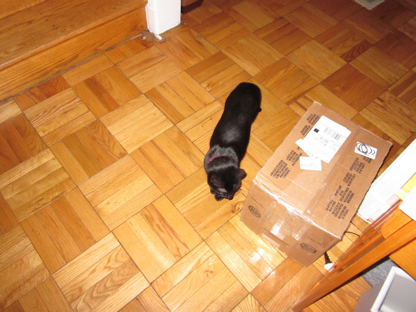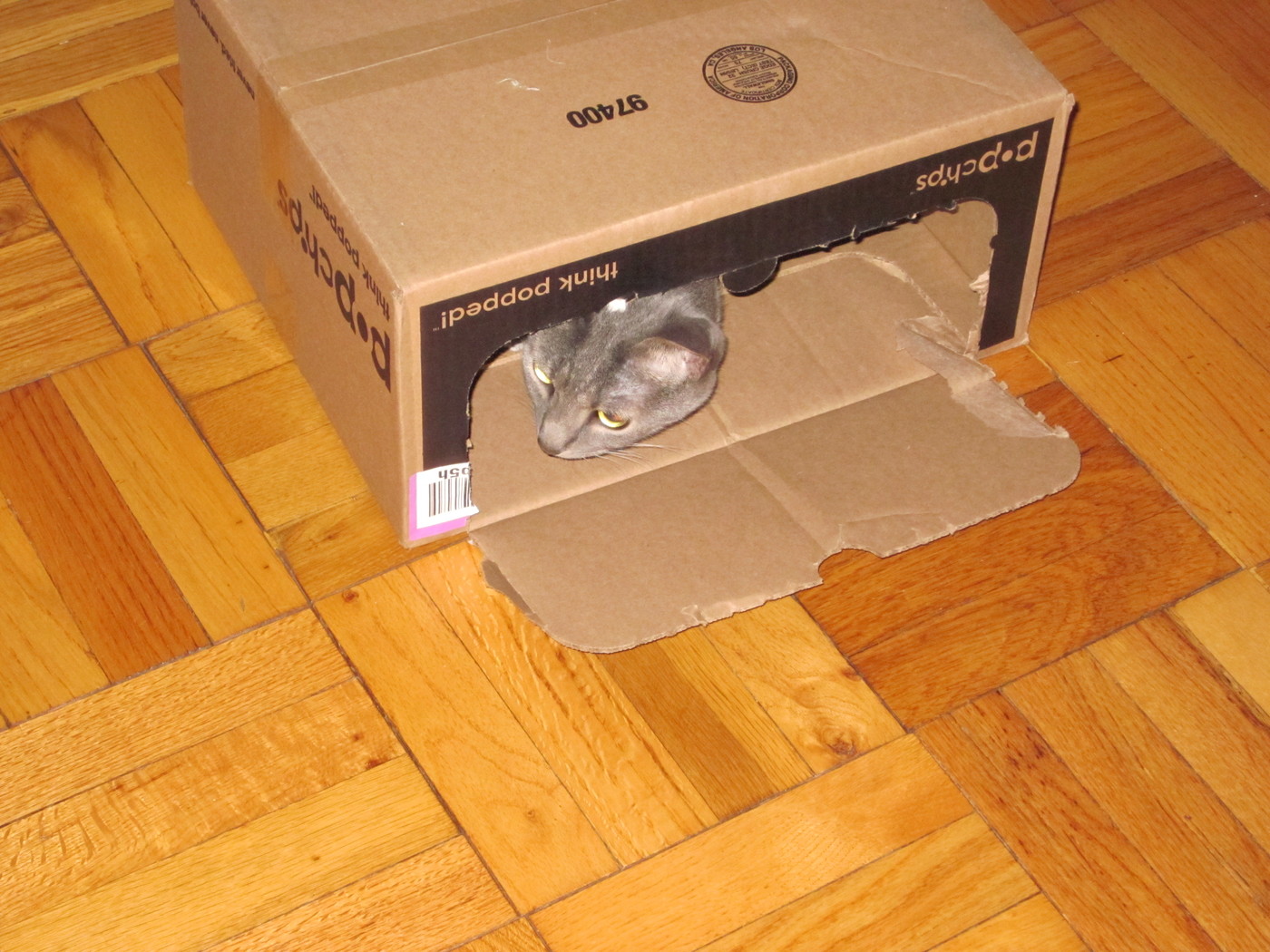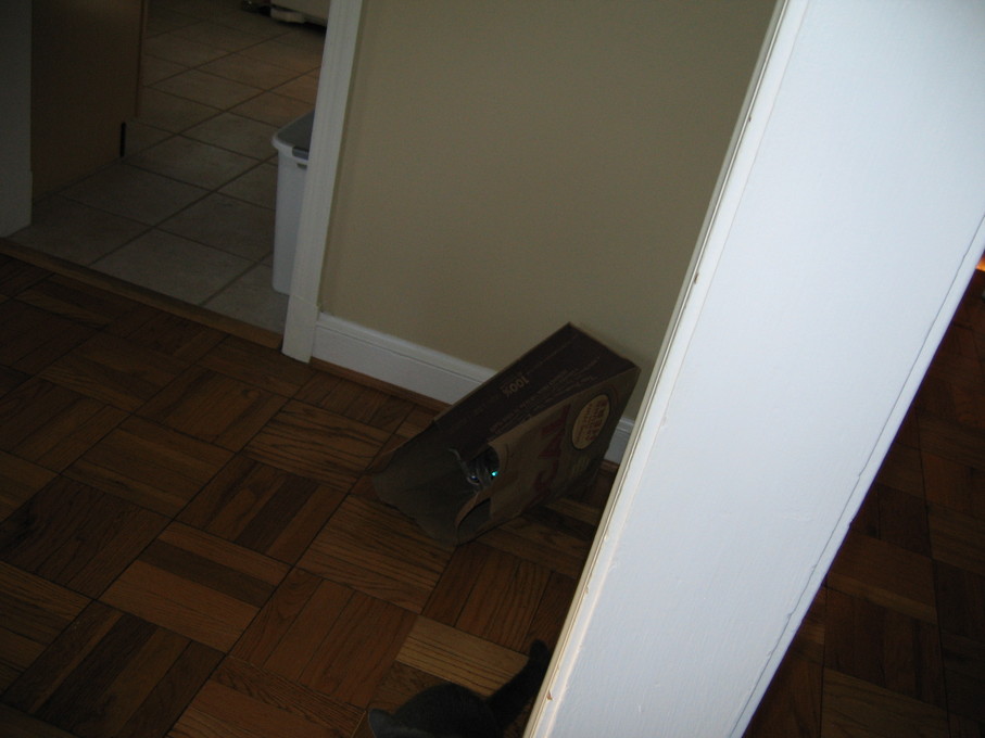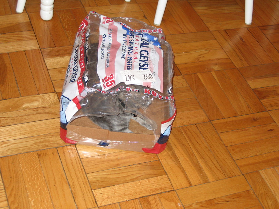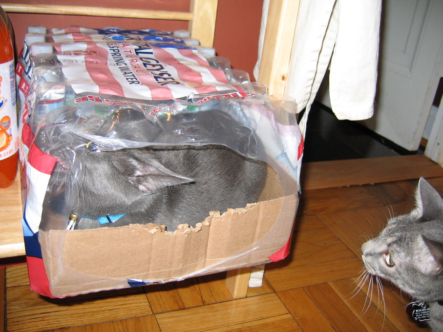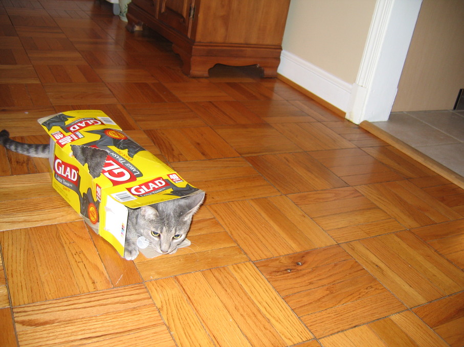 Electra wisely tipped over the box instead of jumping into it.