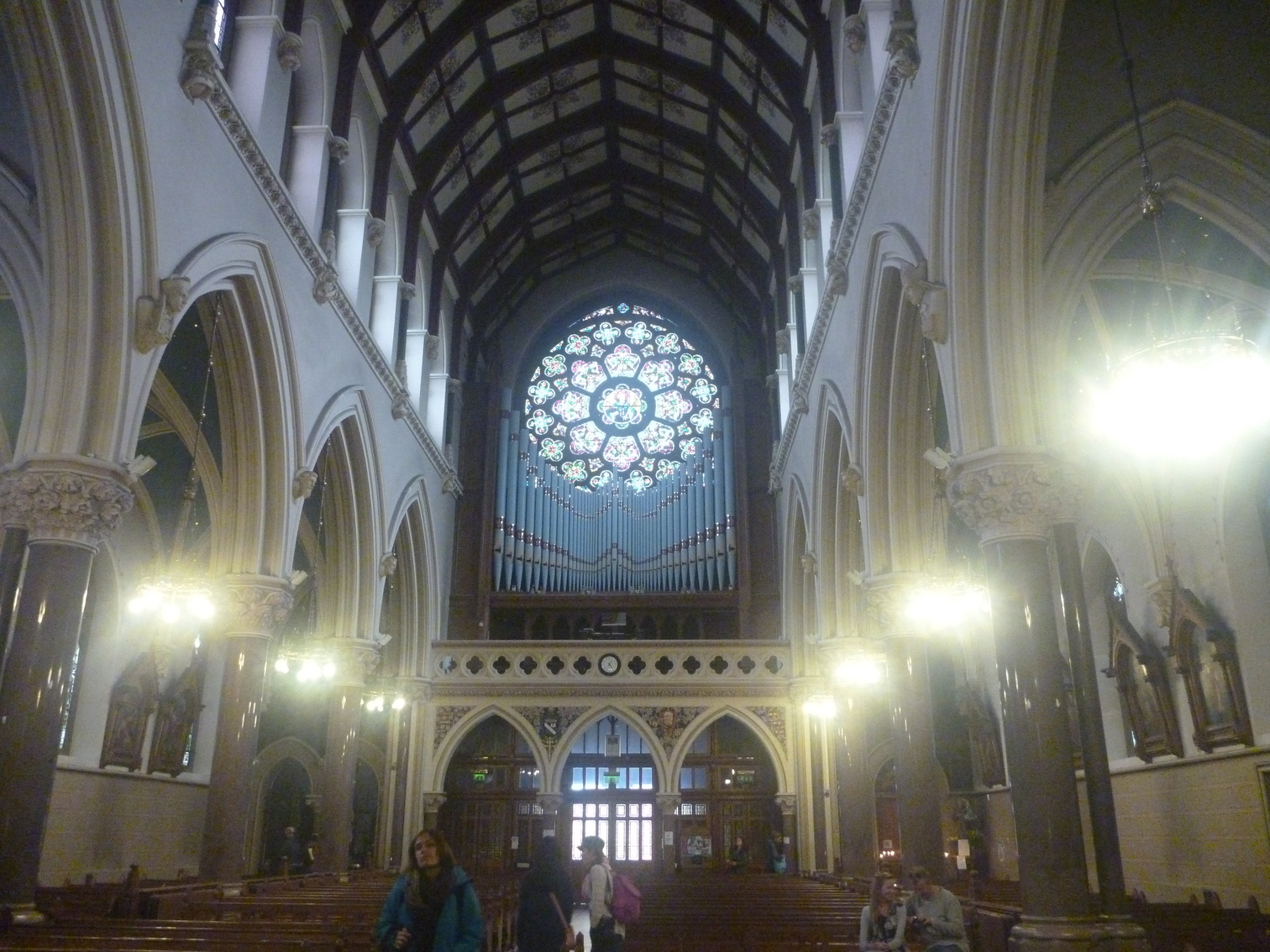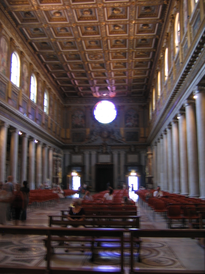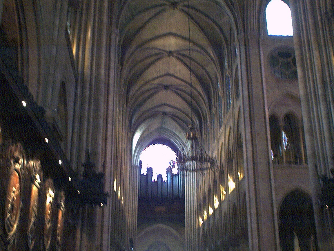 View of other end of the inside of the Cathedral of Notre Dame de Paris (it's blurry)