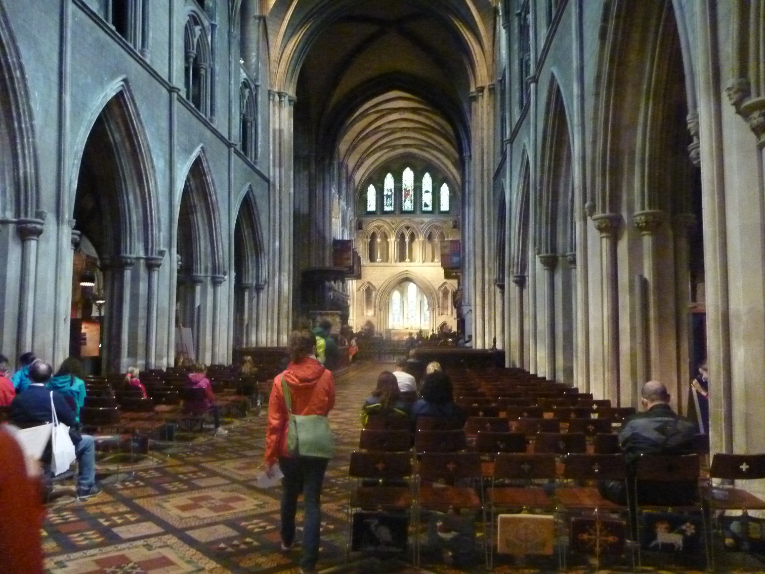 Looking down length of inside of Washington National Cathedral.