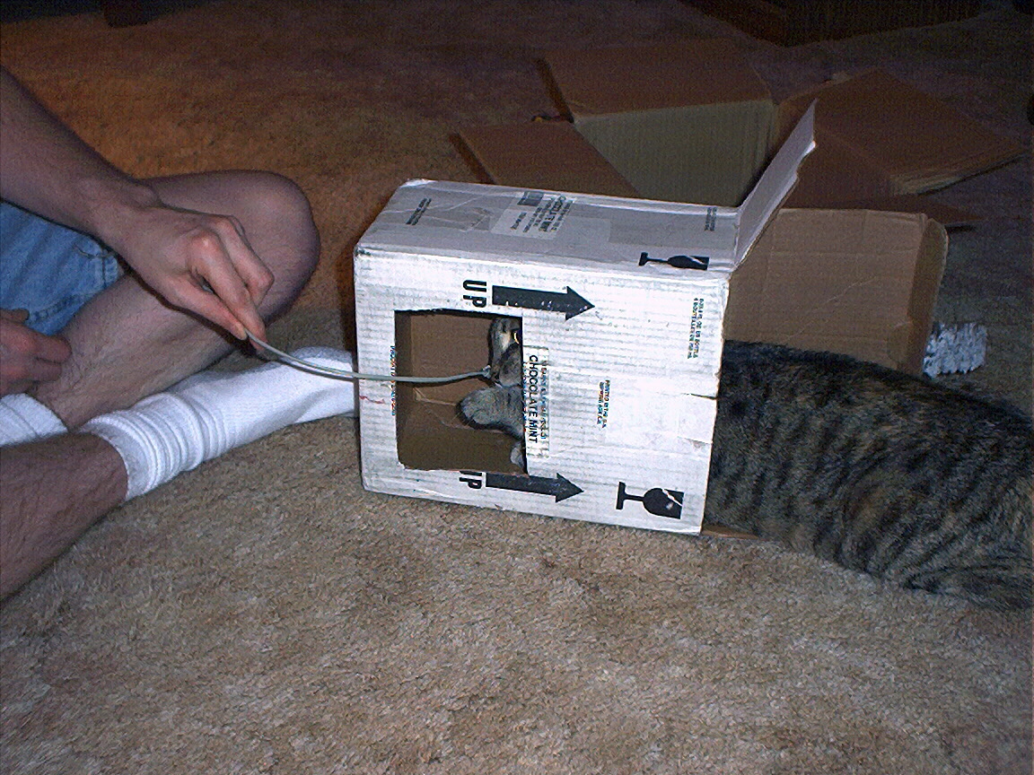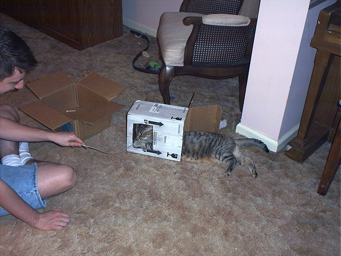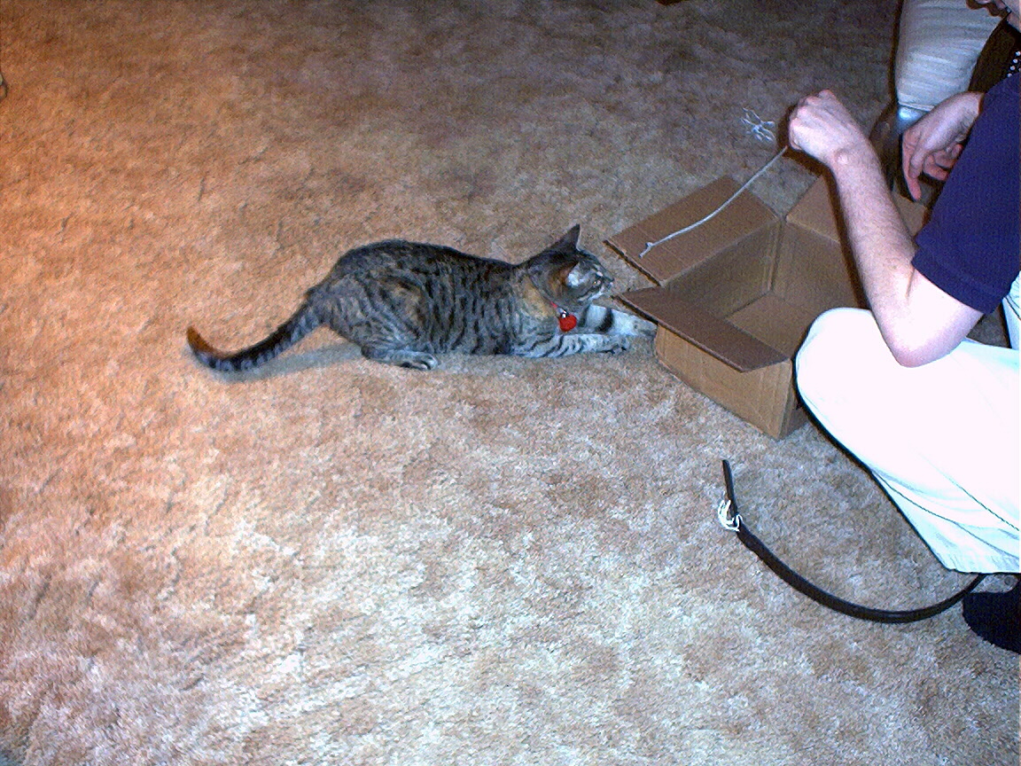 Bill playing with Electra in her new box