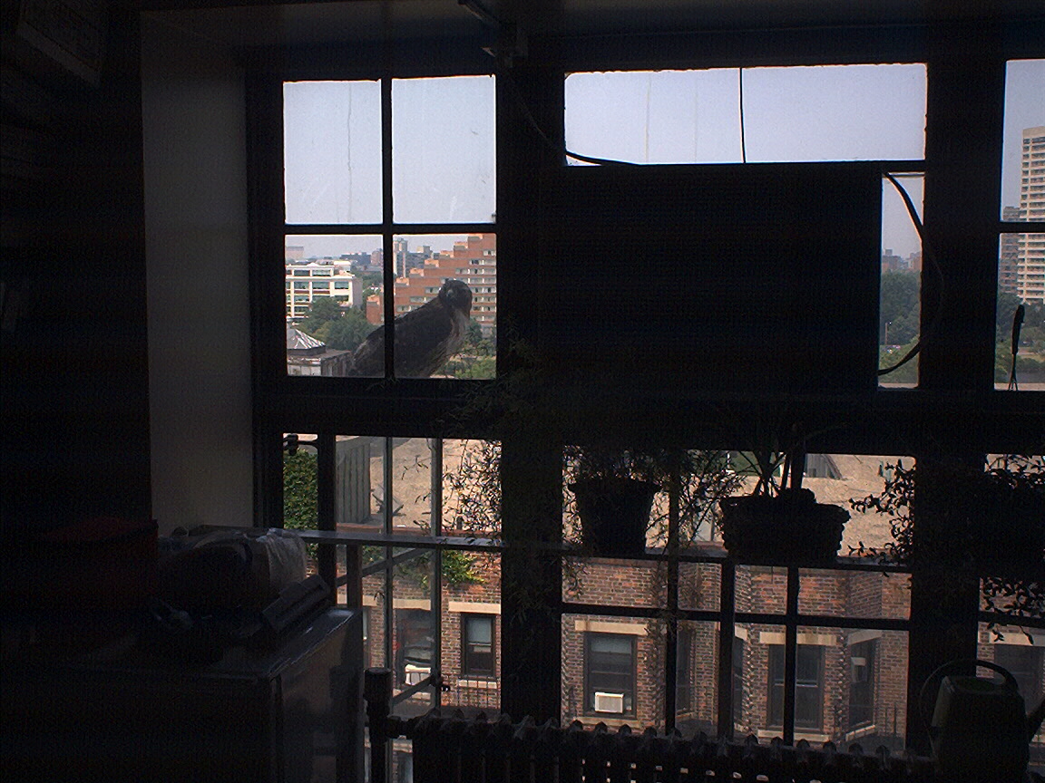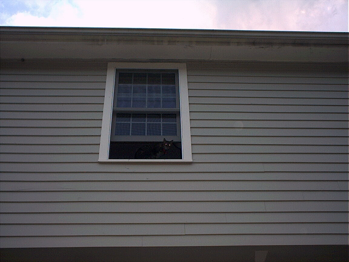 Electra looking down at us from the bedroom window